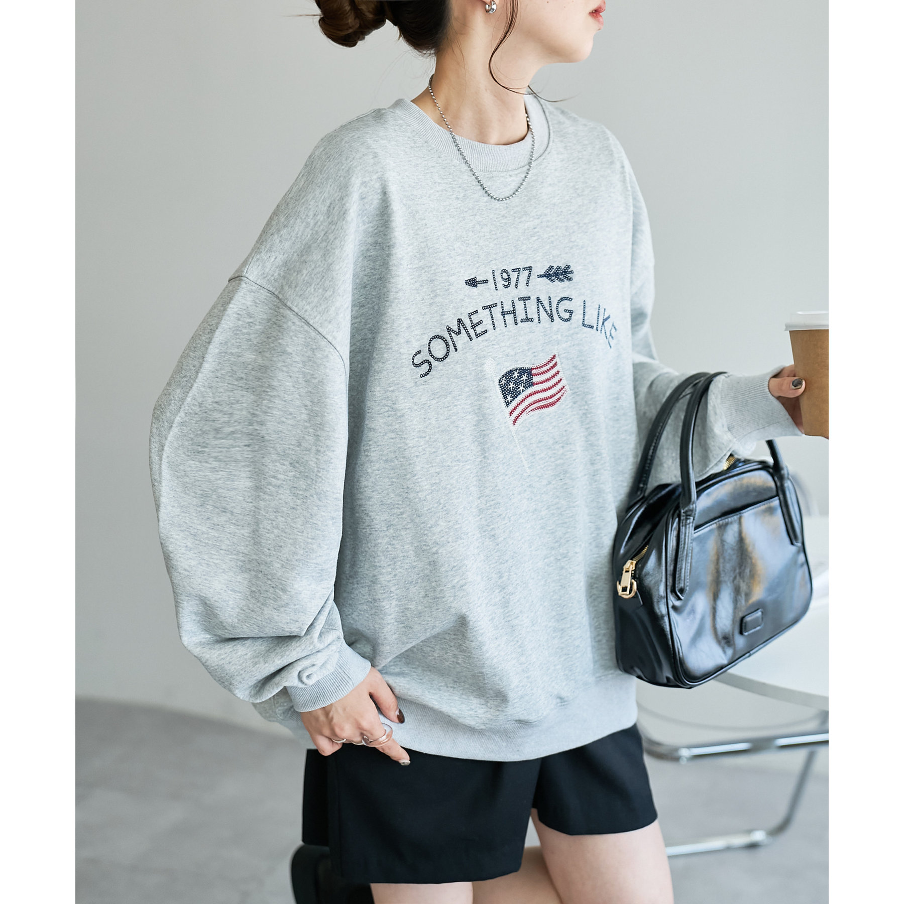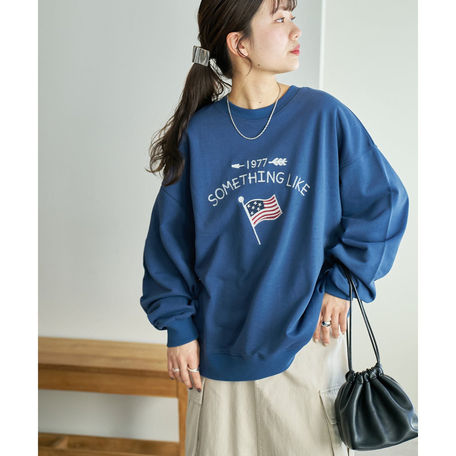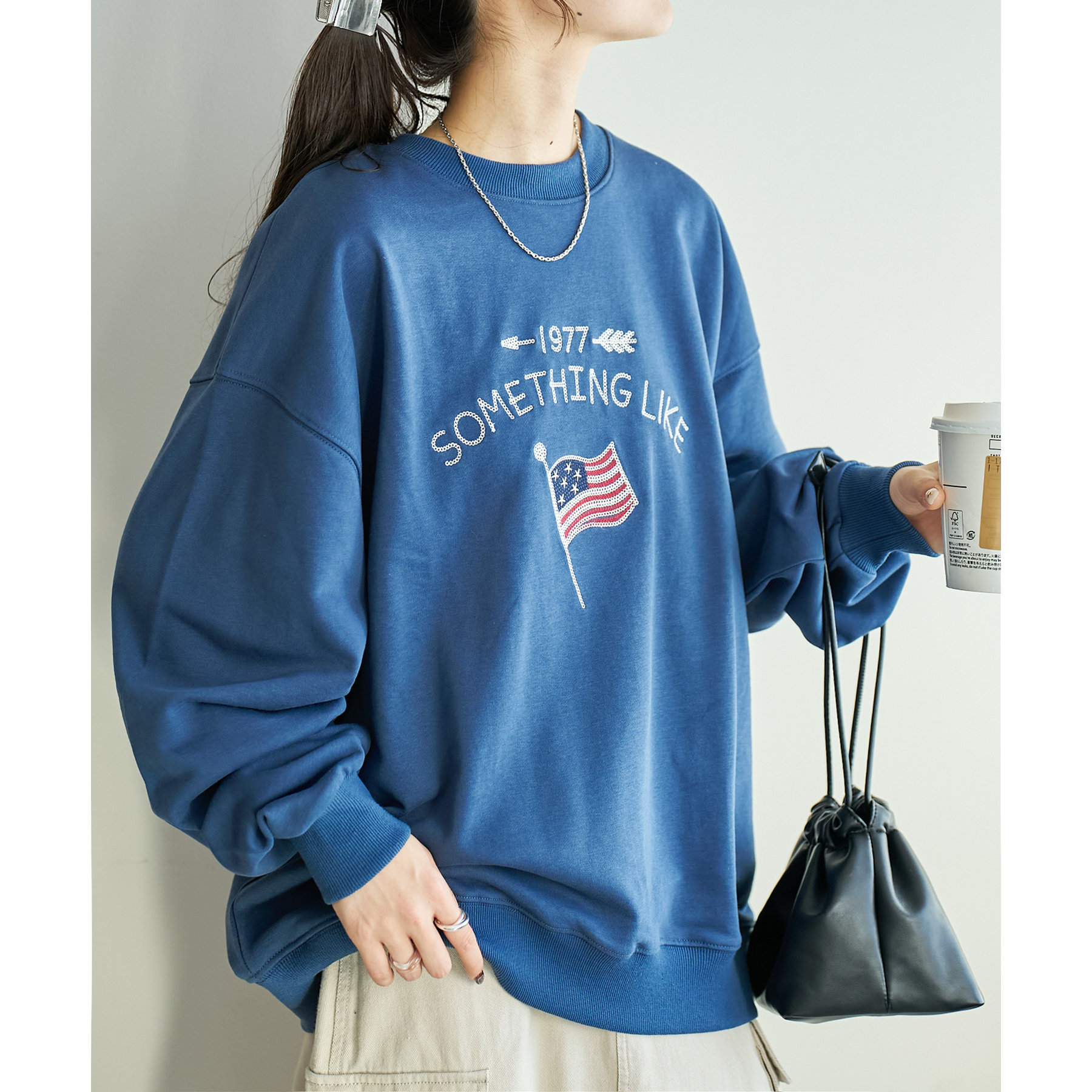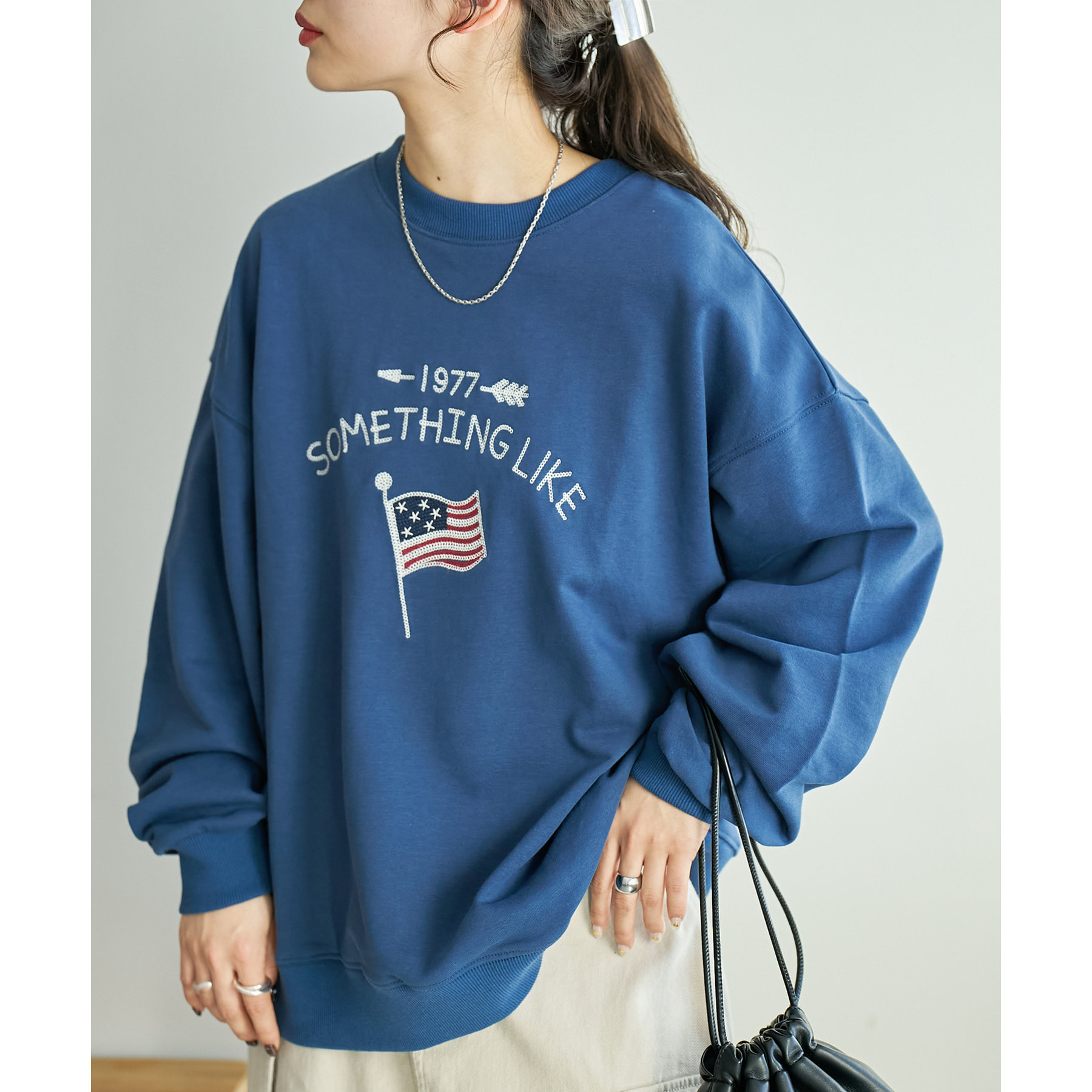 【ユニセックス】チェーンステッチモチーフ刺繍スウェット