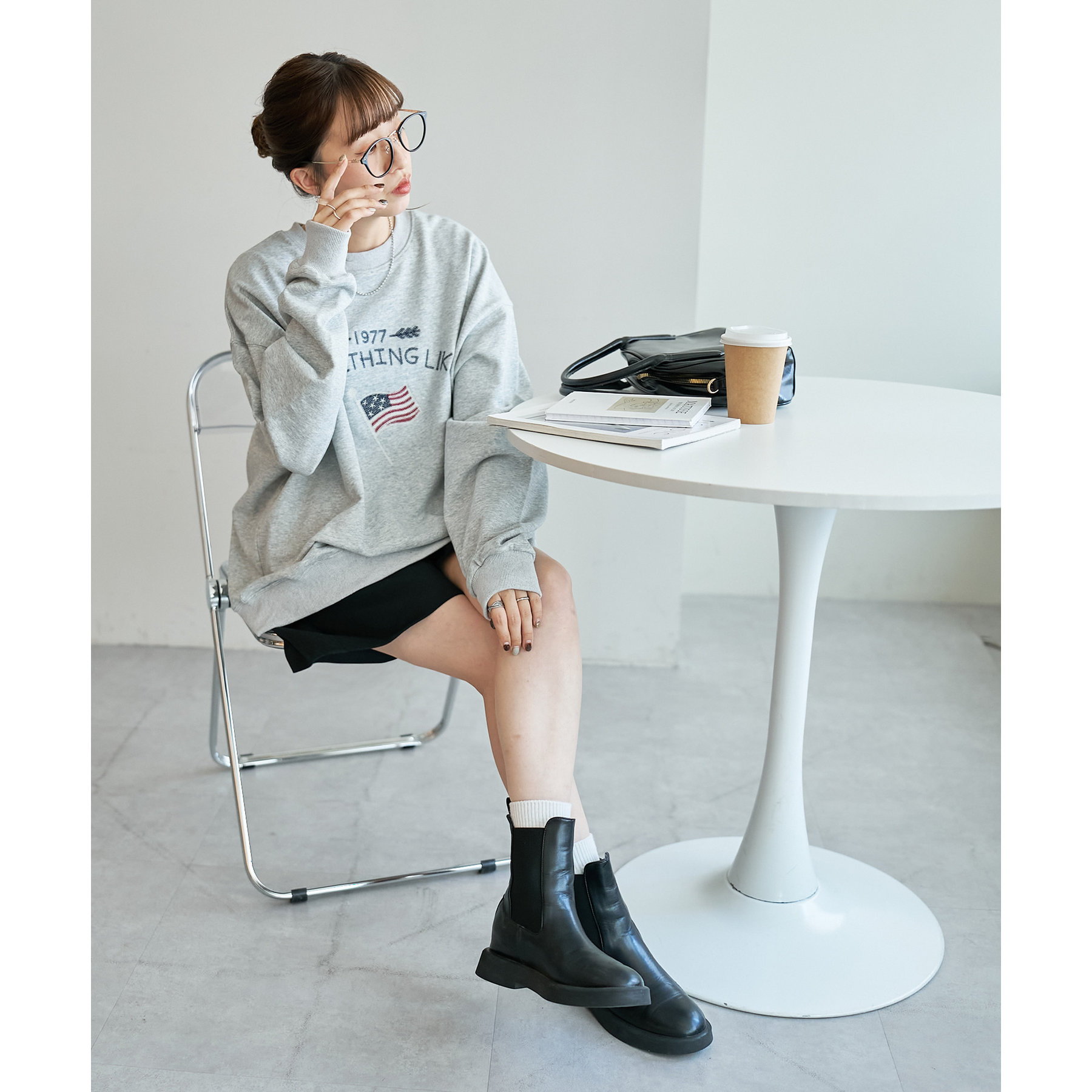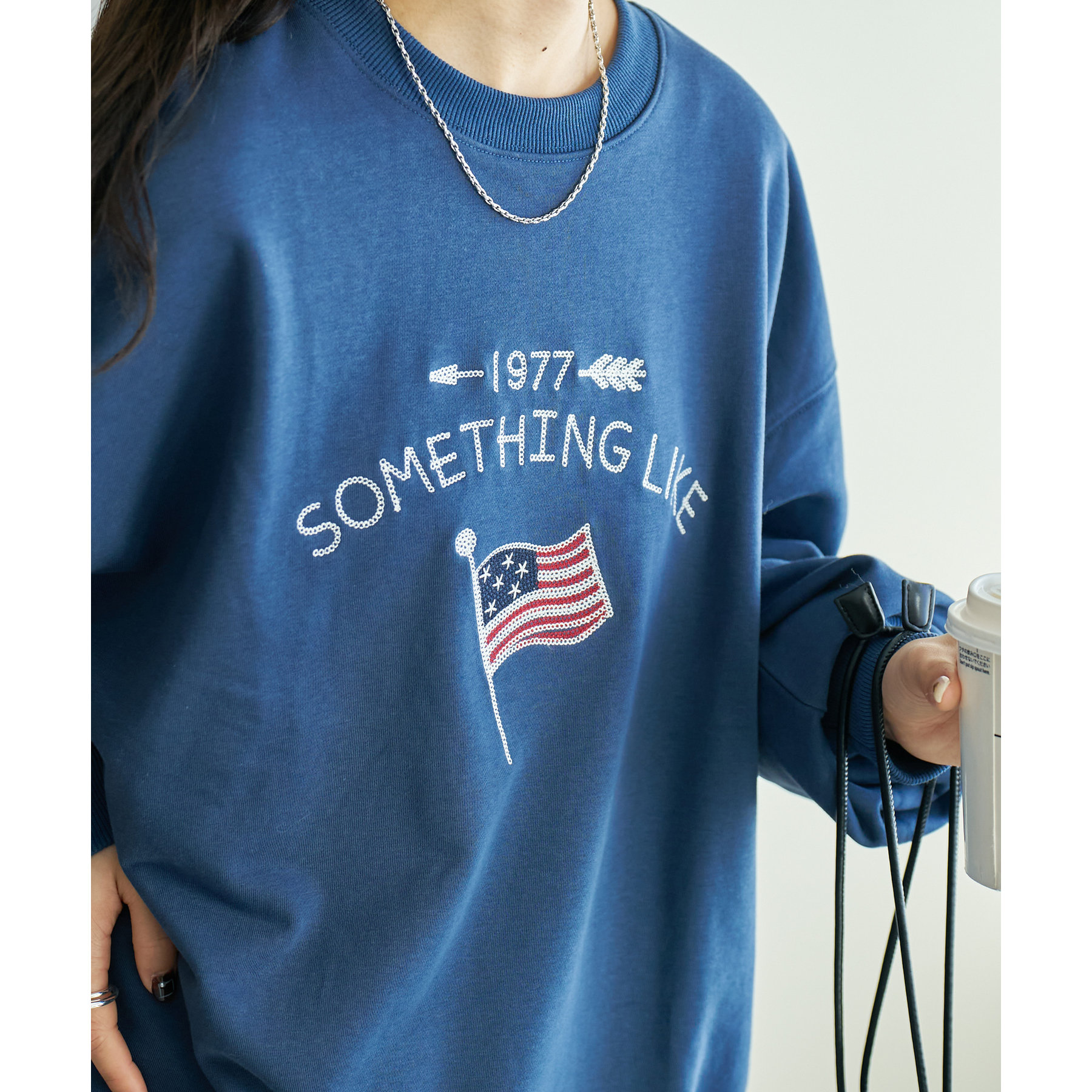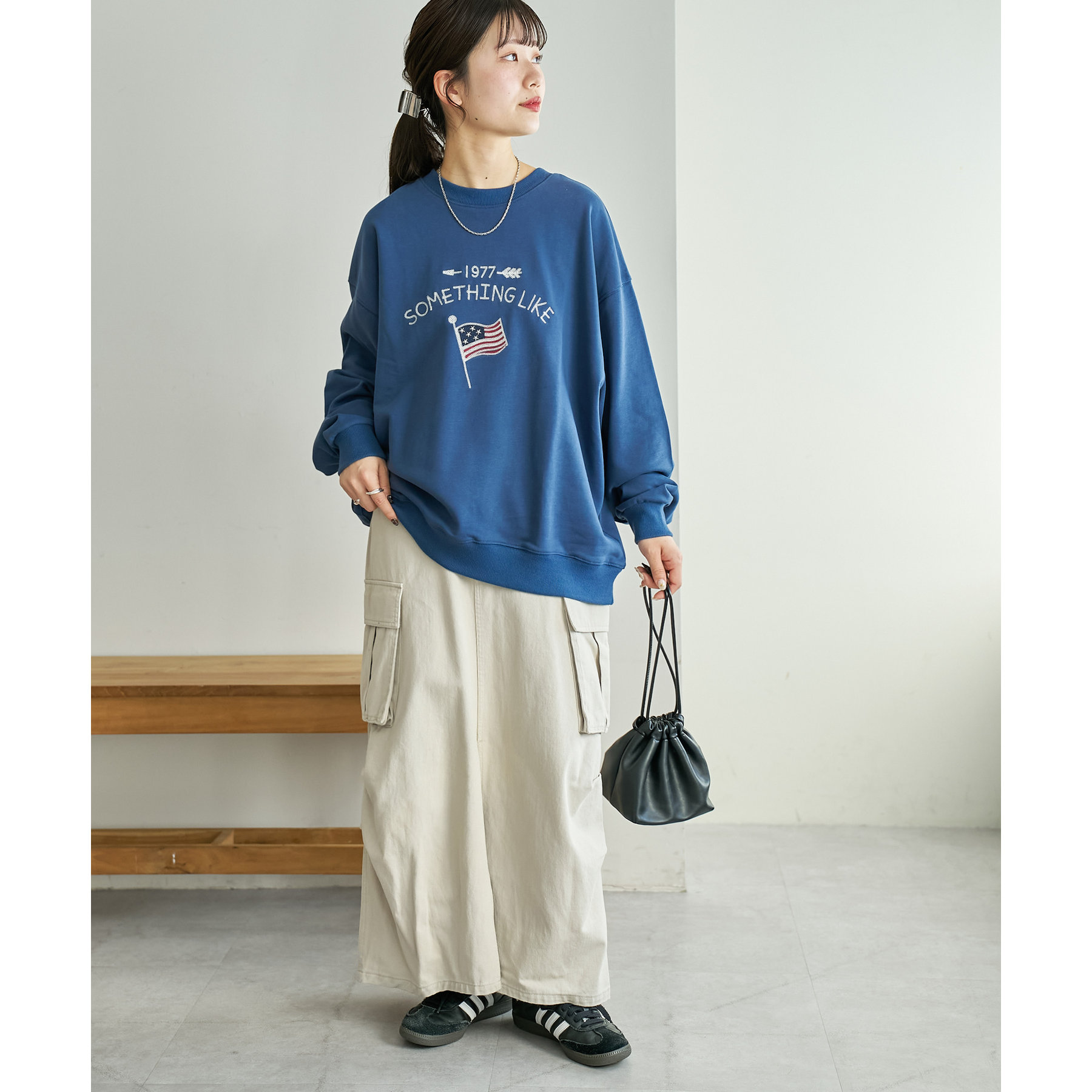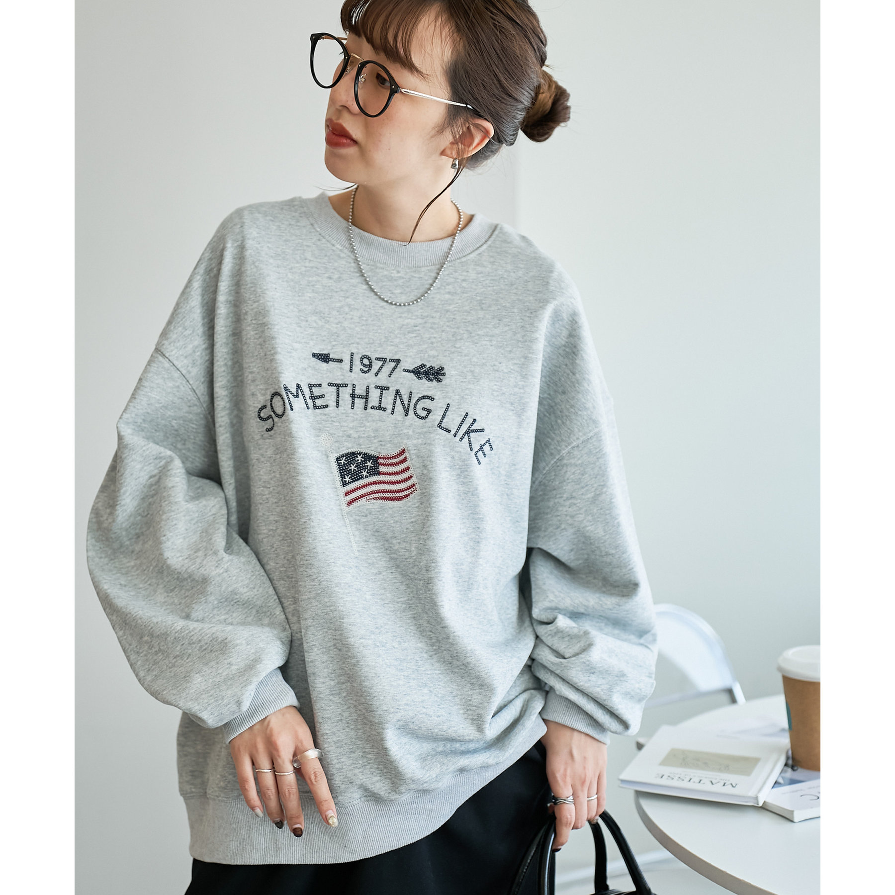 【ユニセックス】チェーンステッチモチーフ刺繍スウェット