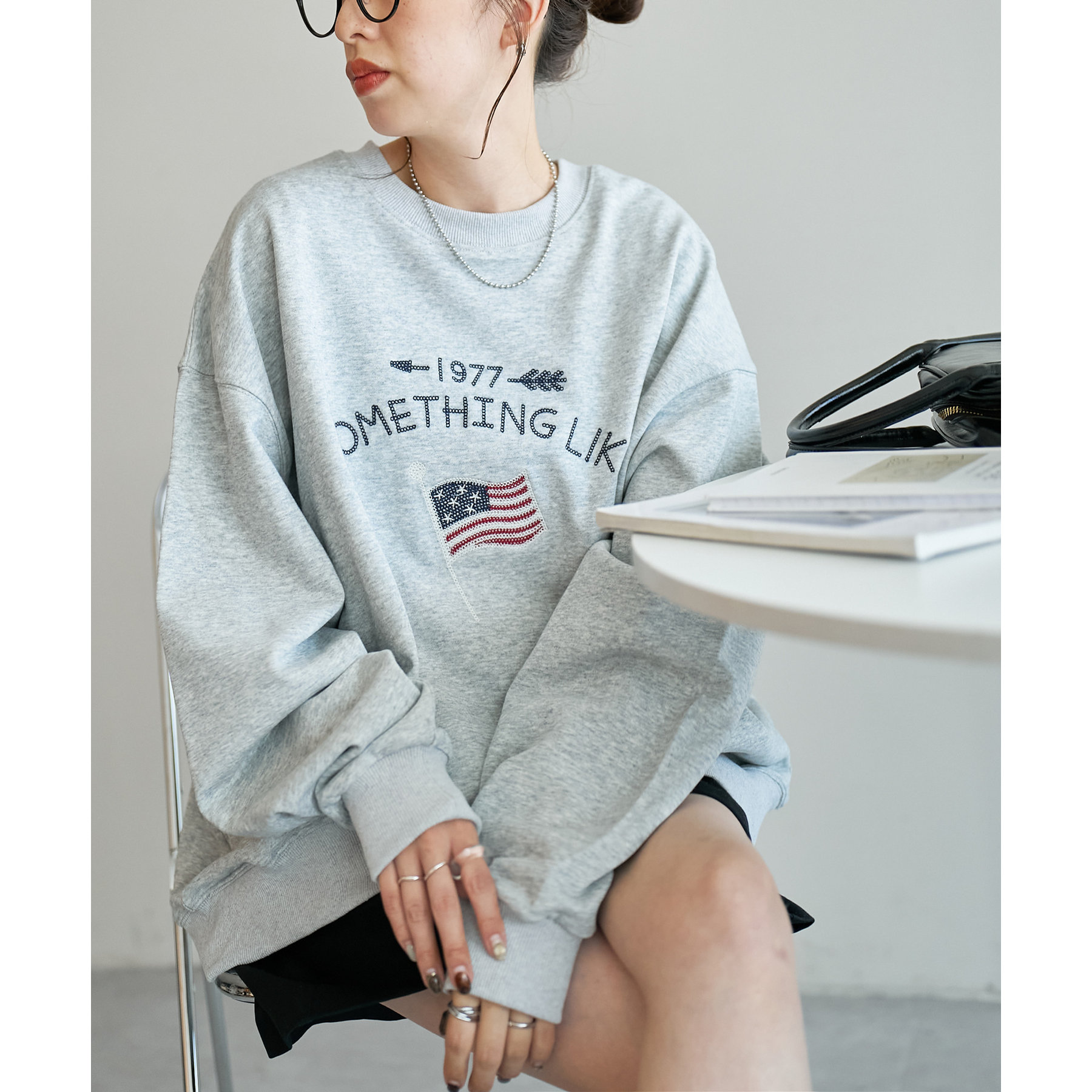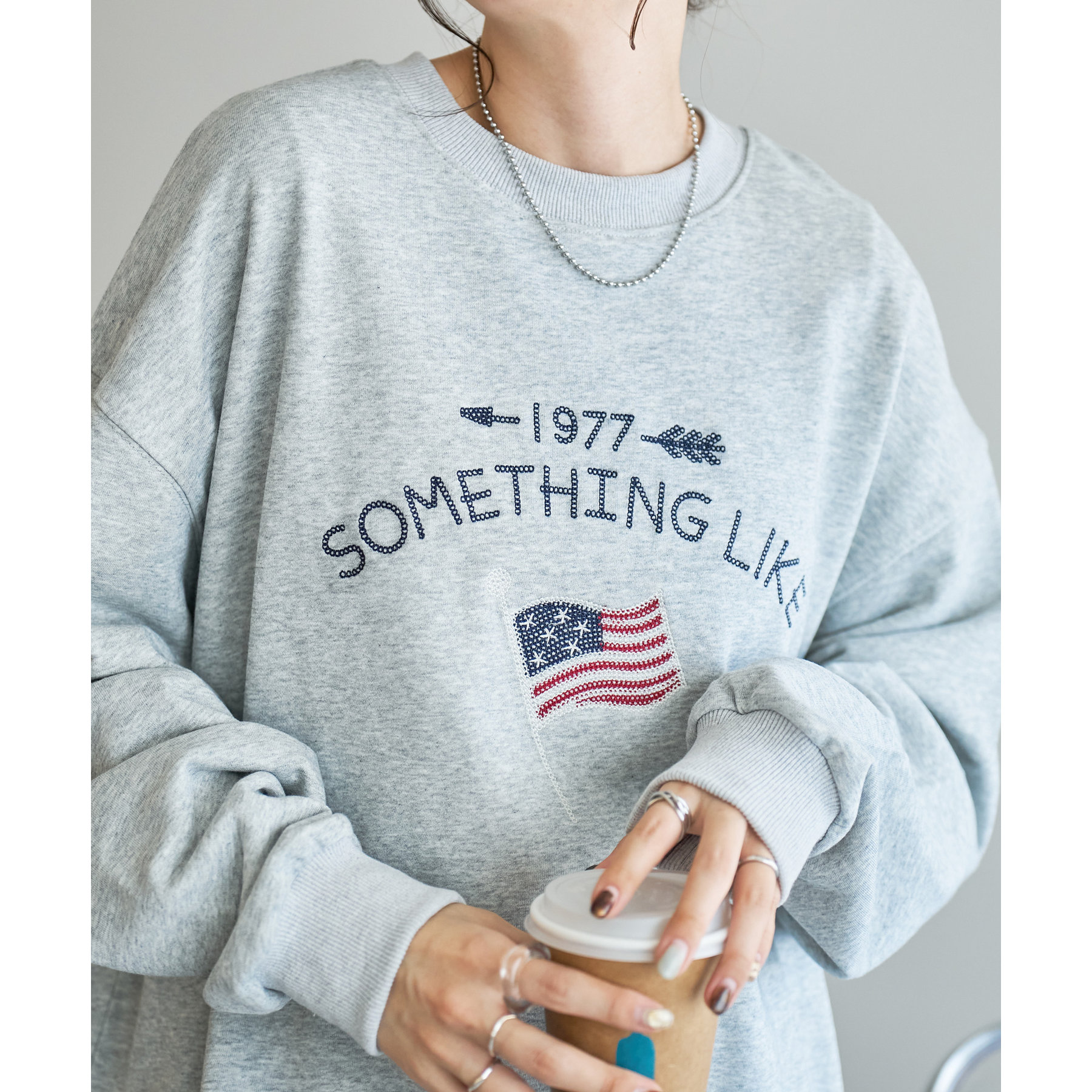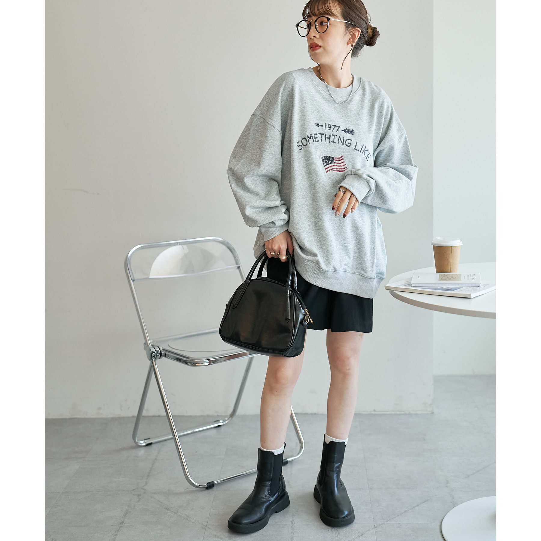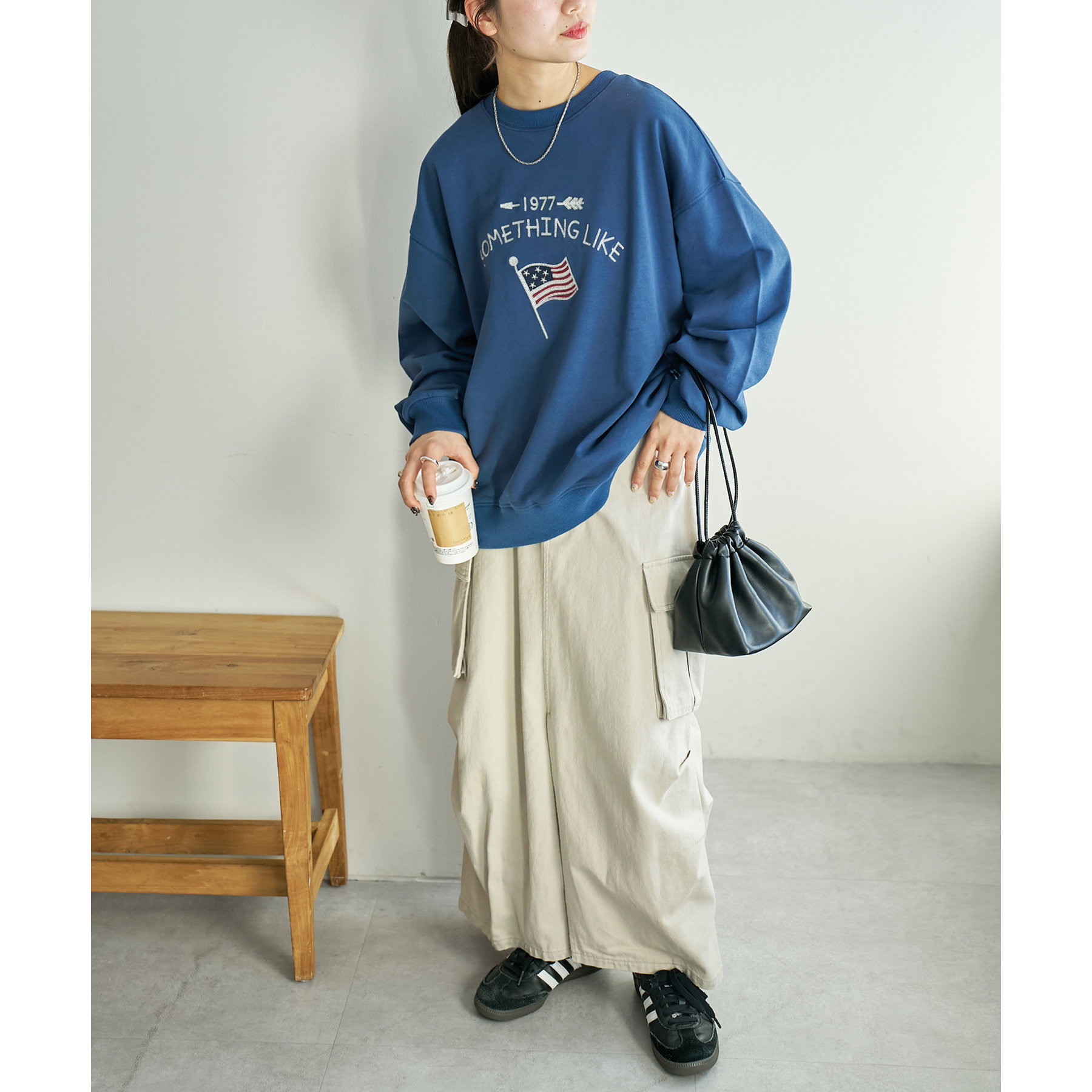 【ユニセックス】チェーンステッチモチーフ刺繍スウェット