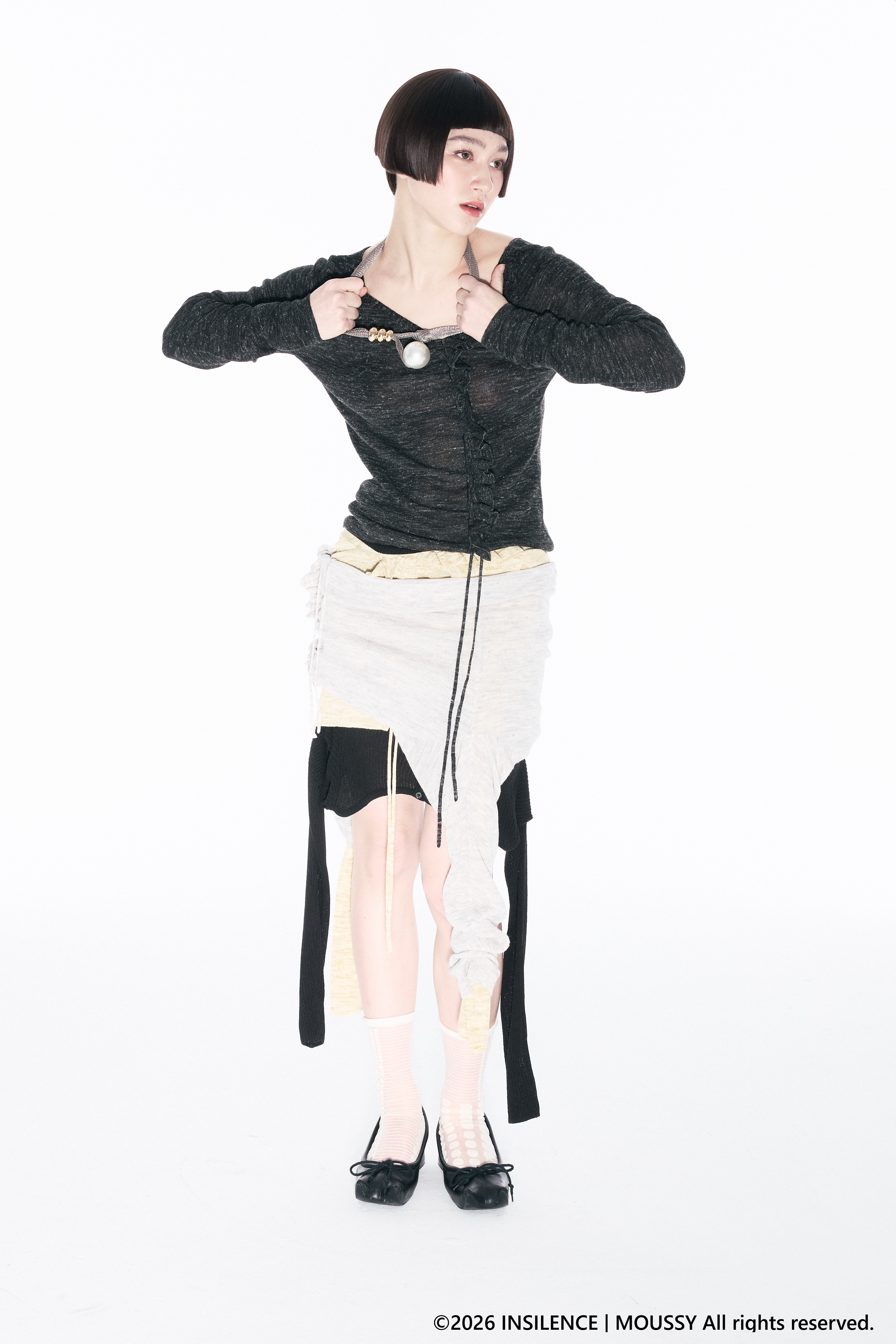 INSILENCEコラボならではの感度が光るギャザーニットトップス。