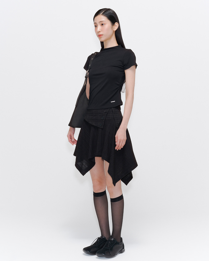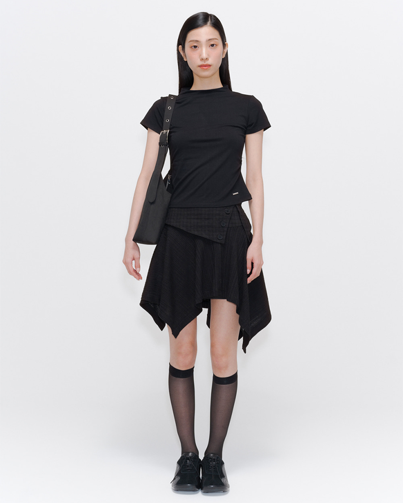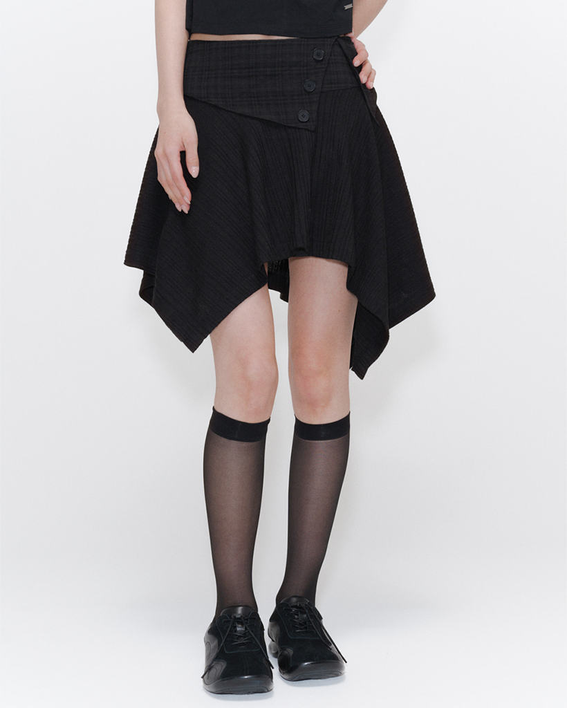 [Kアイドル着用]UnbalancedflowminiskirtBLACK