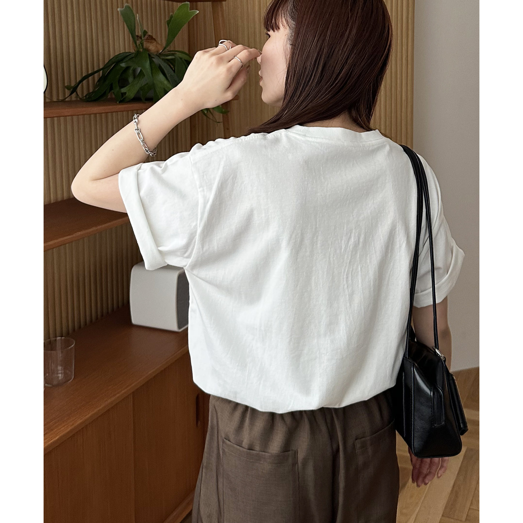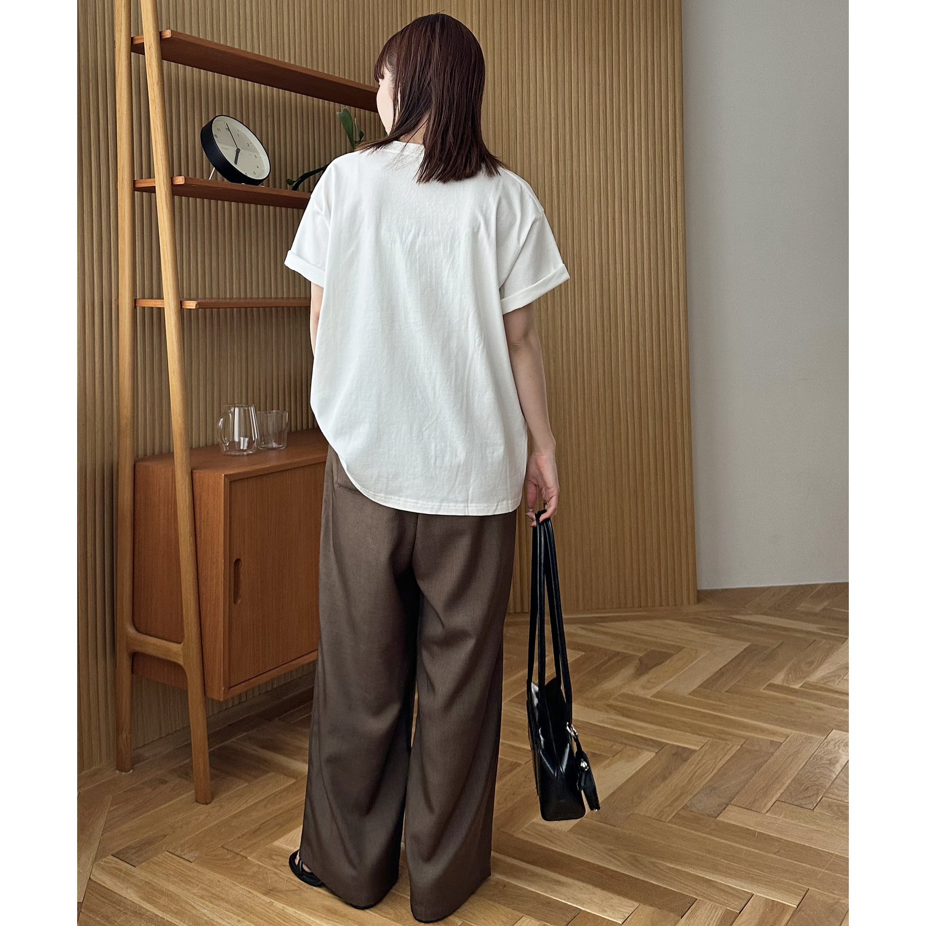 157cmレディーススタッフ:ゆったりめのサイズ感なのでアウトスタイルはもちろん、インスタイルですっきりと着ていただけます。アウトして着ればお尻回りが隠れる長さなので体型カバーができるのも嬉しいポイントです◎