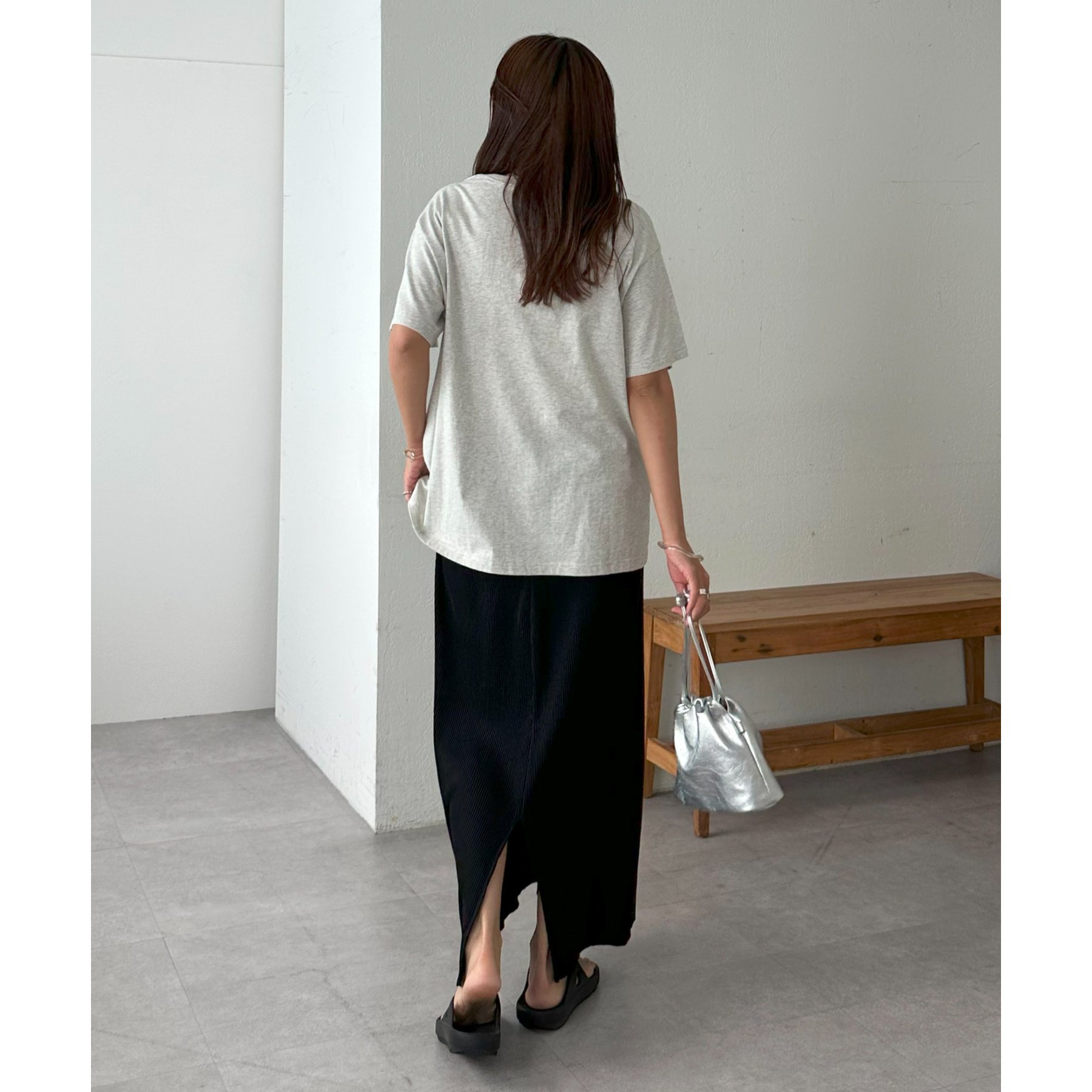 体のラインを拾わないゆったりとしたシルエットに長めの袖丈は、気になる腰回りから二の腕までカバーしてくれます◎
