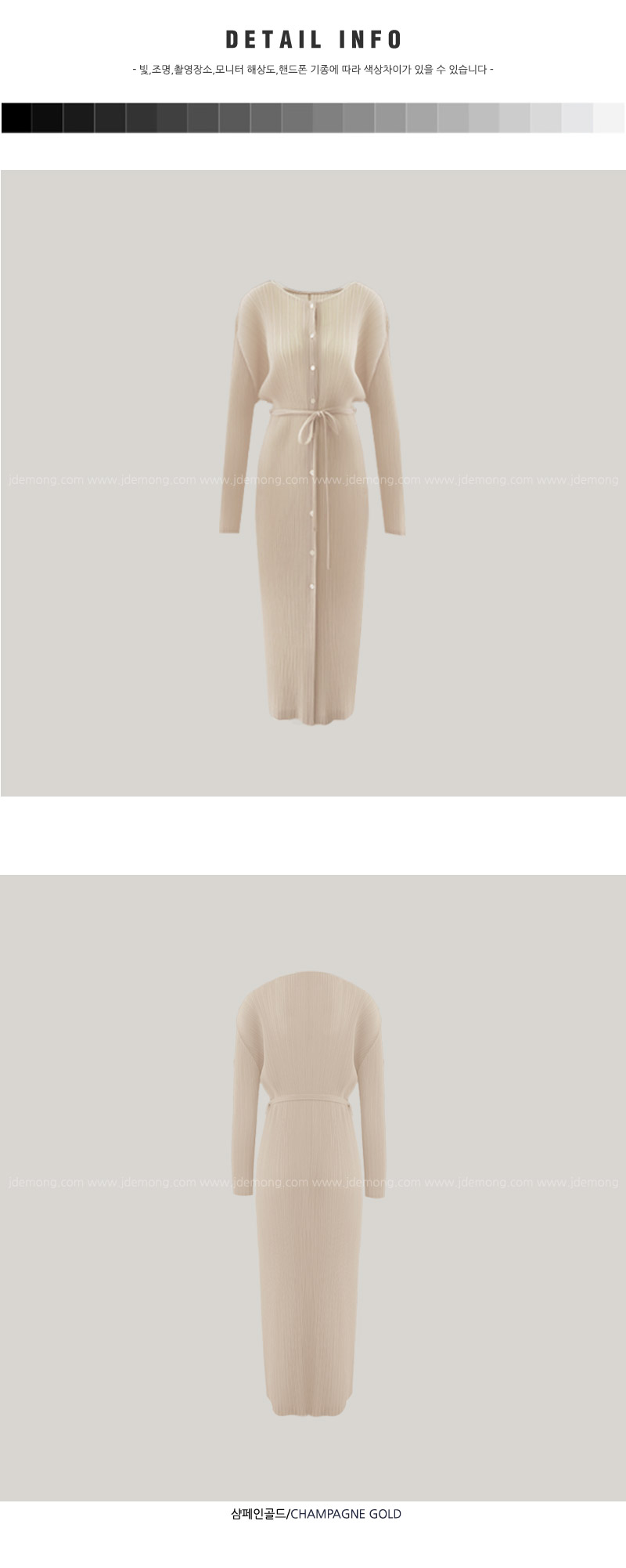 [PLEATS] Fluor Glow Button Round Long Cardigan - Champagne Gold