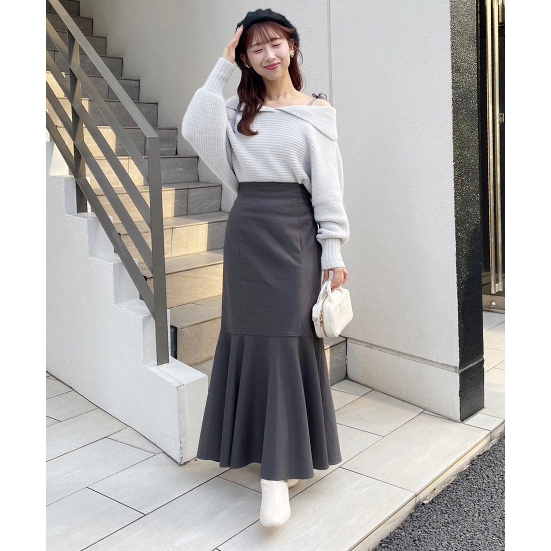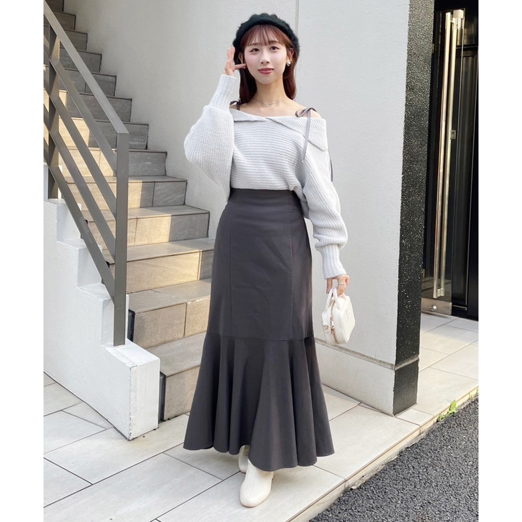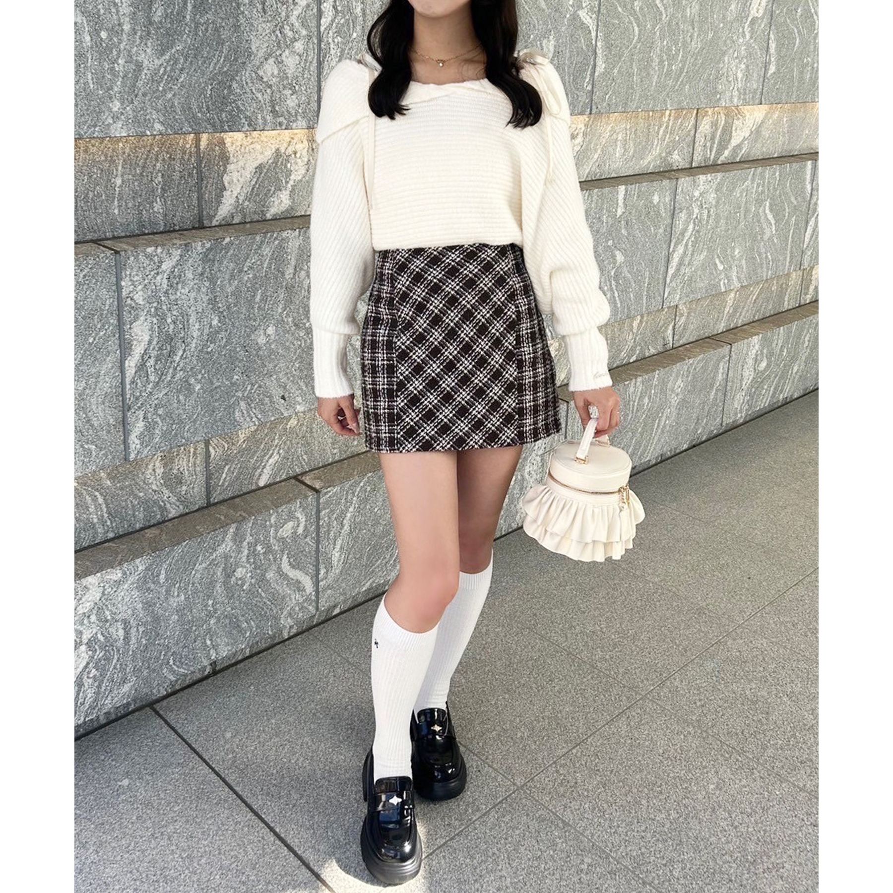 ミニ丈合わせで甘めに着ていただくのもおすすめです!