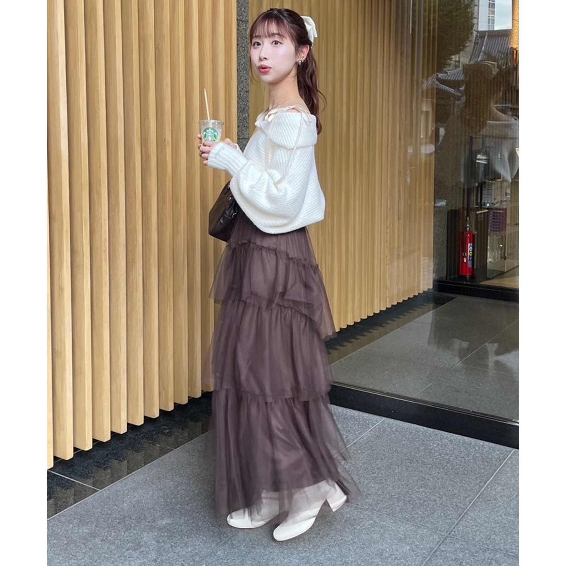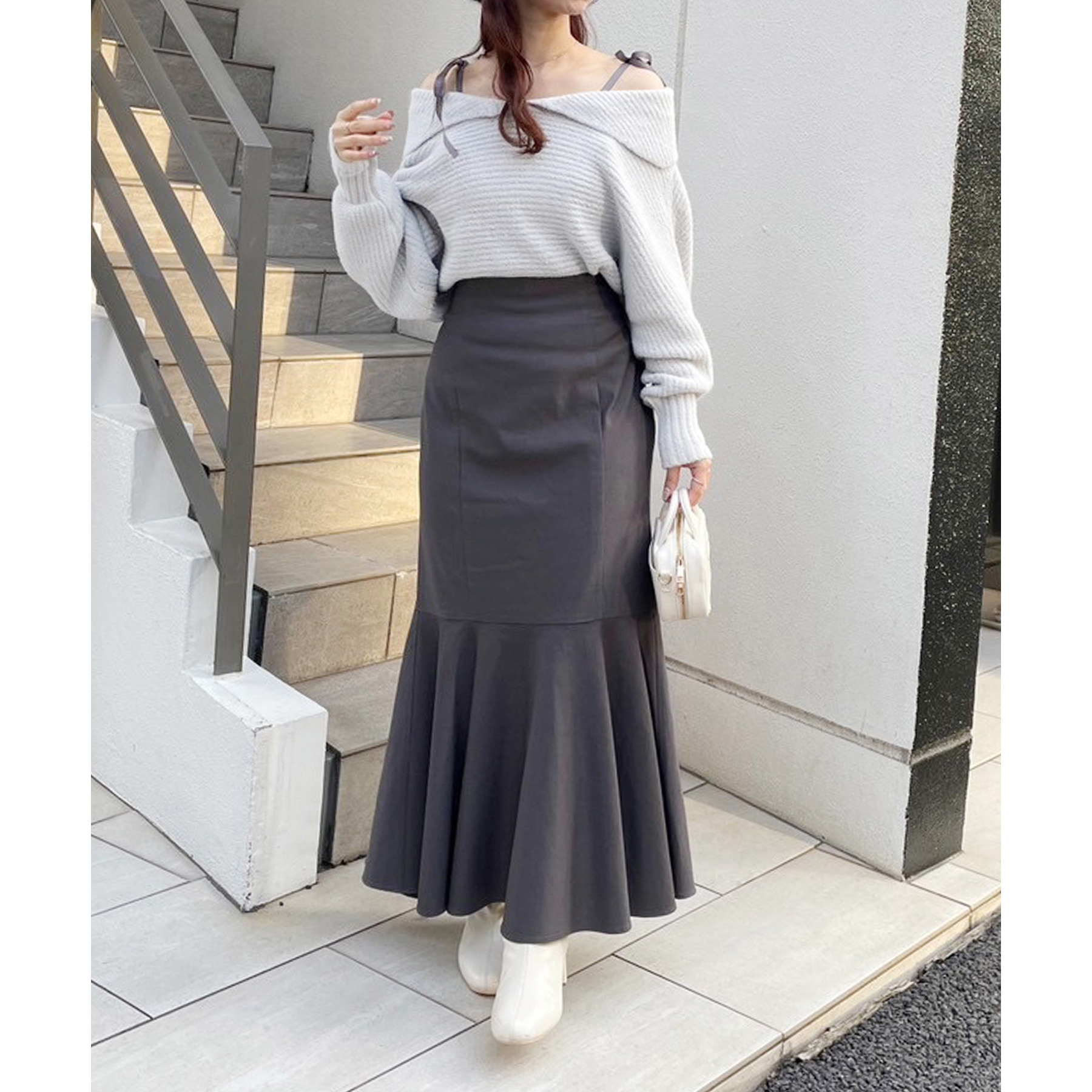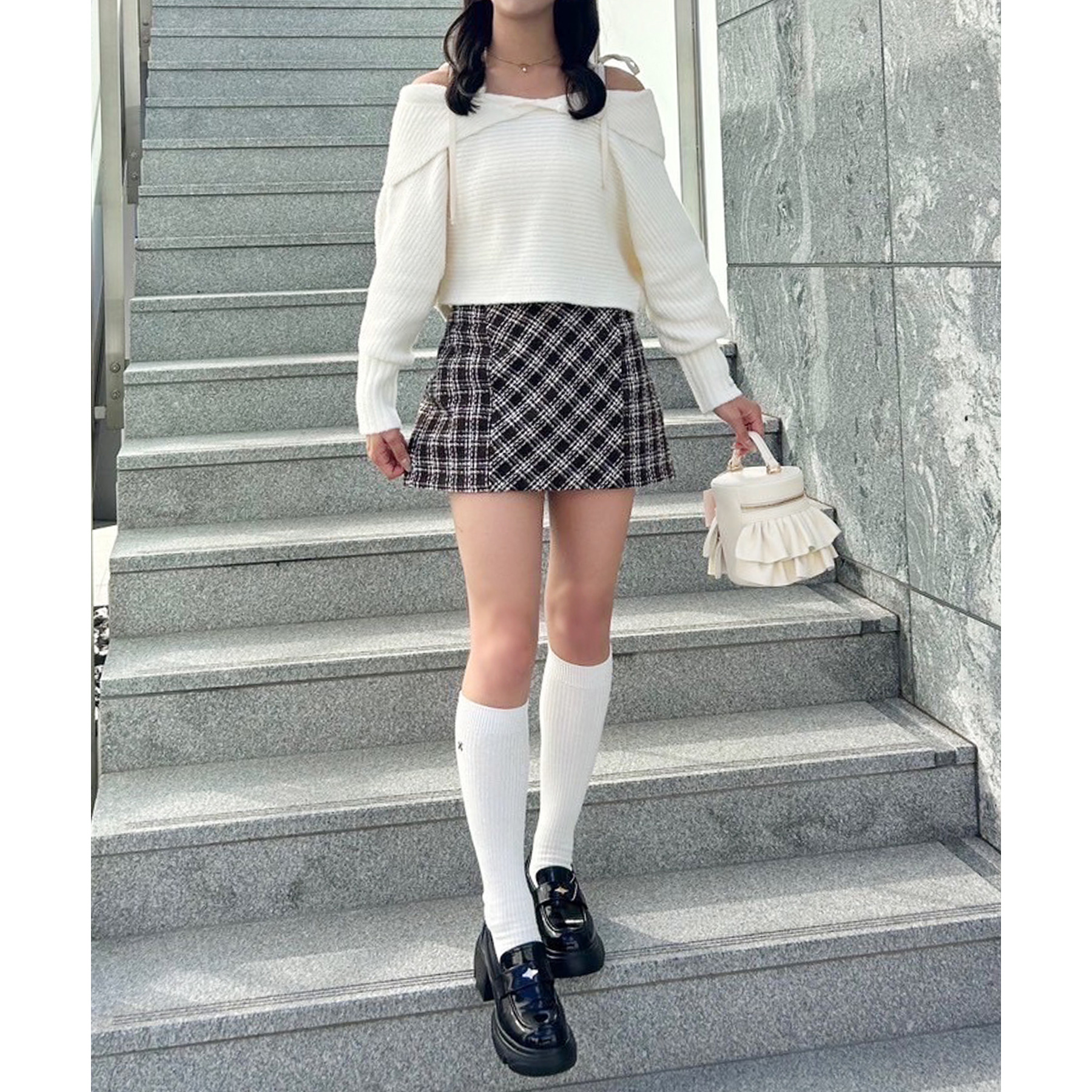 ミニ丈合わせで甘めに着ていただくのもおすすめです!