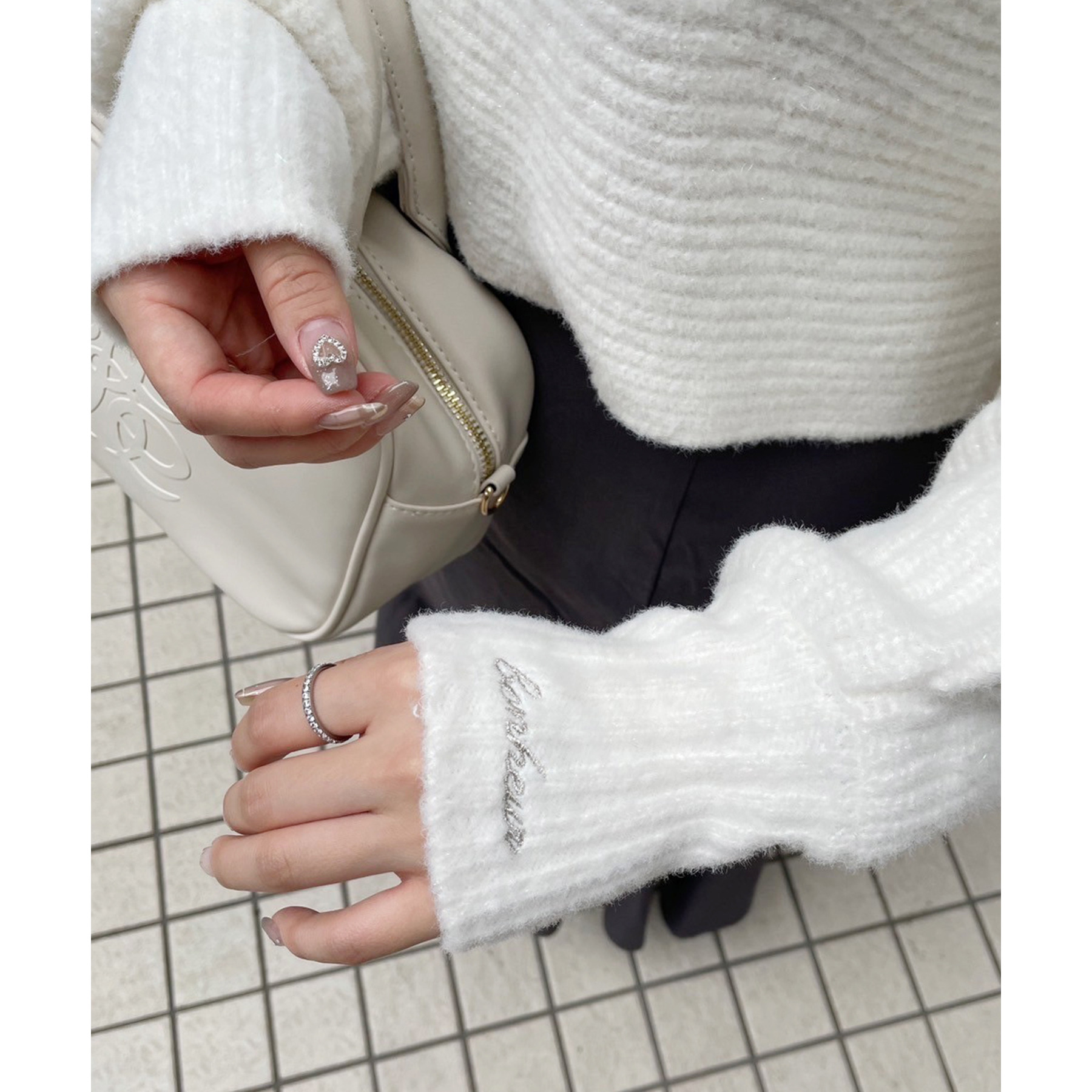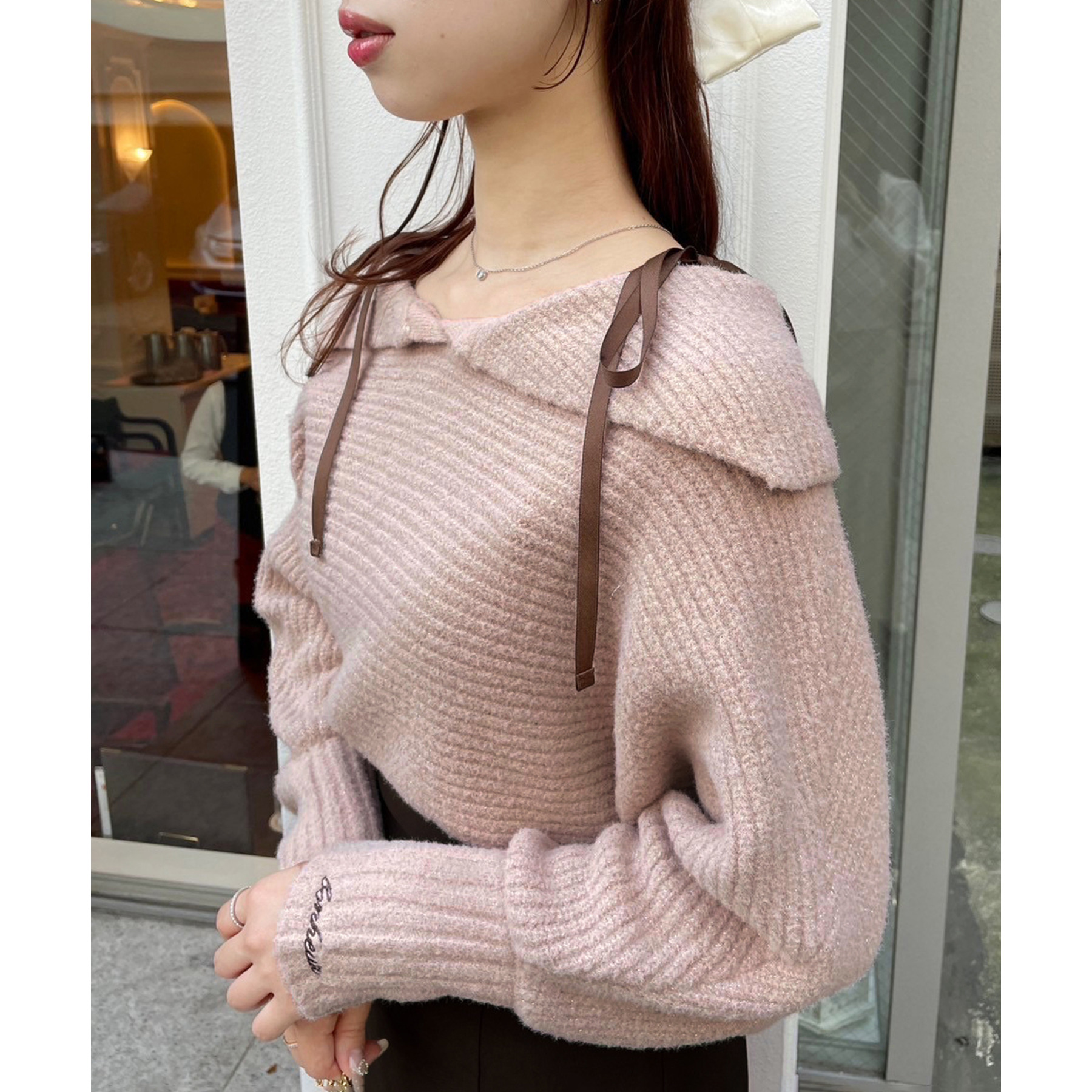 ニットにはラメ糸が混ざっており、さりげないキラッと感が楽しめます!