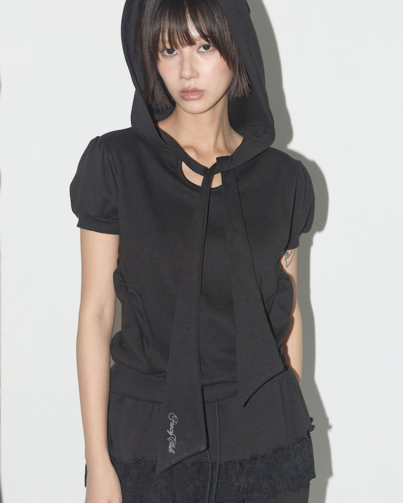 [Influencer pick] Puff Round Scarf Hoodie (Black) F25QB081