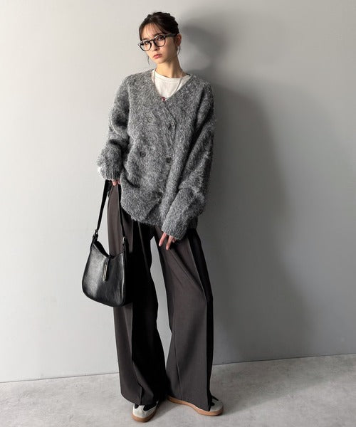ミックスシャギー素材ダブルテーラードニットカーディガン」
