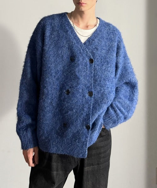 「Mixed Shaggy Double-Tailored Knit Cardigan/