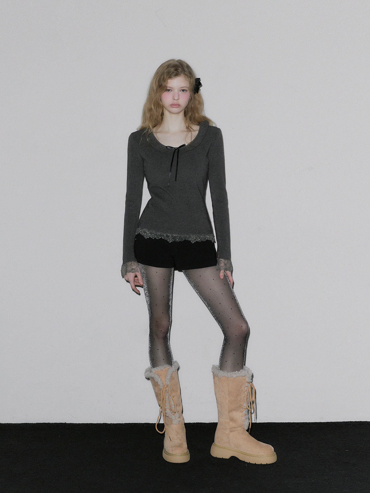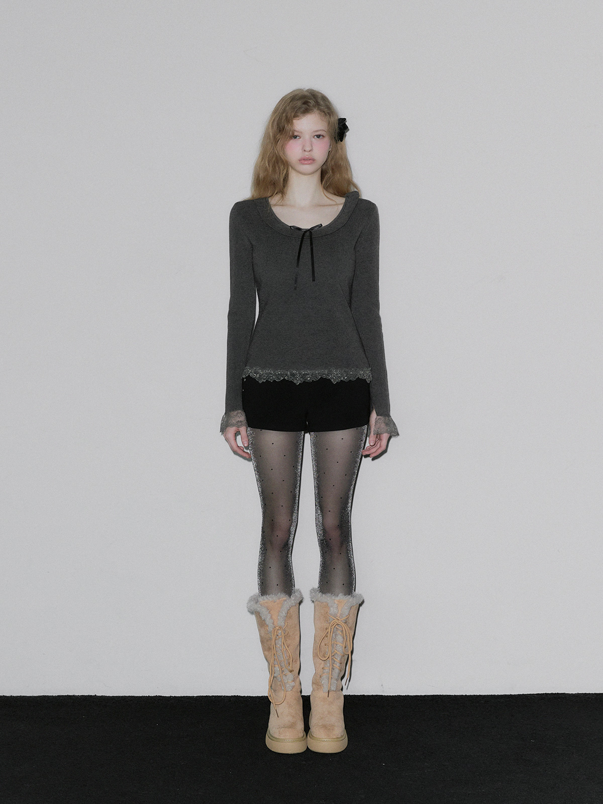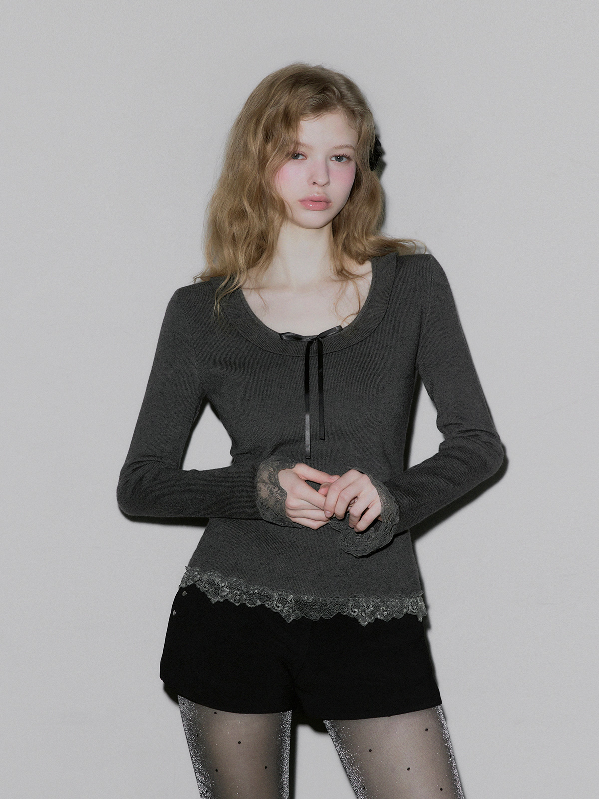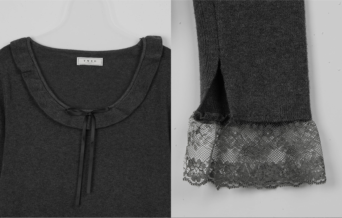 BEAR Frill Lace Ribbon Knit Top