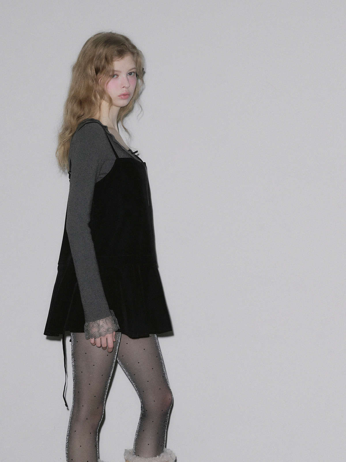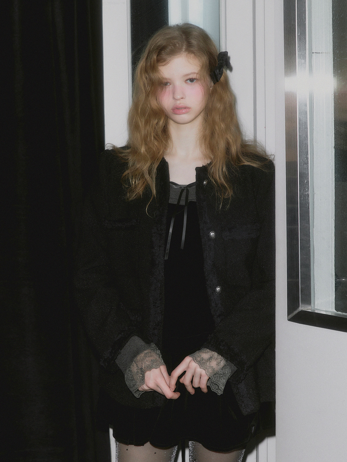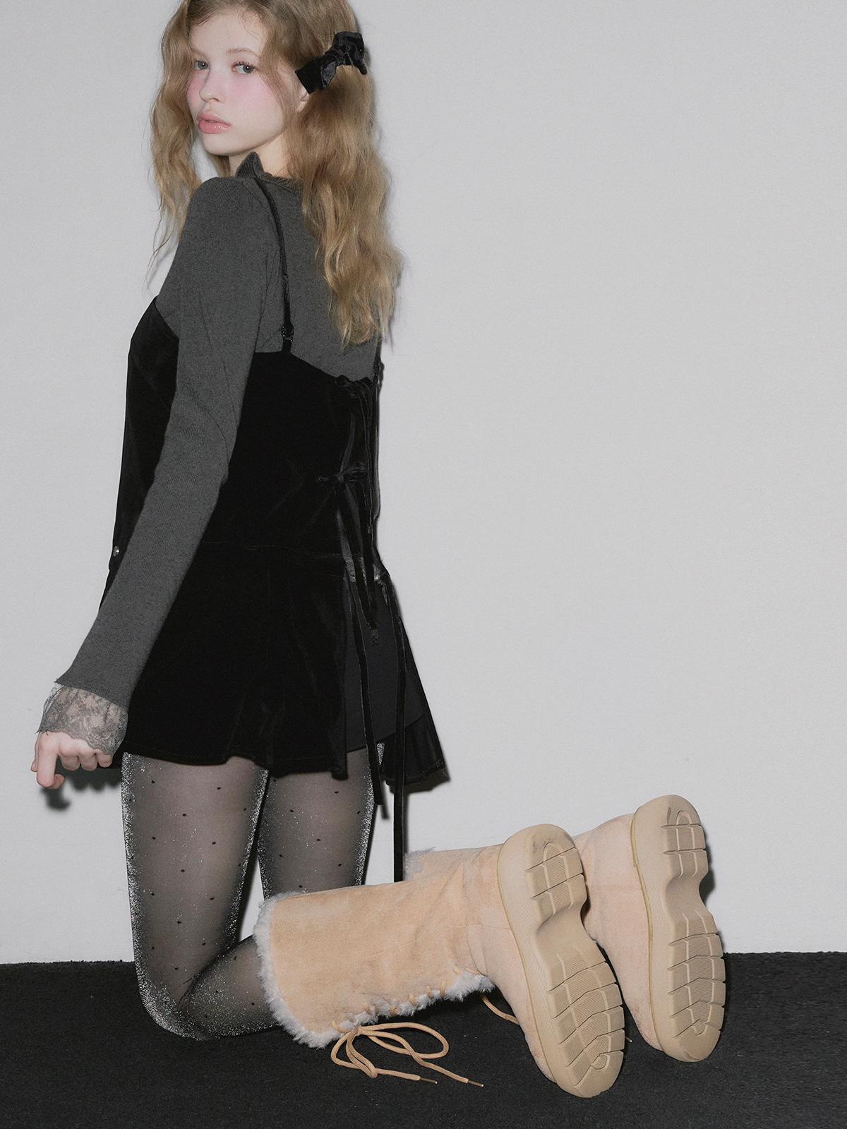 BEAR Frill Lace Ribbon Knit Top