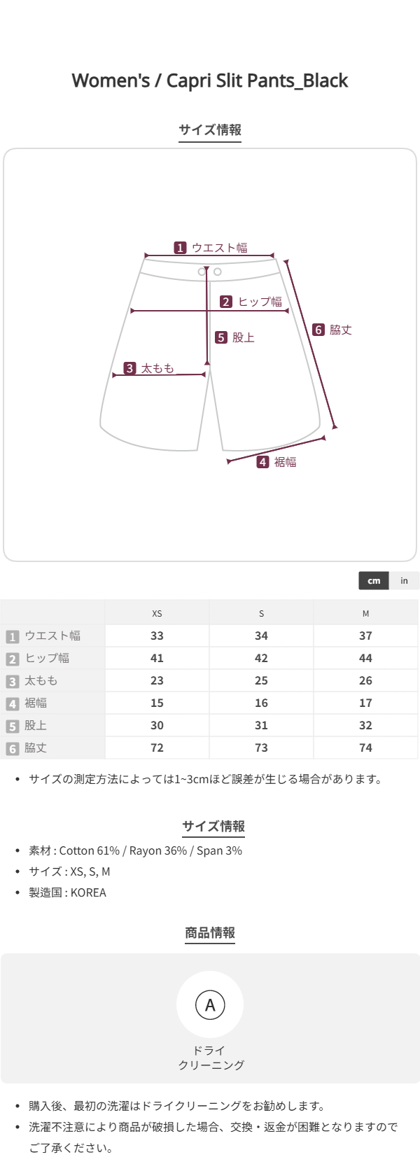 ・Cotton 61% / Rayon 36% / Spandex 3%