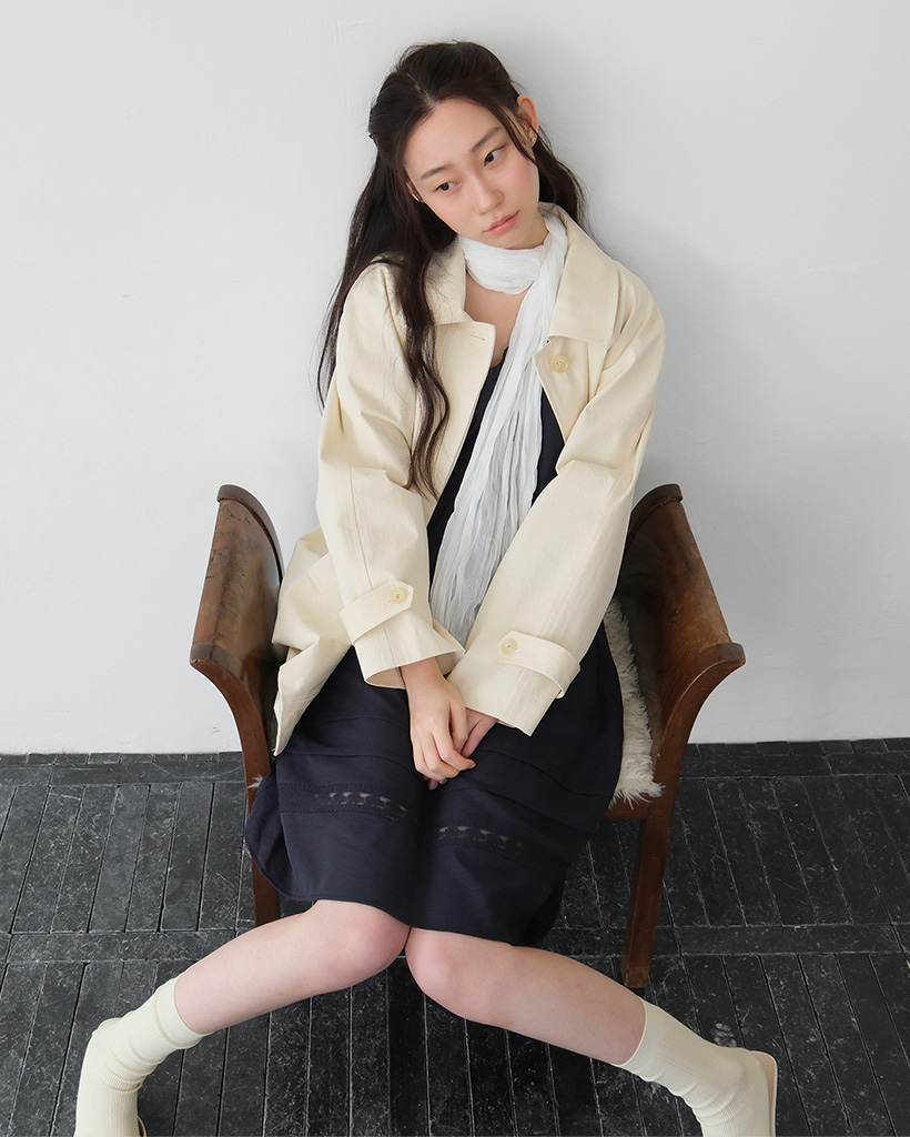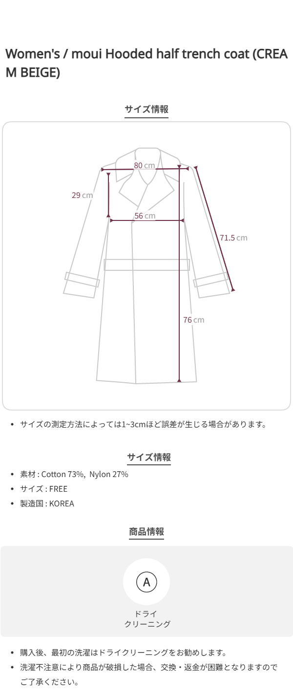 moui Hooded half trench coat (CREAM BEIGE)