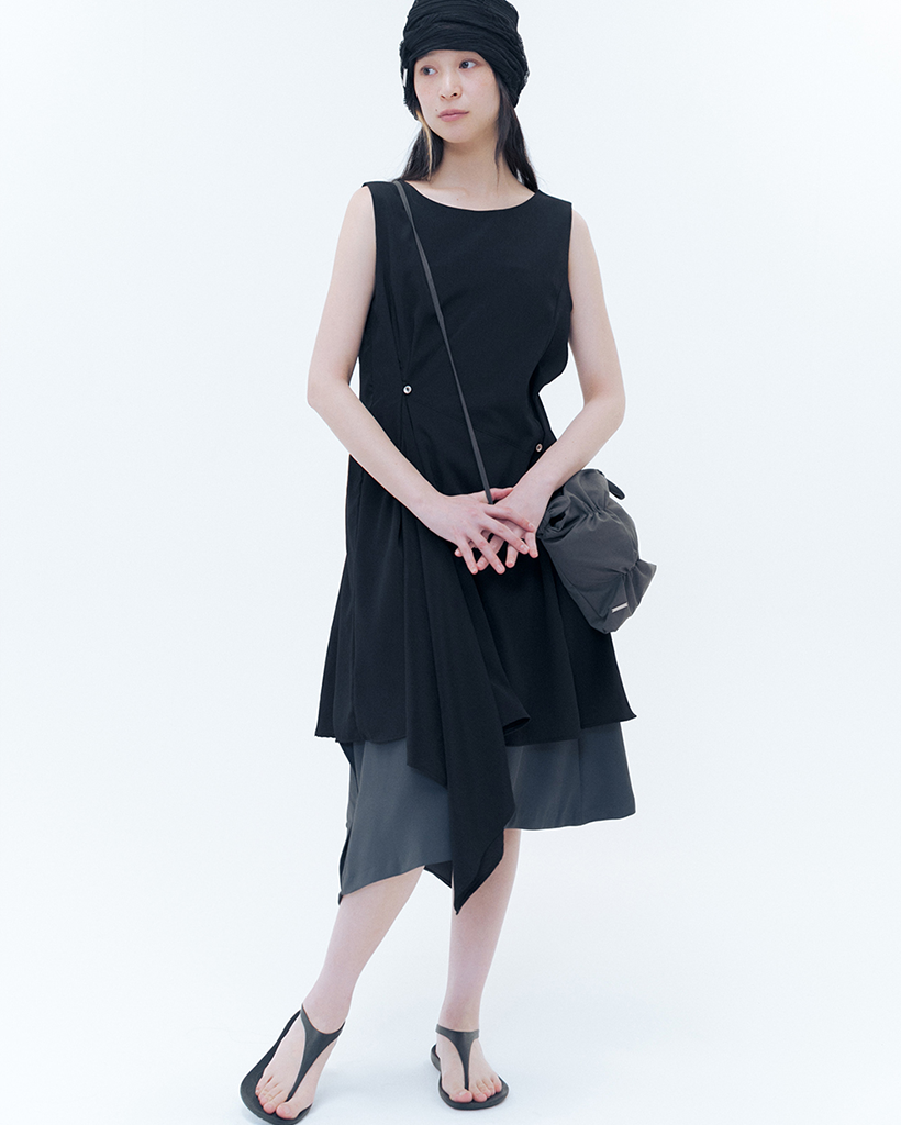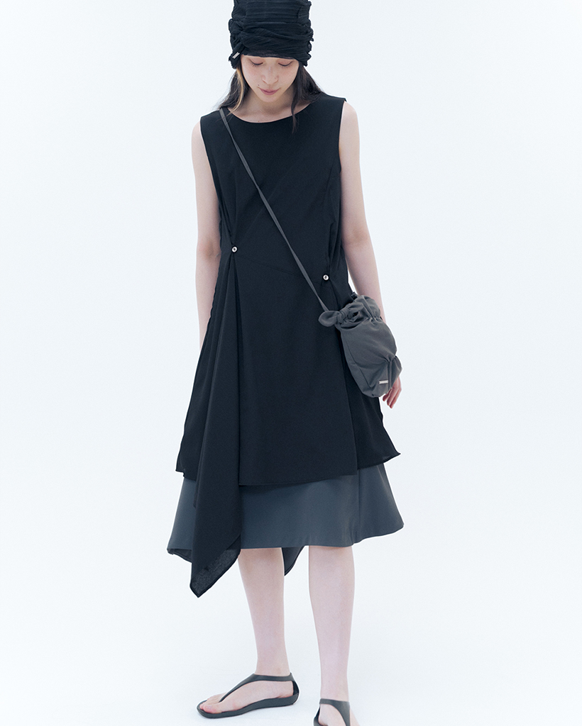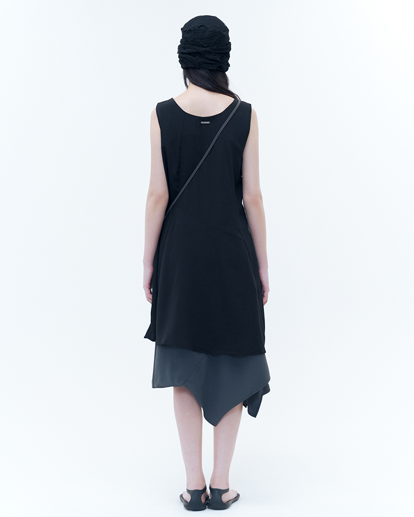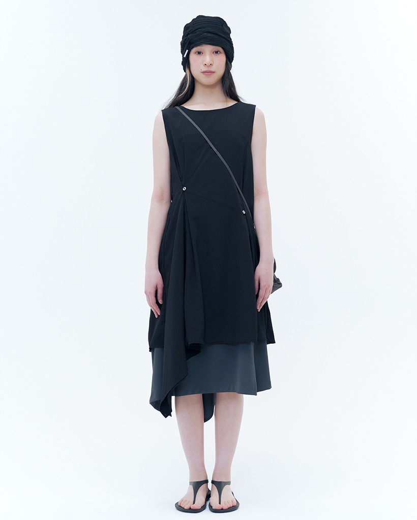 Billow sheer sleeveless one piece BLACK