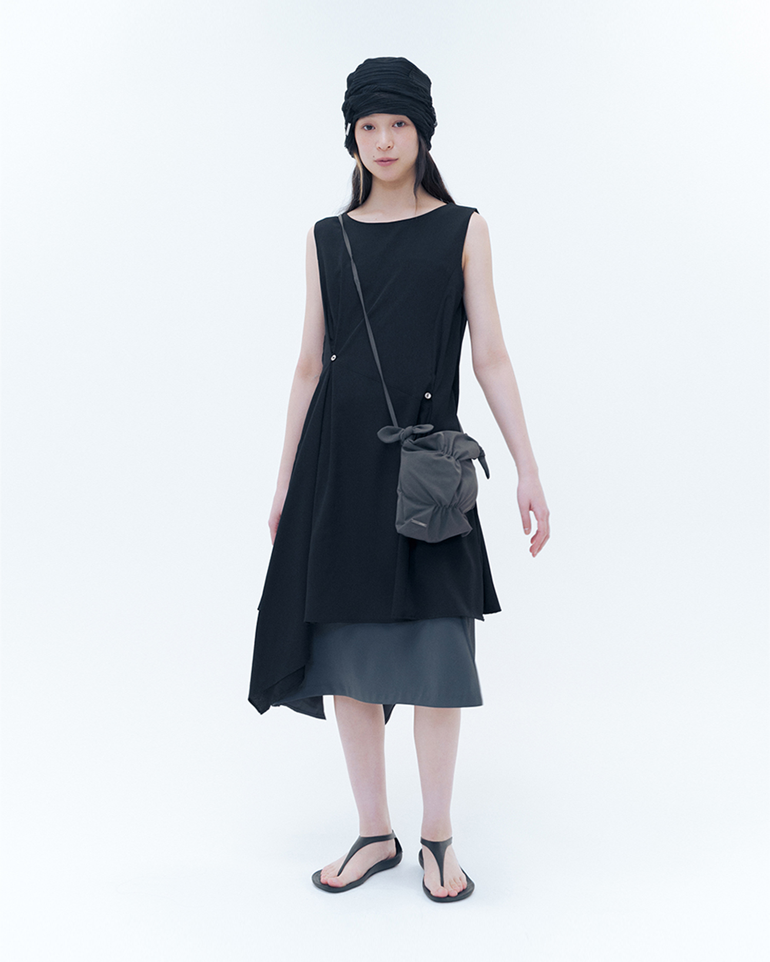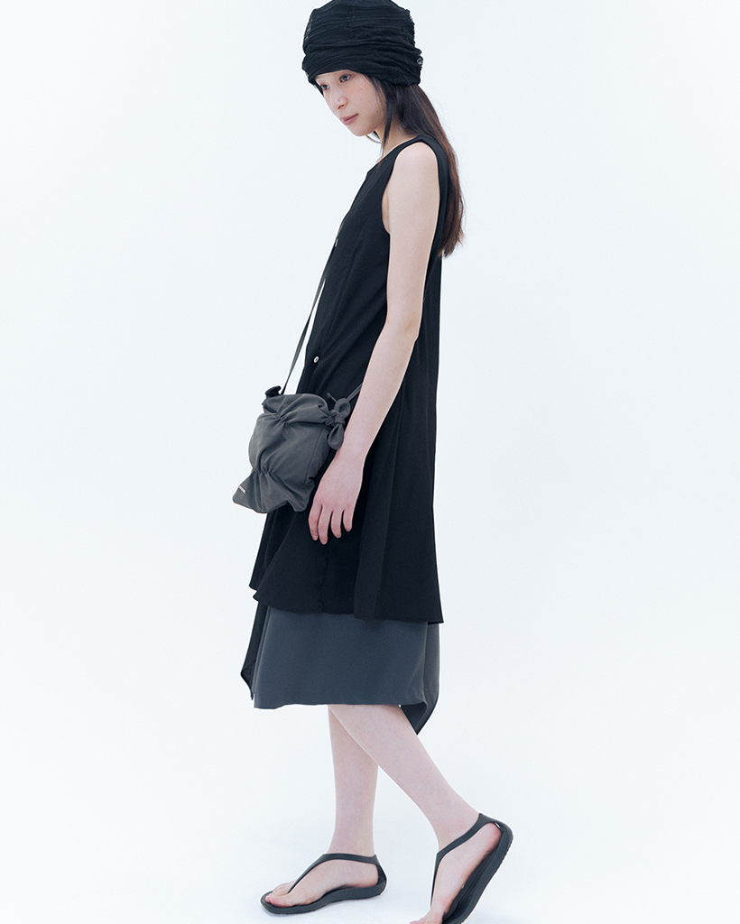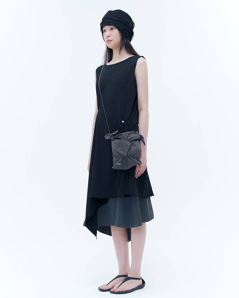 Billow sheer sleeveless one piece BLACK