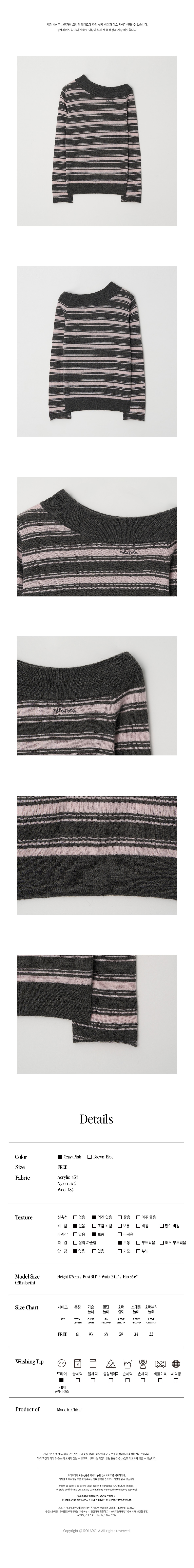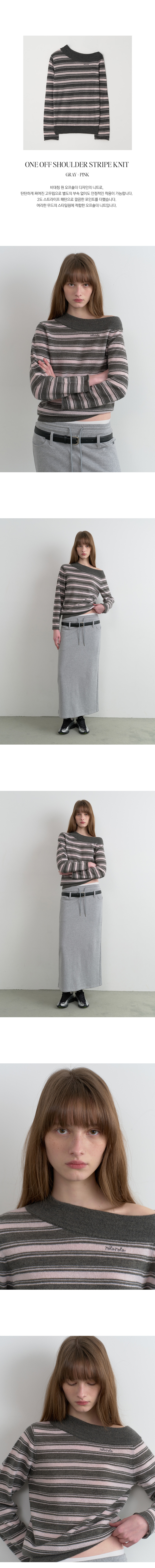 ONE OFF SHOULDER STRIPE KNIT GY+PK