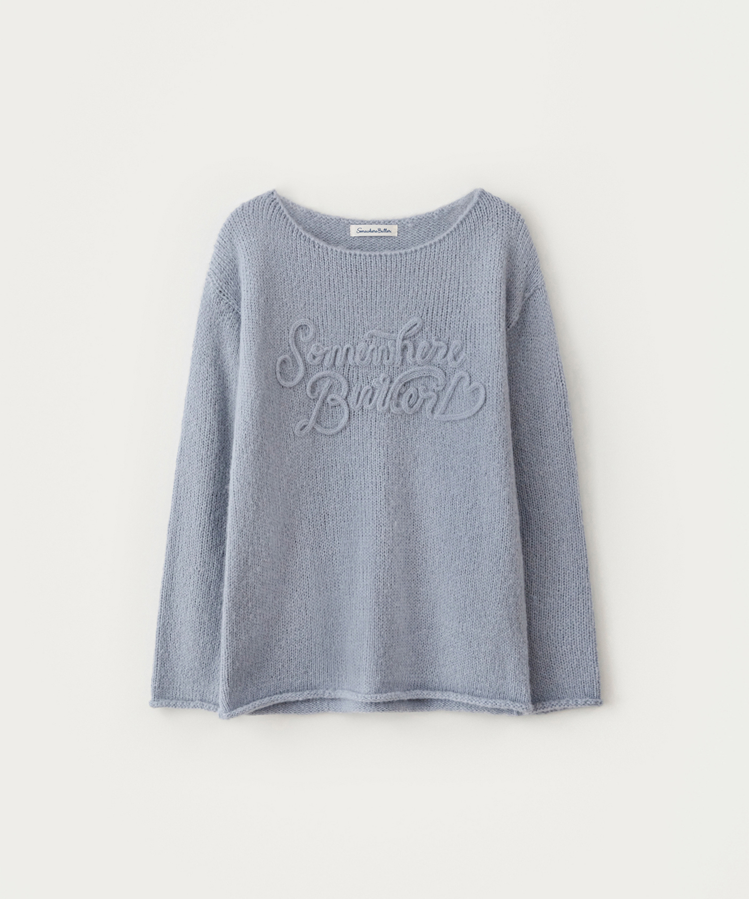 Mohair Letter Long Sleeve Knit-light blue