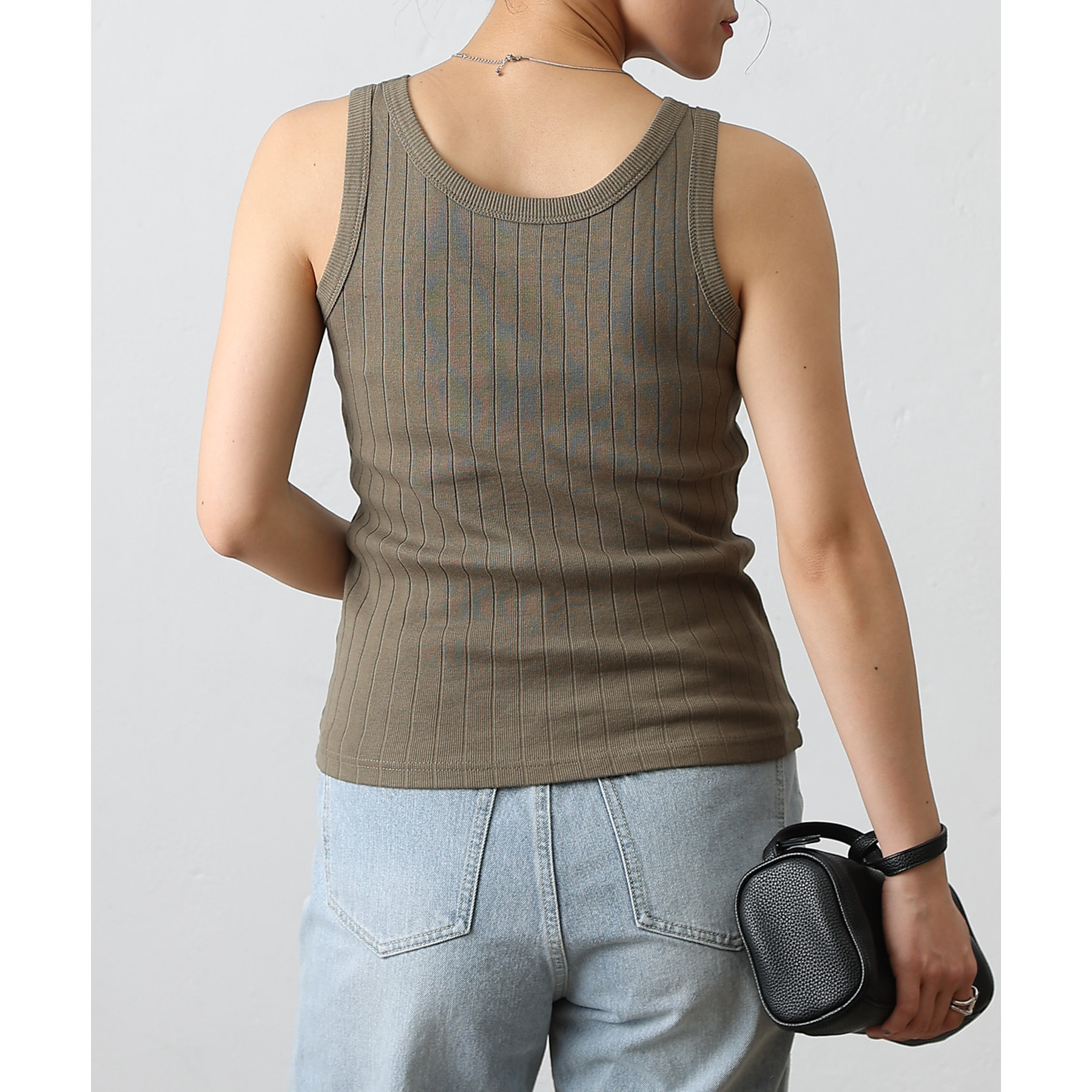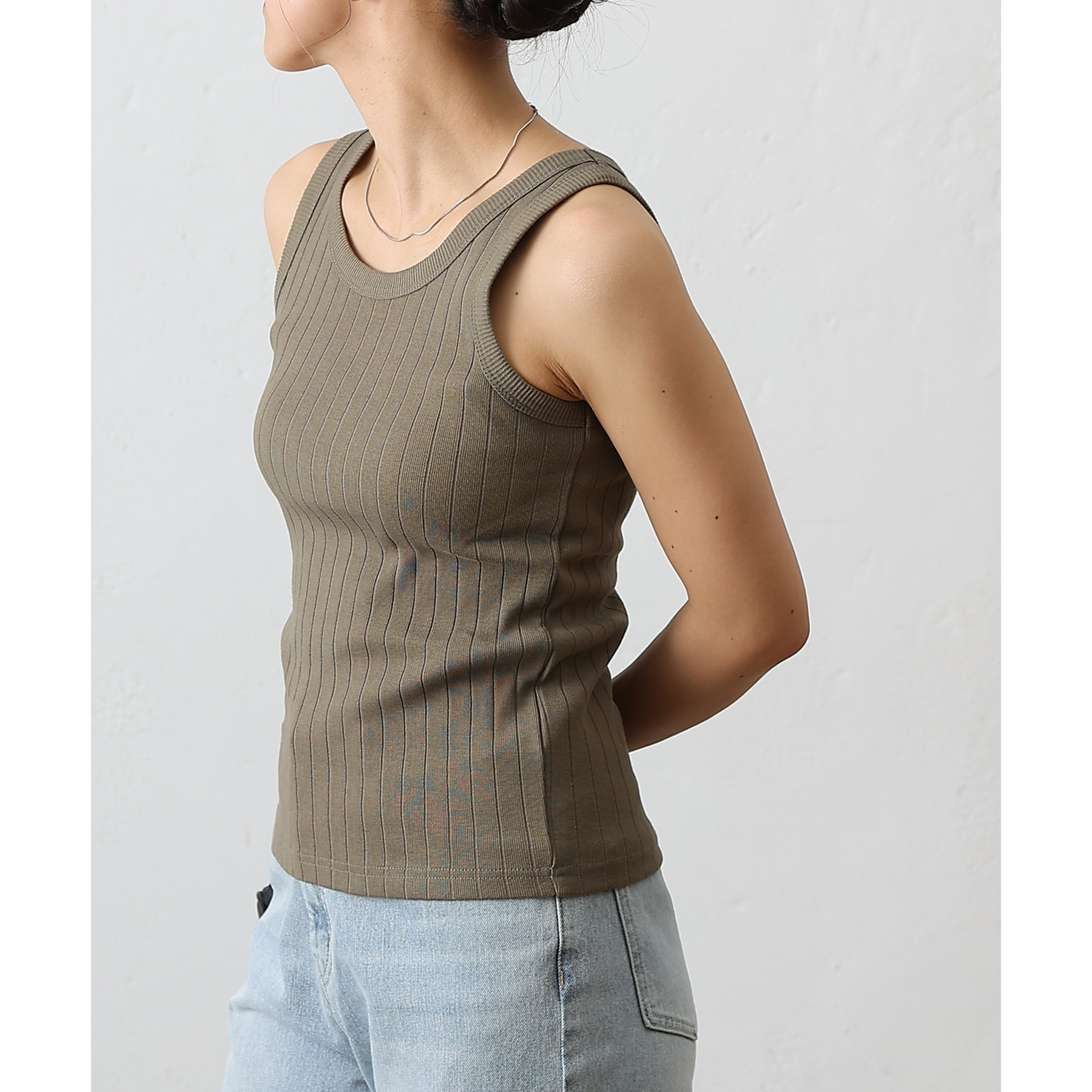 コットン100%のワイドリブタンクトップで着心地も抜群◎