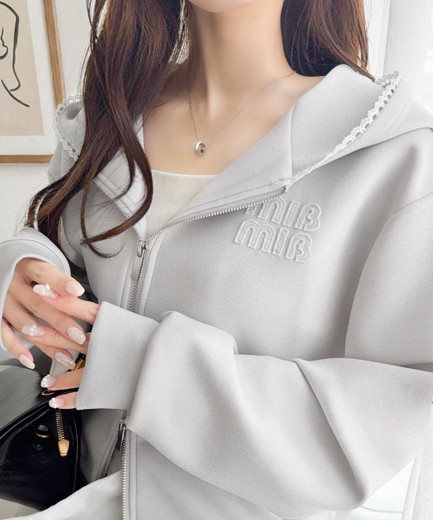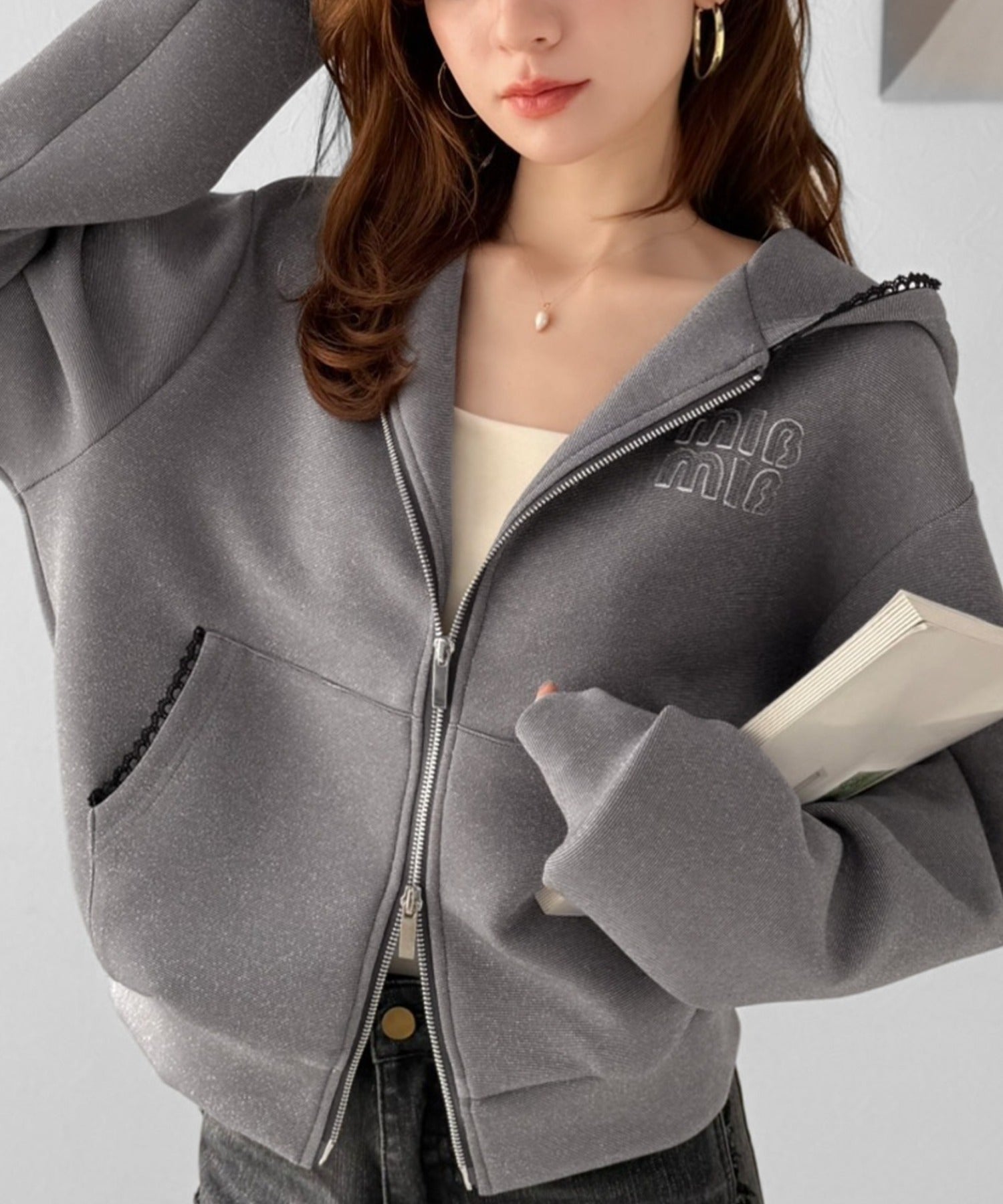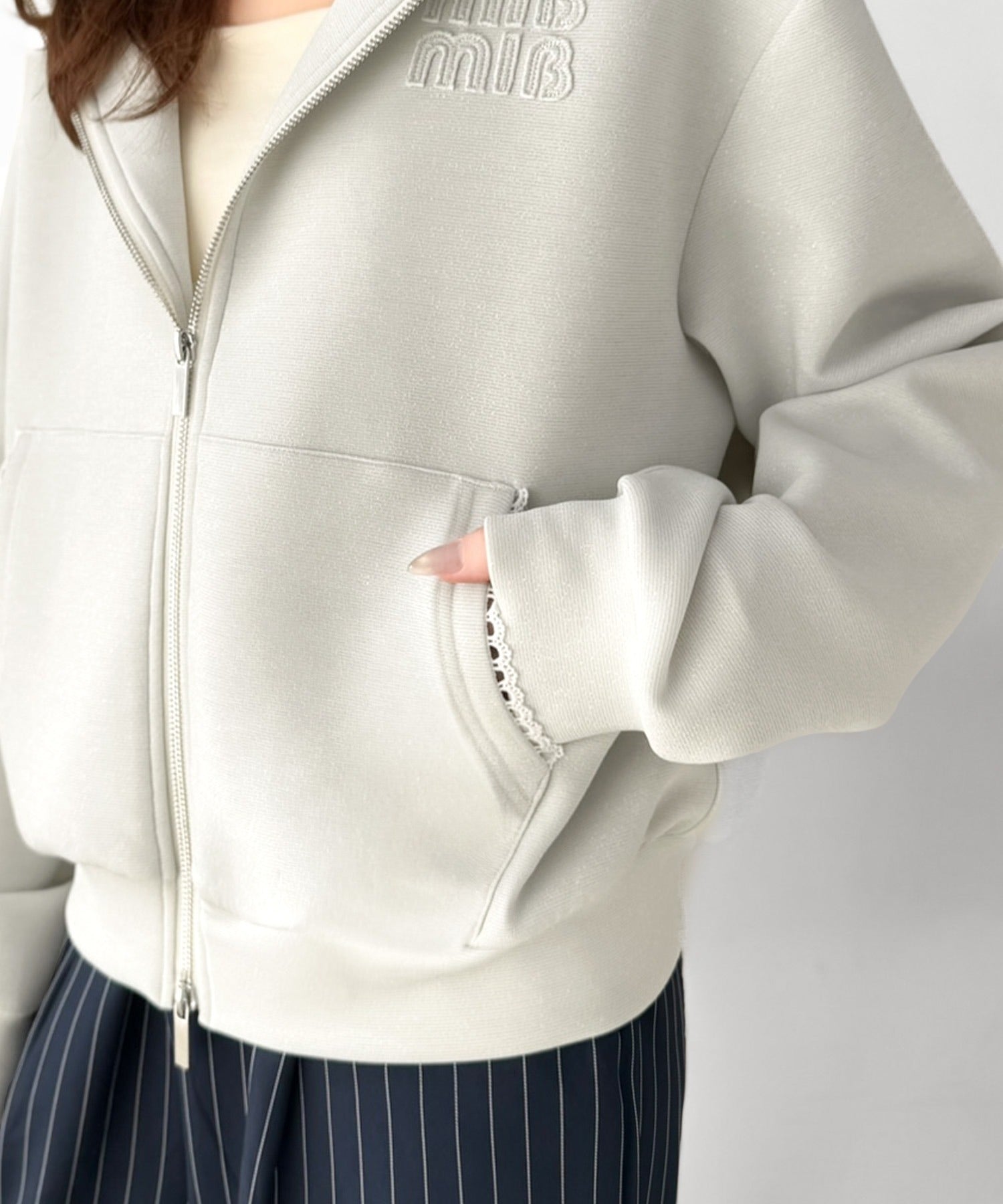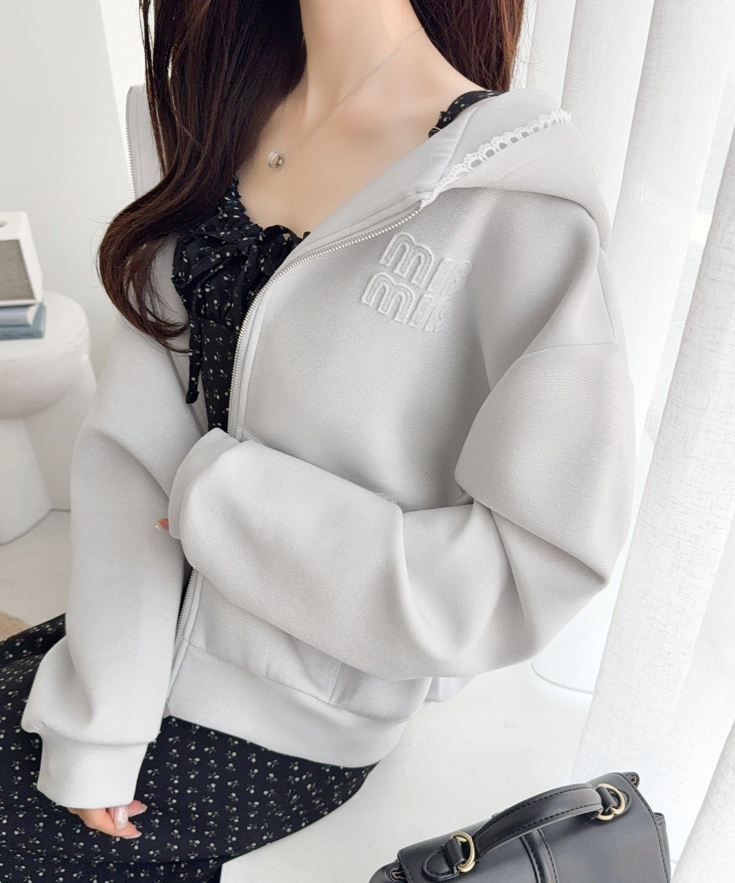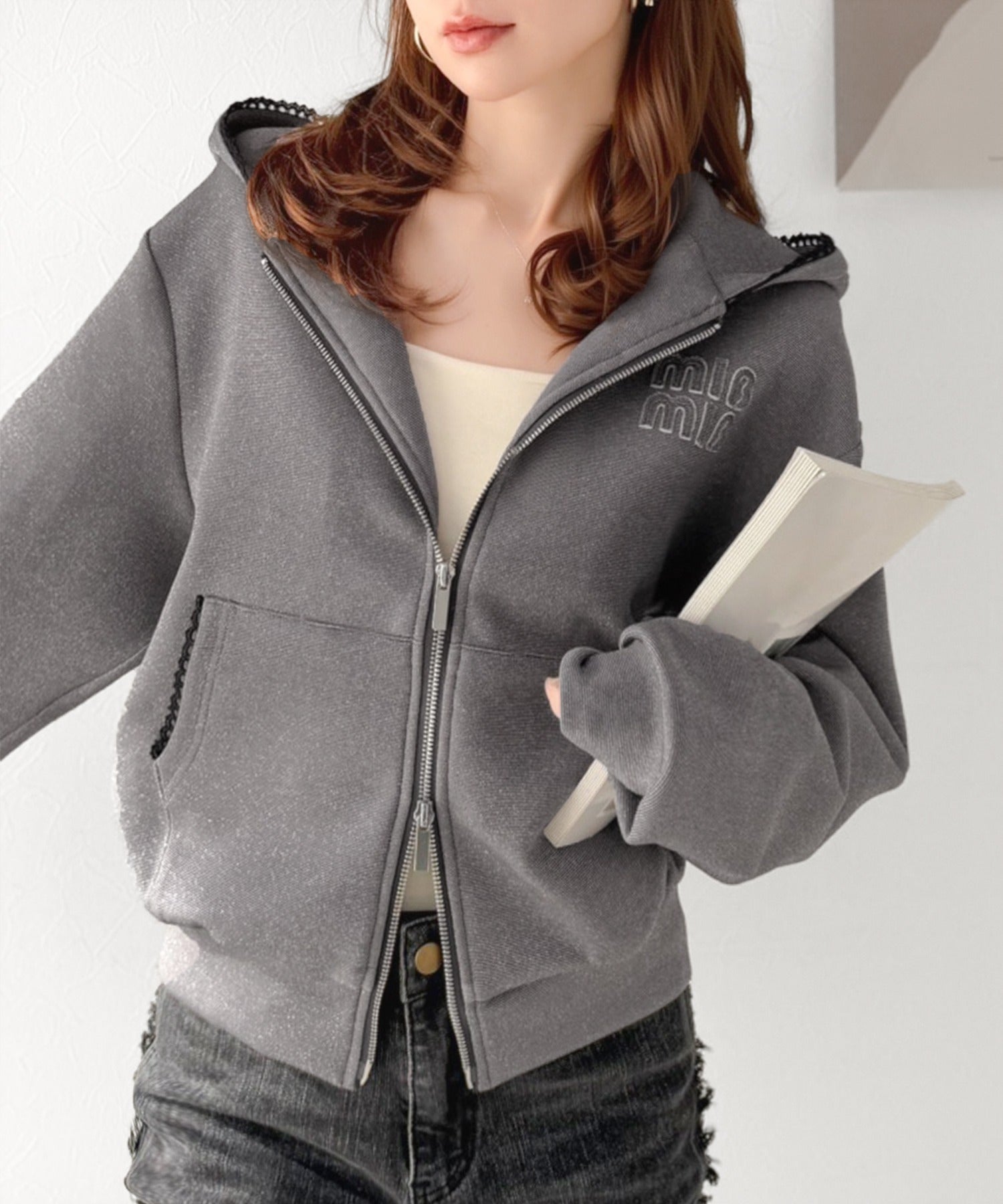 【mily bilet】きらっとラメが映える♪ワッペン付きダブルジップピコレース使いラメパーカー(長袖) mi1329094
