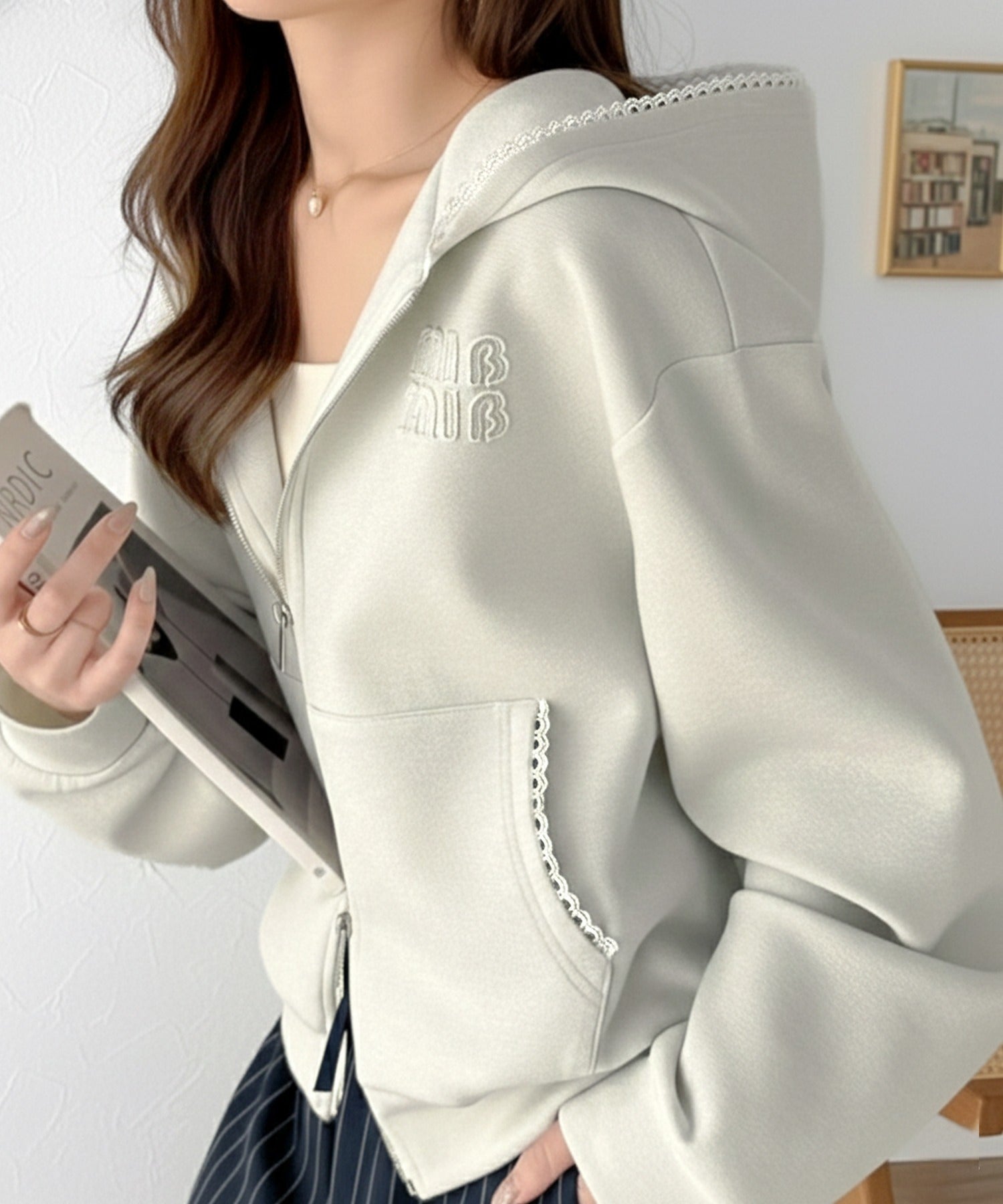 フードのピコレースが大人可愛い主役級パーカー!