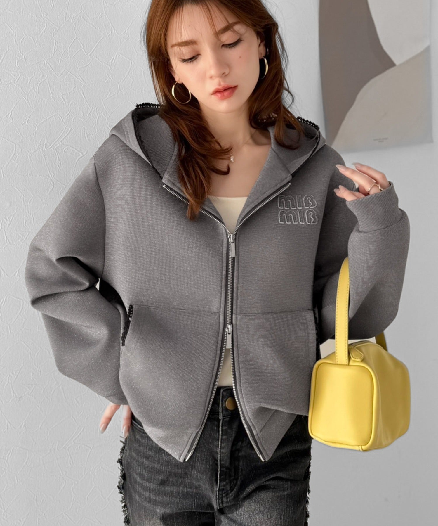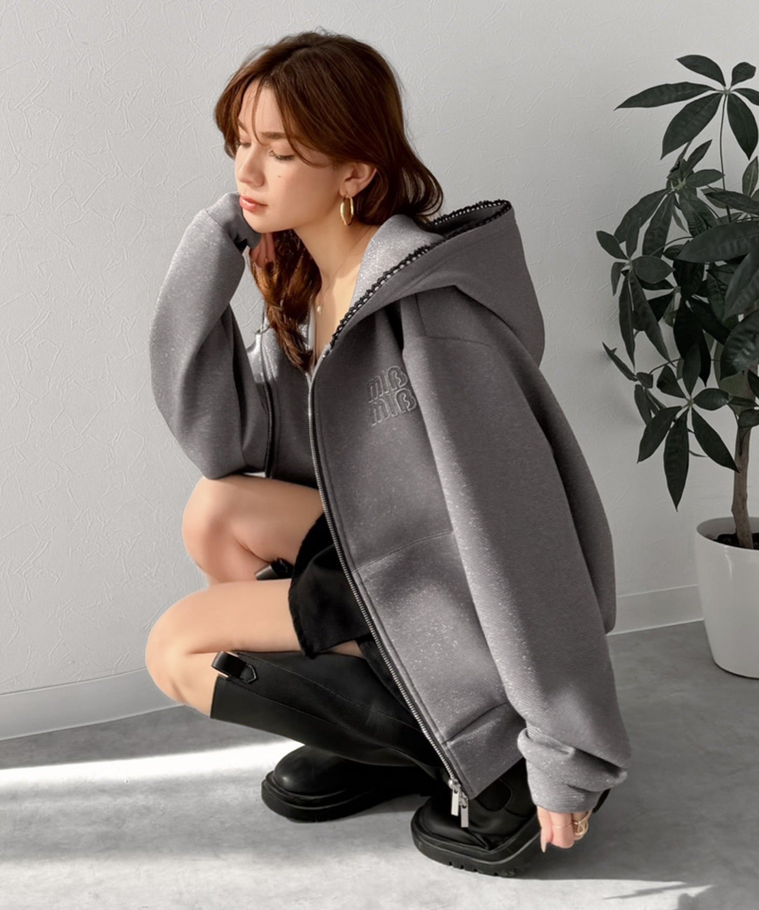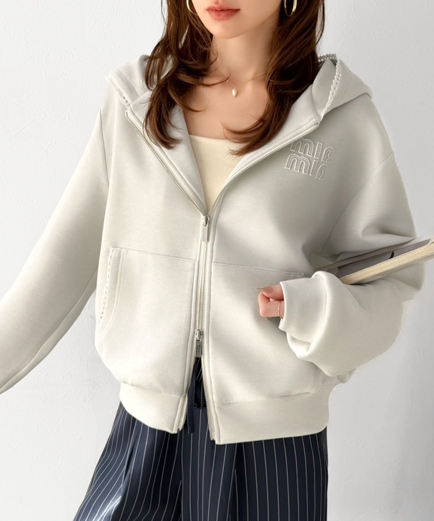 トレンドのダブルジップは、上下の開け方次第でパッと抜け感を演出♪