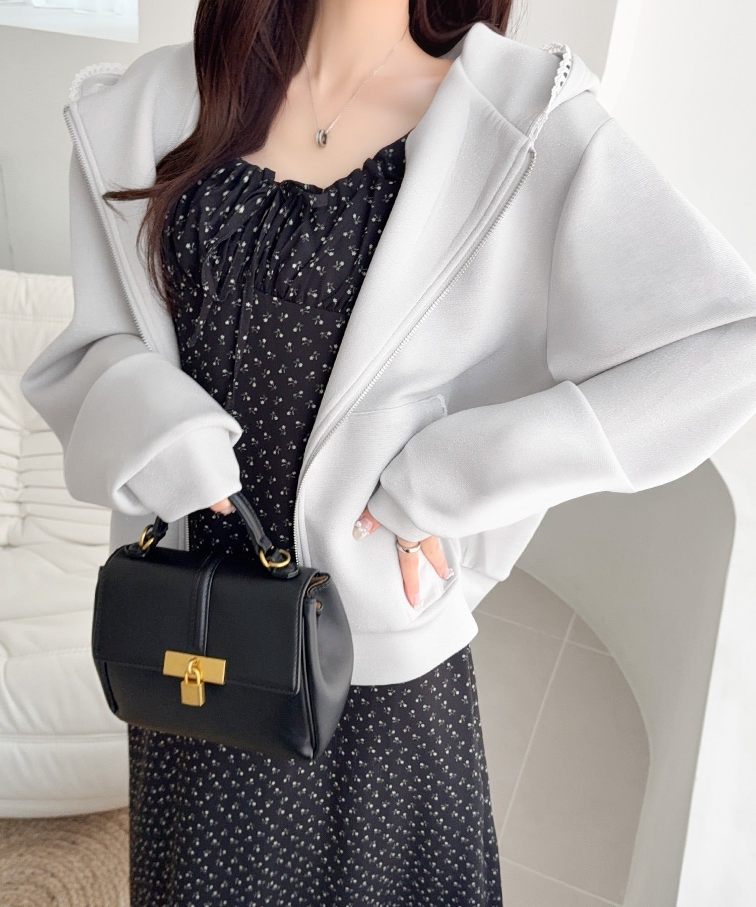 ・大きめのフロントポケットで大人可愛さ◎