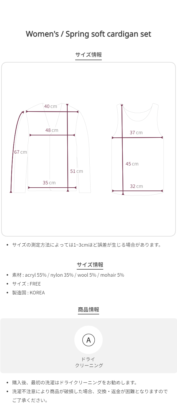 春の始まりを思わせるやわらかなカラーが魅力の「Spring soft cardigan set」です。