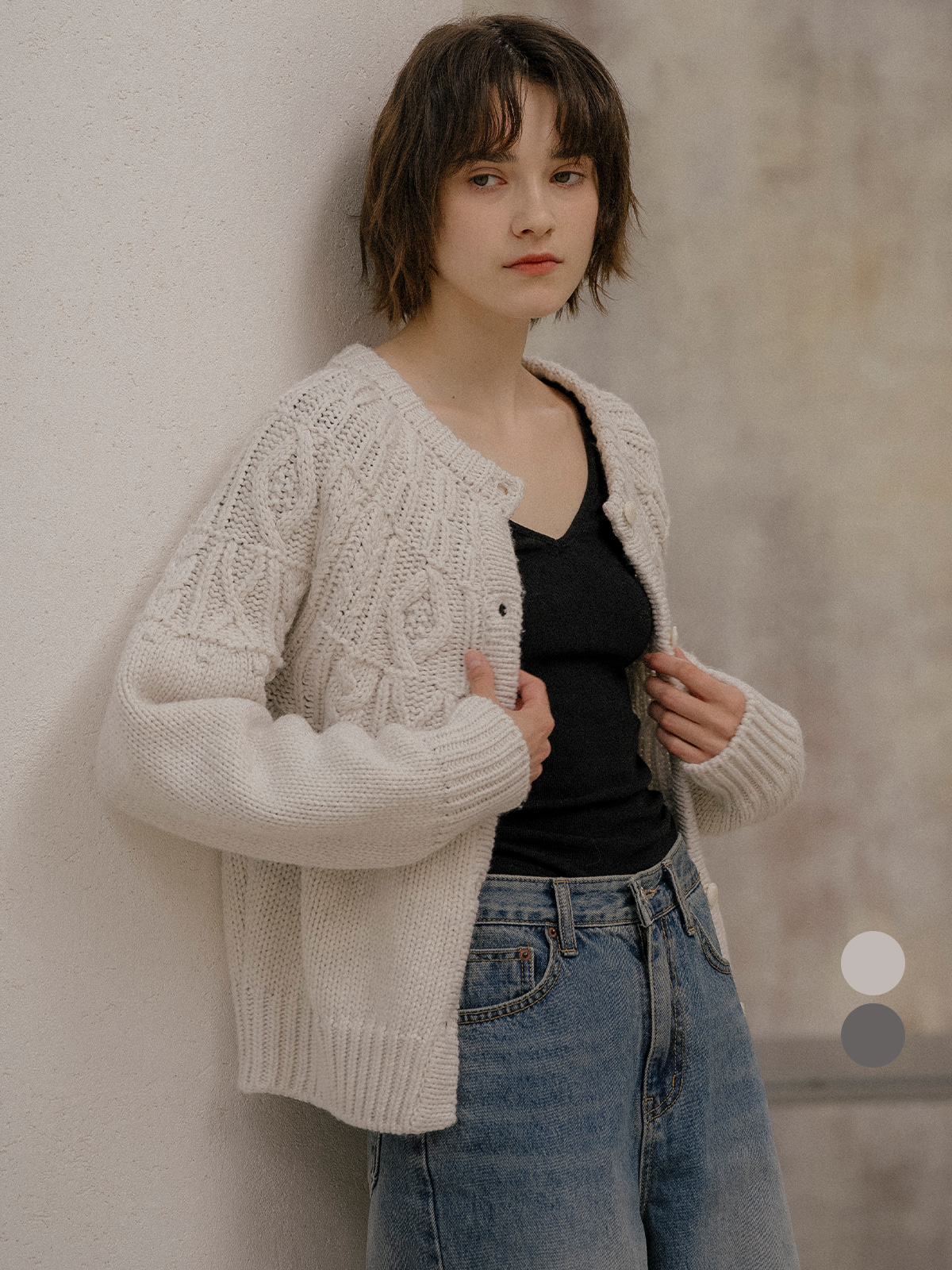 Raglan cable knit cardigan [FRFA03CD07]_2color