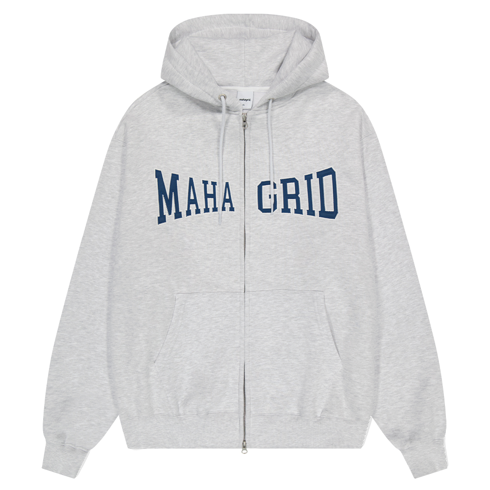 APPLIQUE ZIP UP HOODIE[LIGHT GREY]