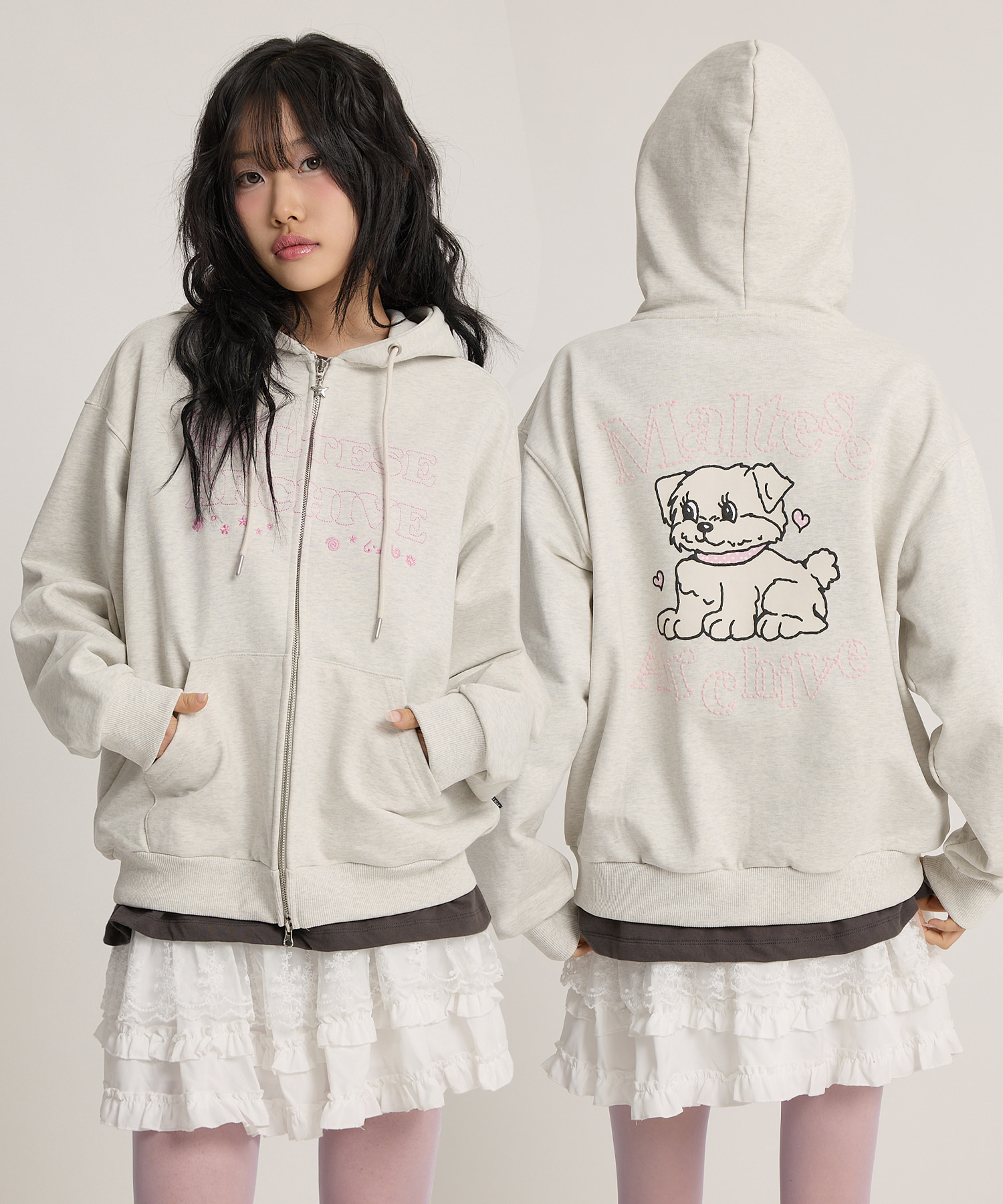 Vintage GOOREUM Archive Stitch Hood Zip-Up OATMEAL