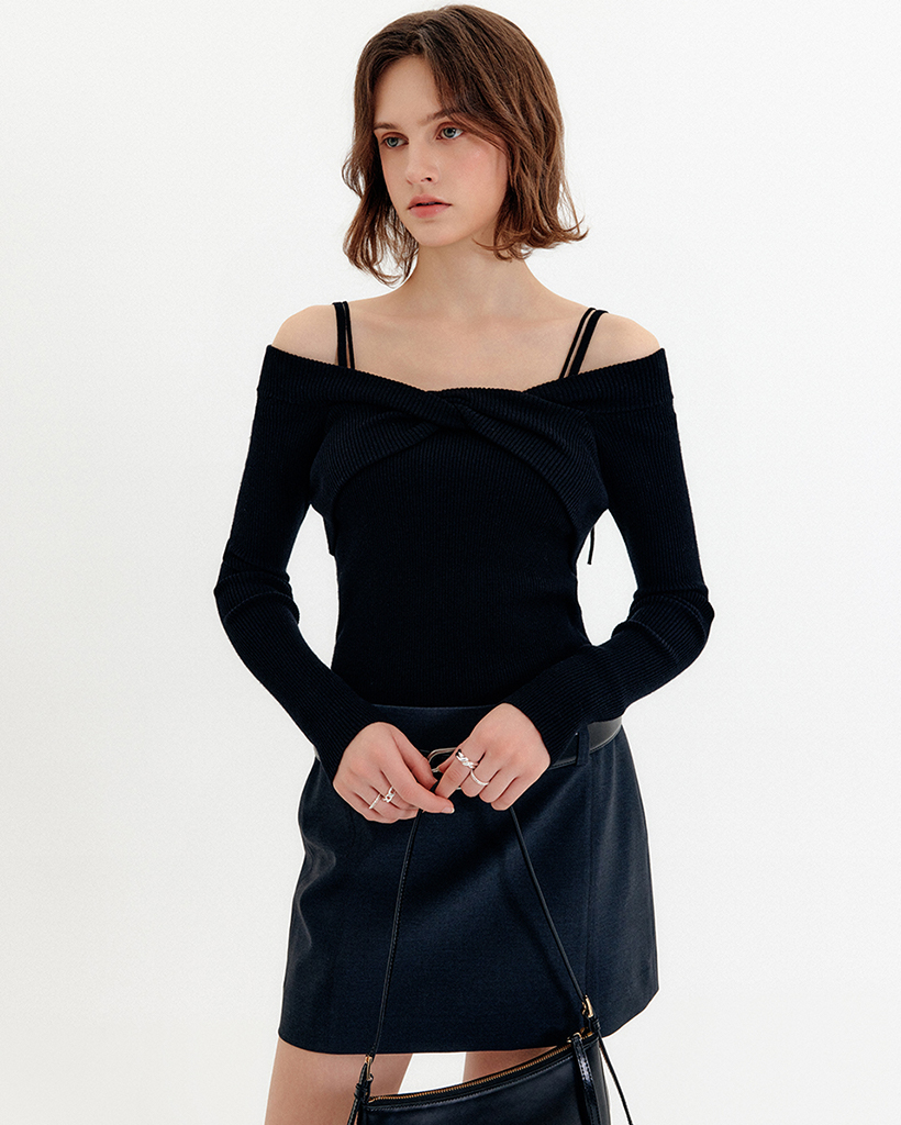 LINA STRING OFF SHOULDER KNIT_BLACK