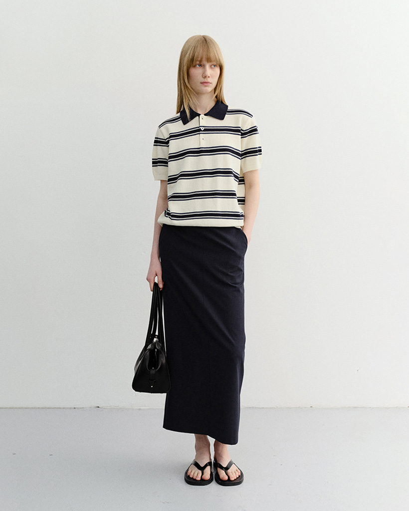 UNISEX MULTI STRIPED POLO KNIT CREAM NAVY_UDSW6B122CR