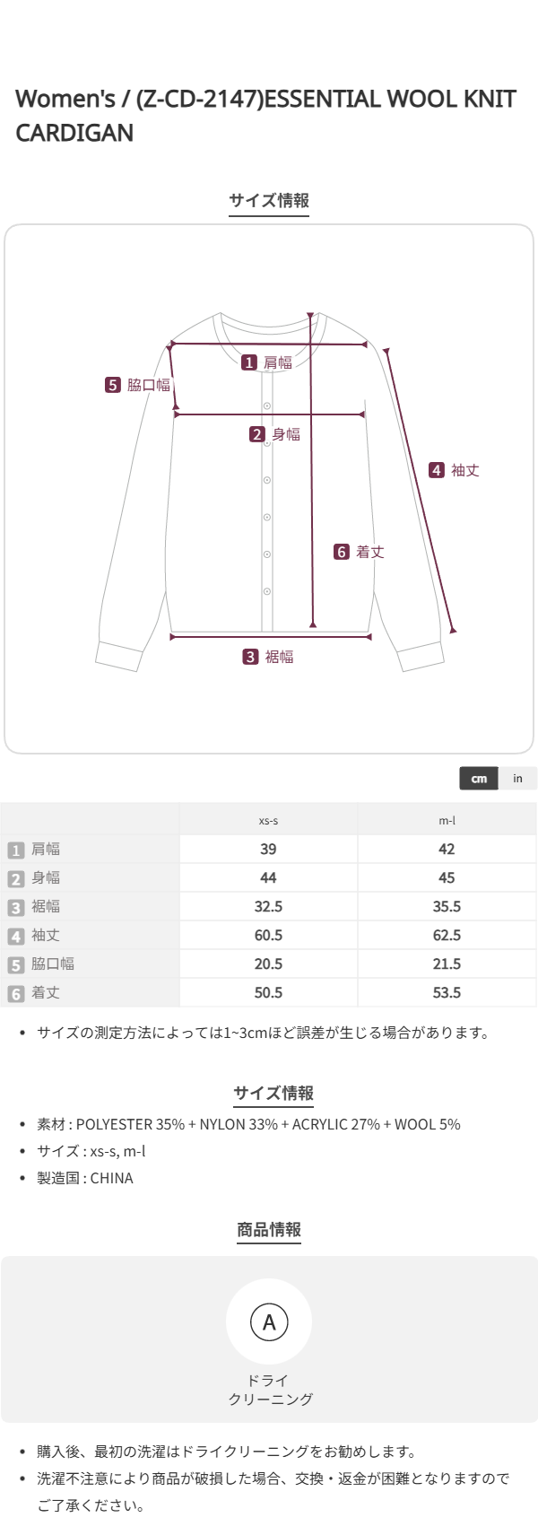 (Z-CD-2147)ESSENTIAL WOOL KNIT CARDIGAN