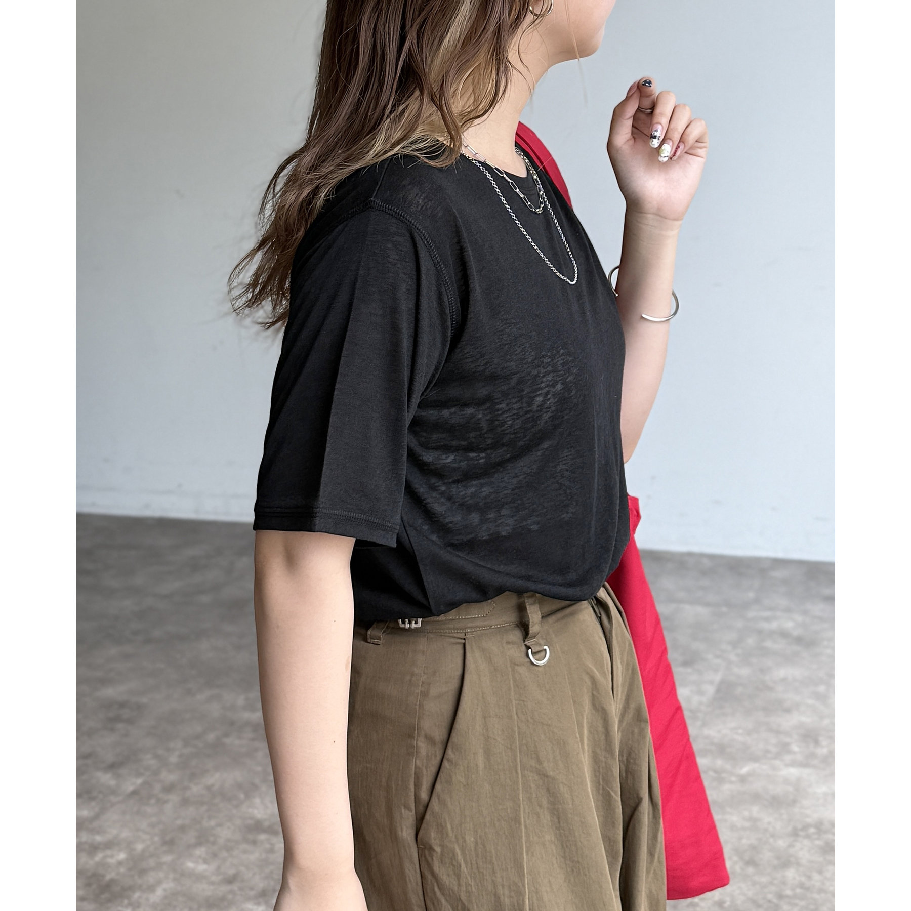 抜け感をプラス!トレンド感あふれるシアーTシャツ