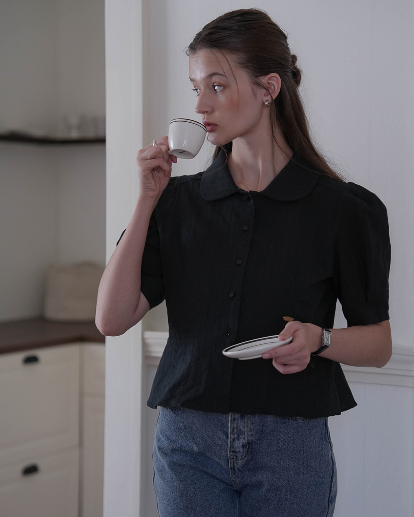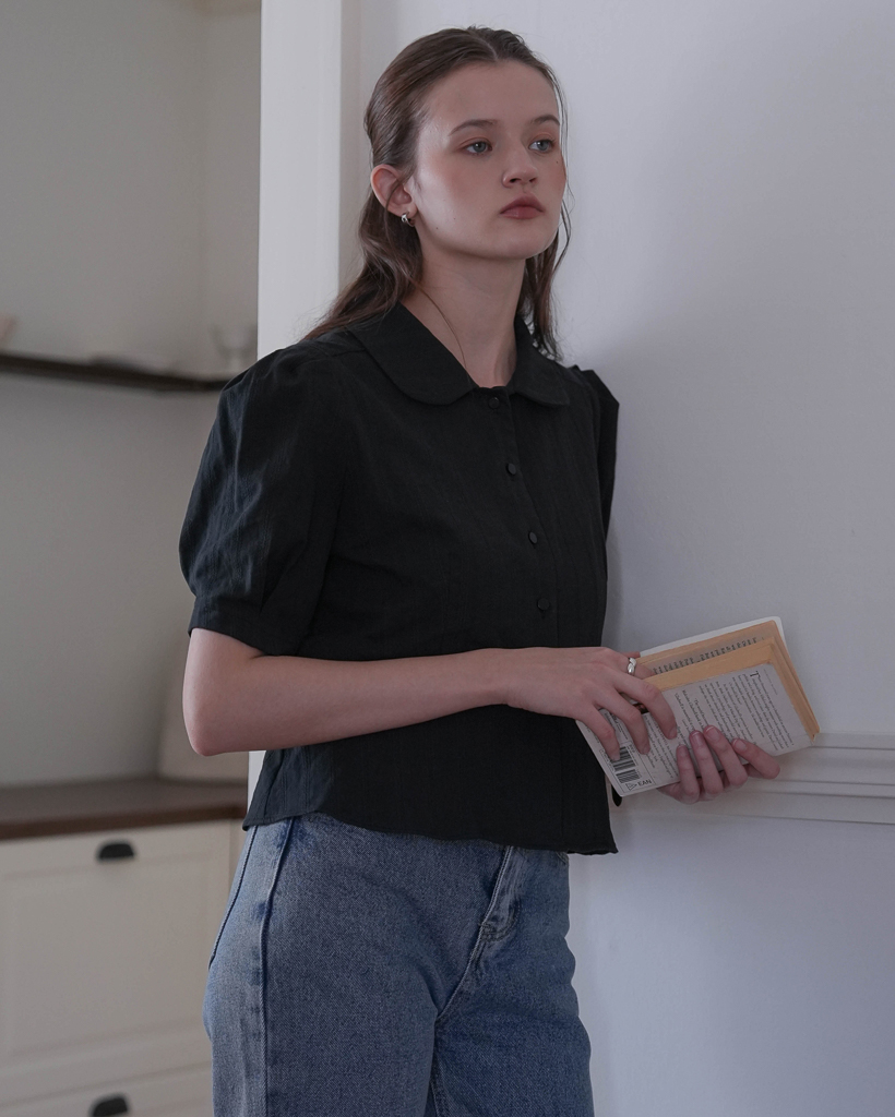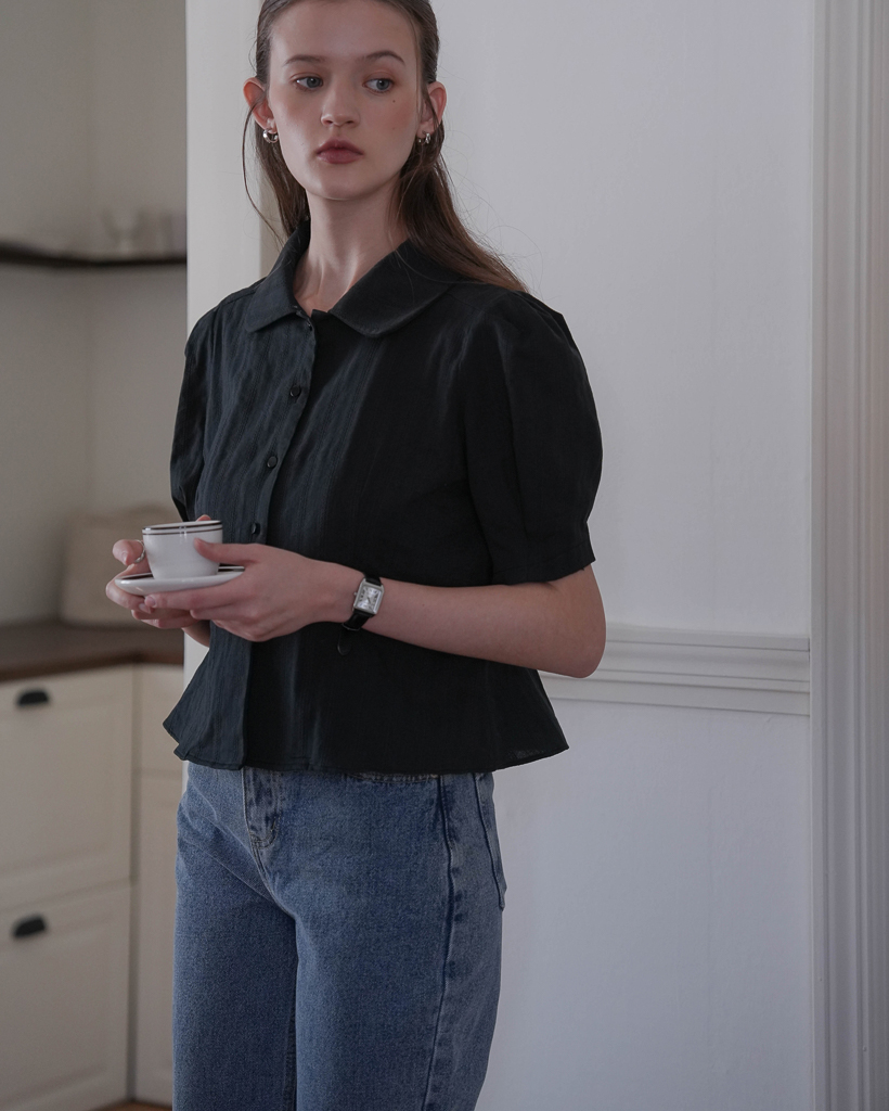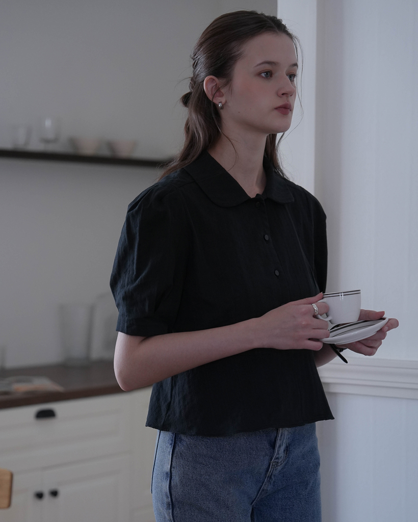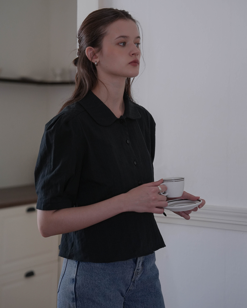 Round Collar Jacquard Blouse [Black]