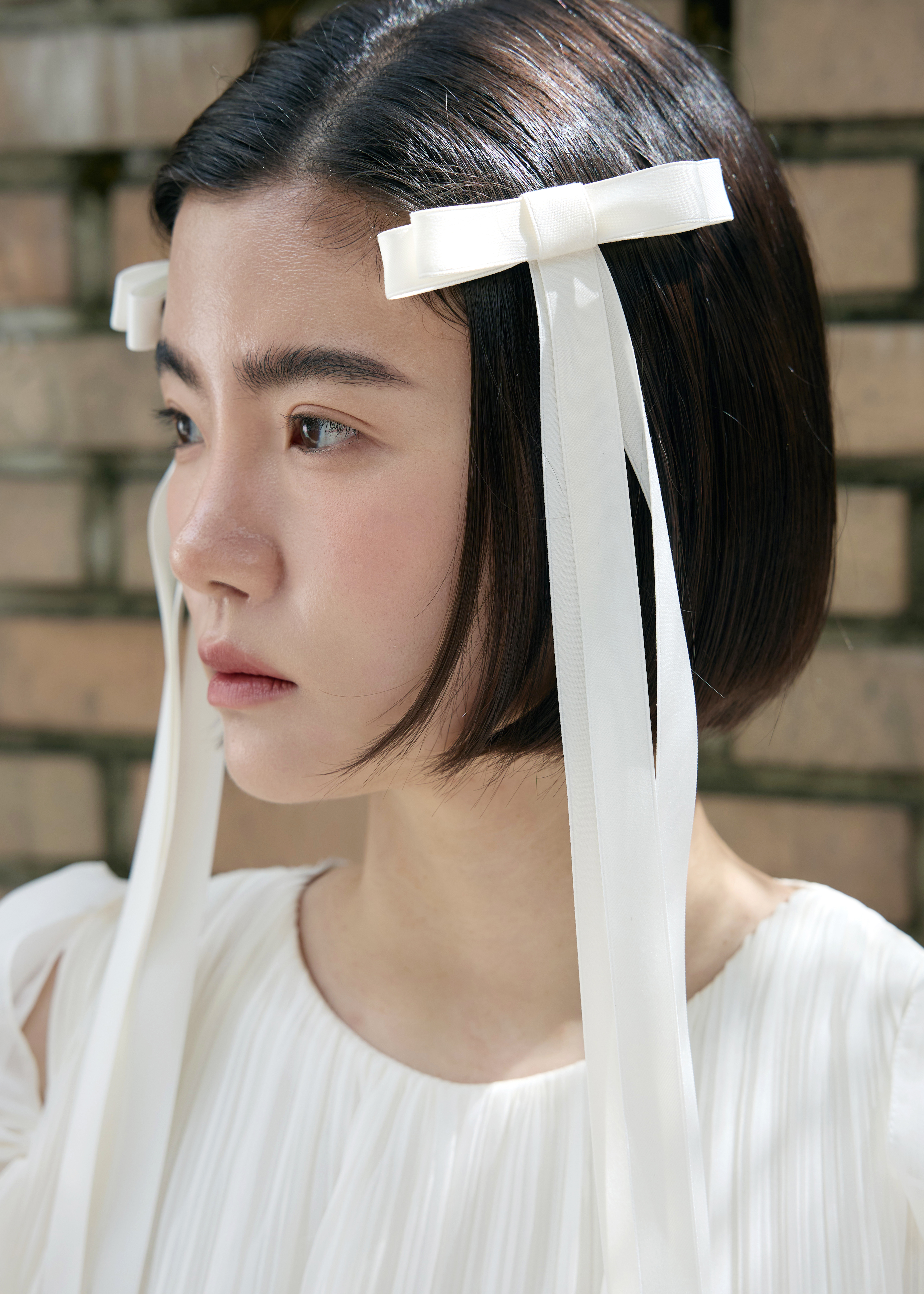 Poé Romance Ribbon Hair Pin (LIGHT IVORY/BLACK)