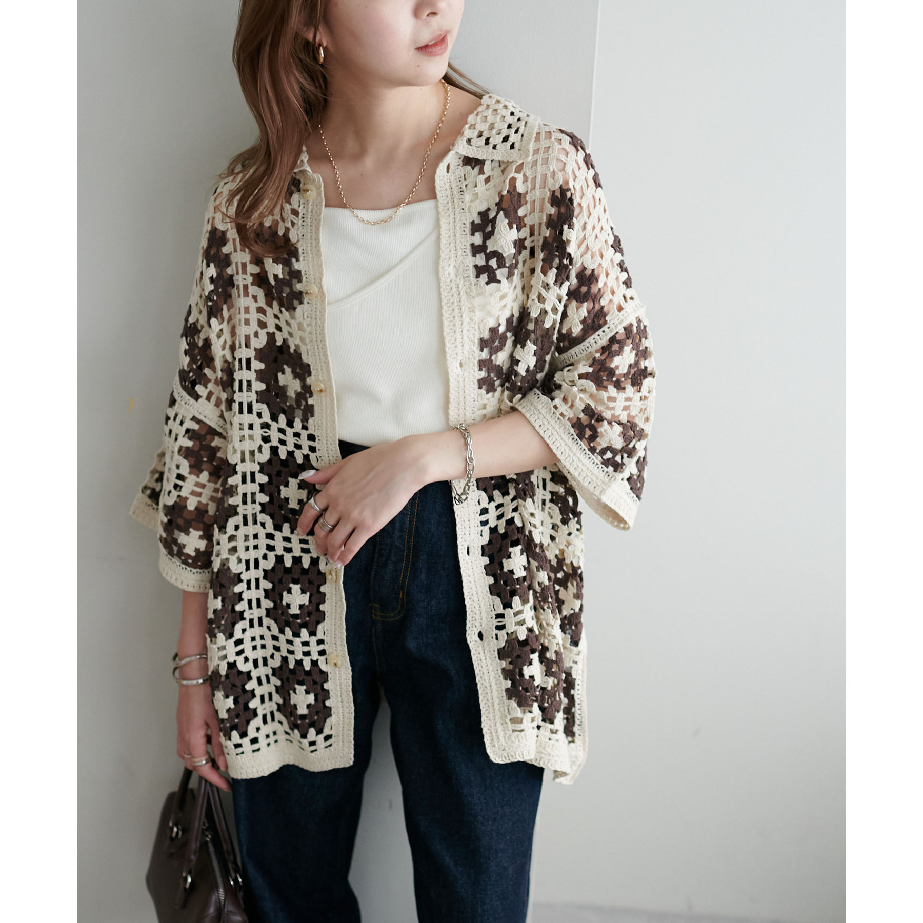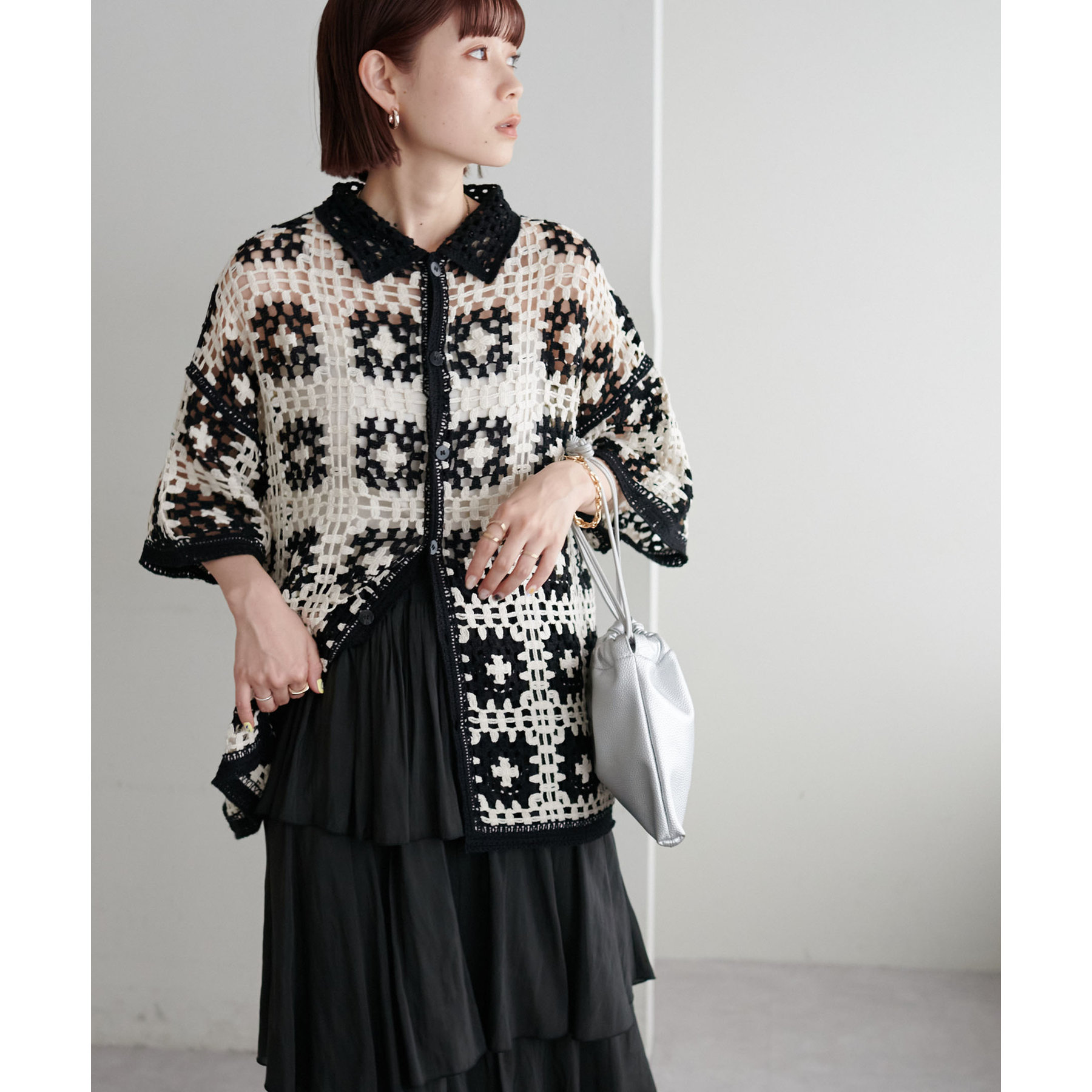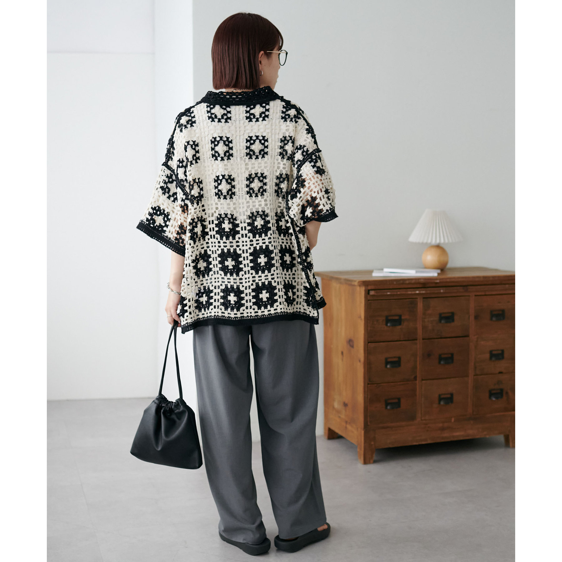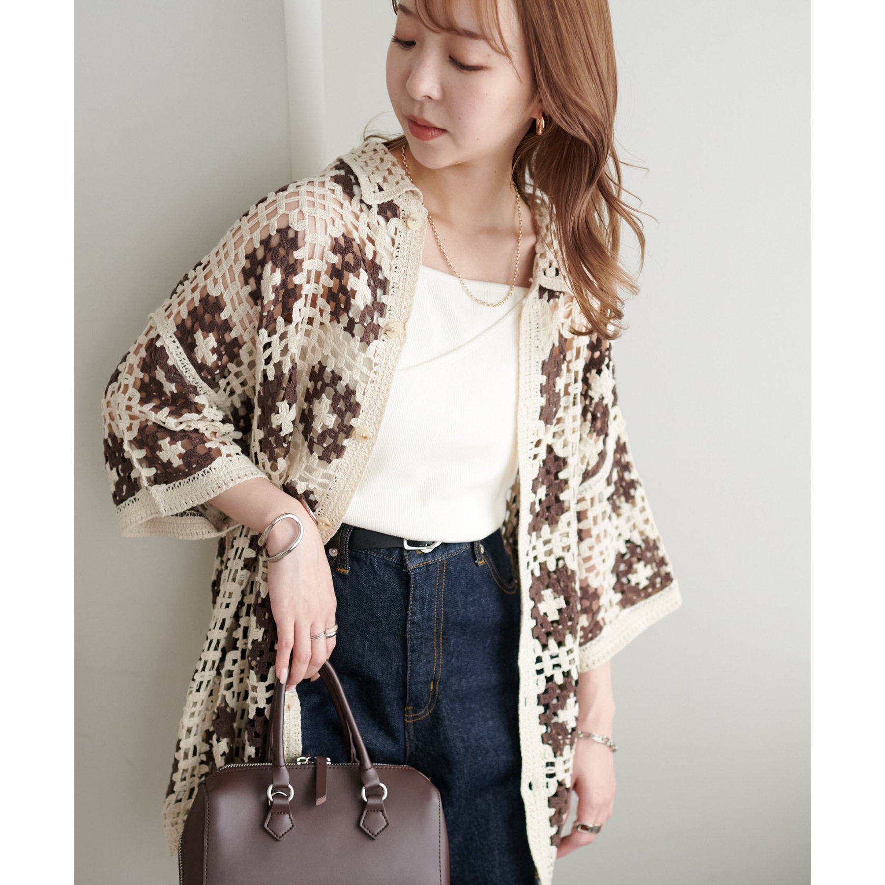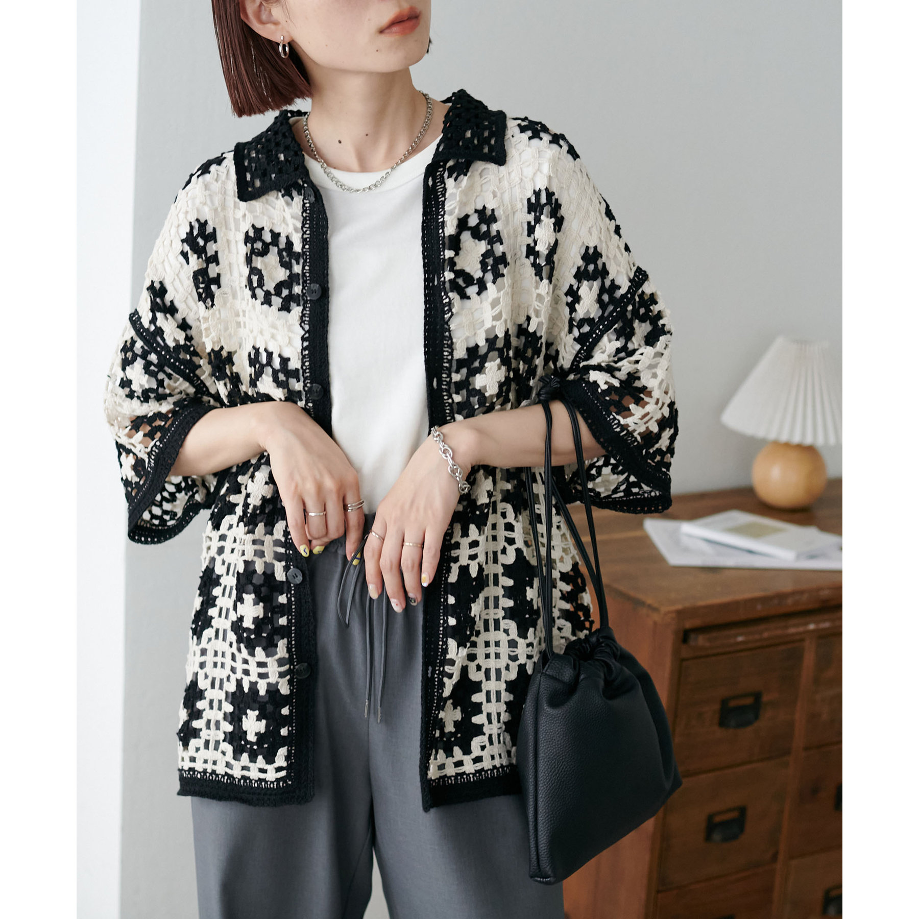 大きめの柄がコーデのポイントに!クロシェ網なので、通気性もあり涼しく着て頂けます〇