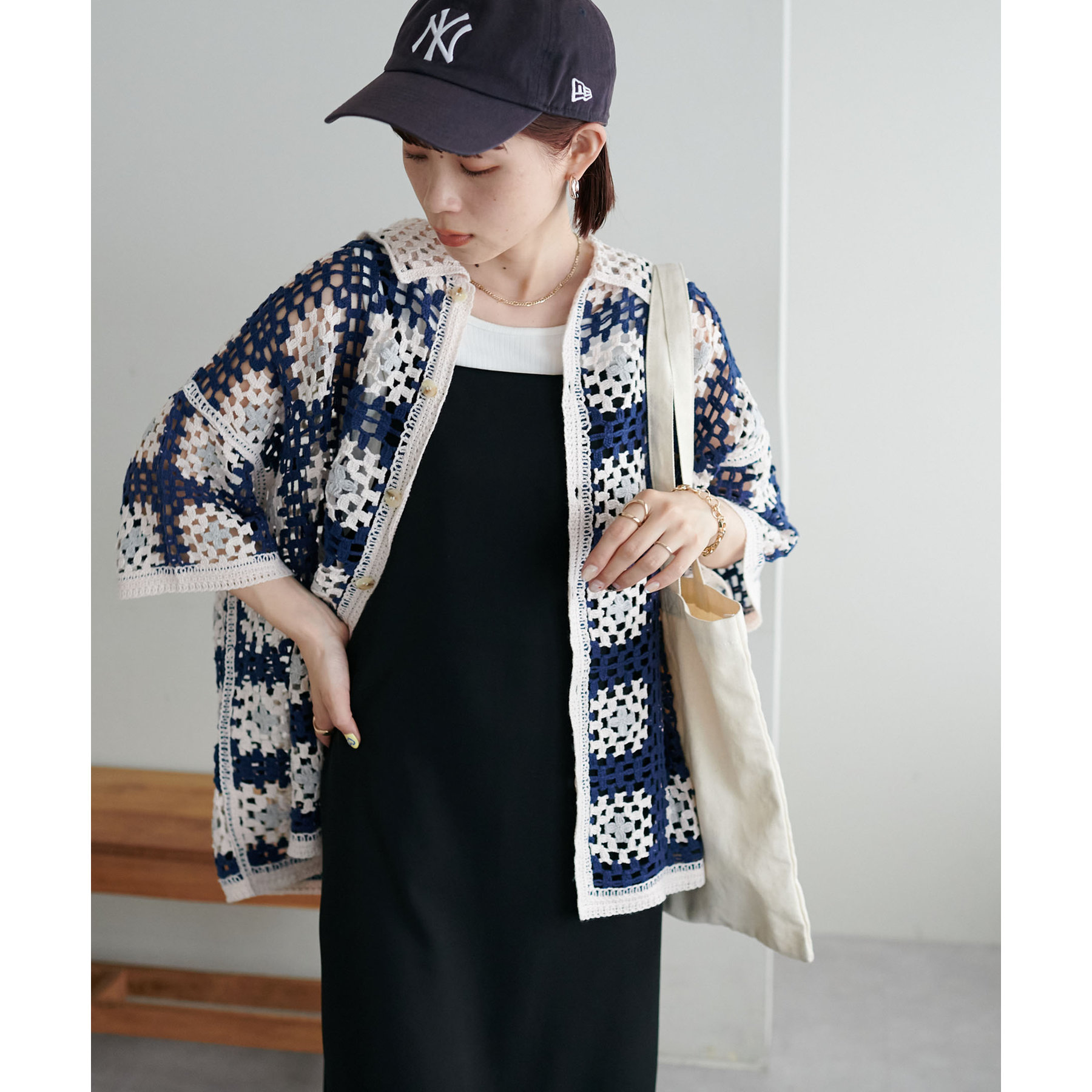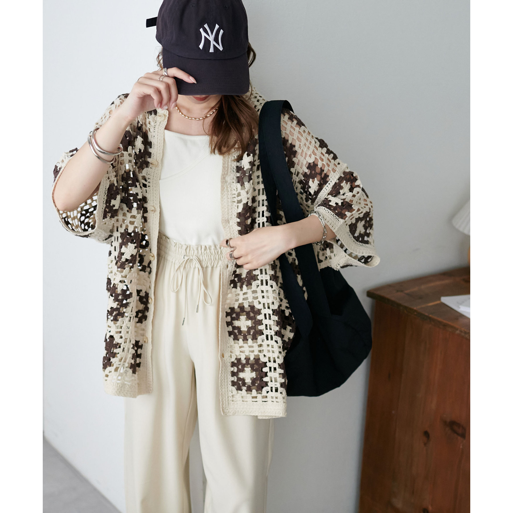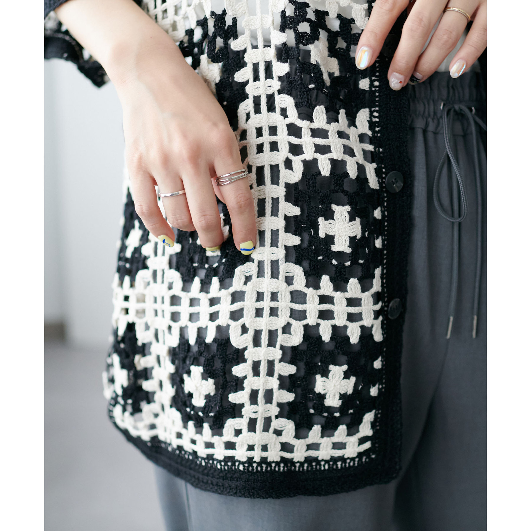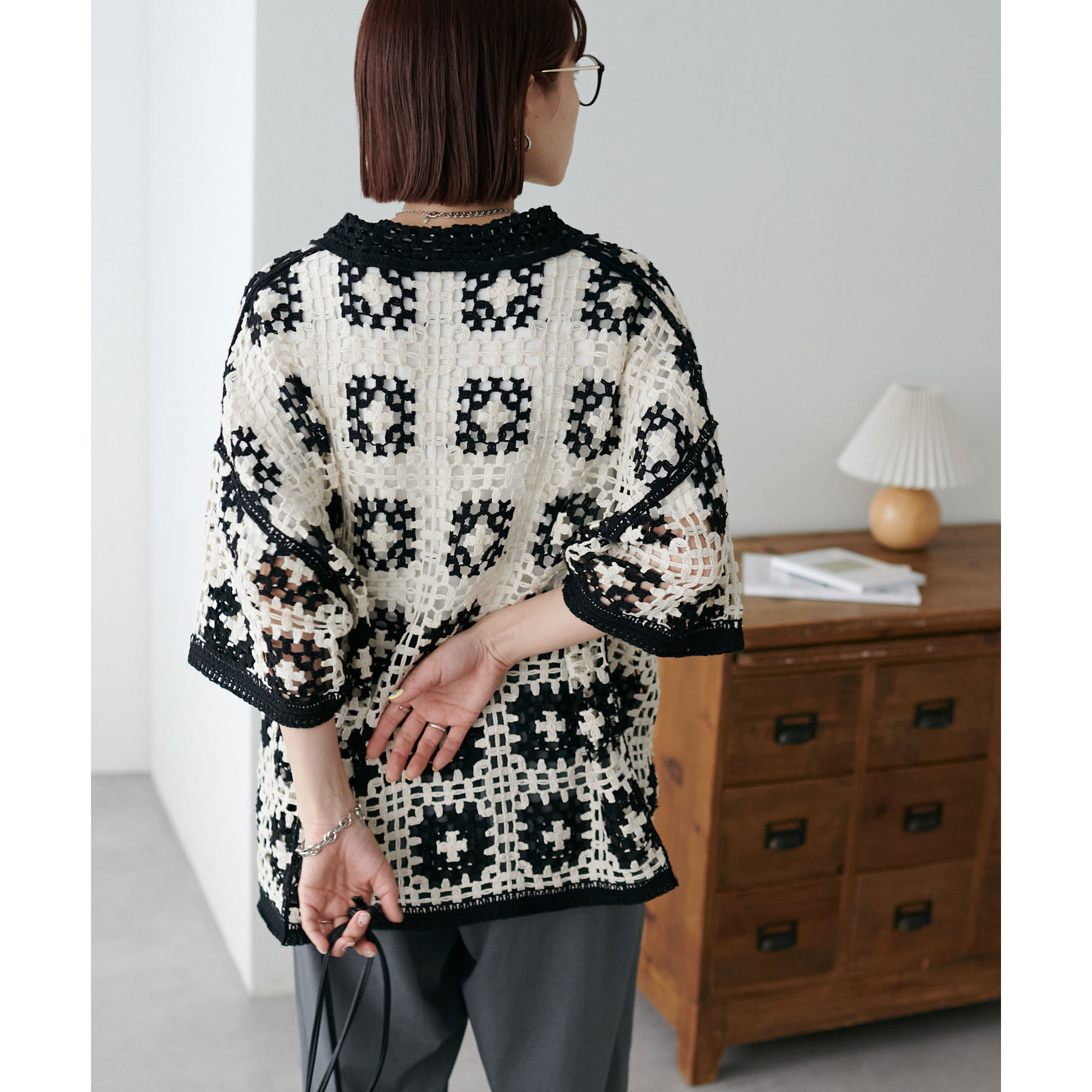 大きめの柄がコーデのポイントに!クロシェ網なので、通気性もあり涼しく着て頂けます〇