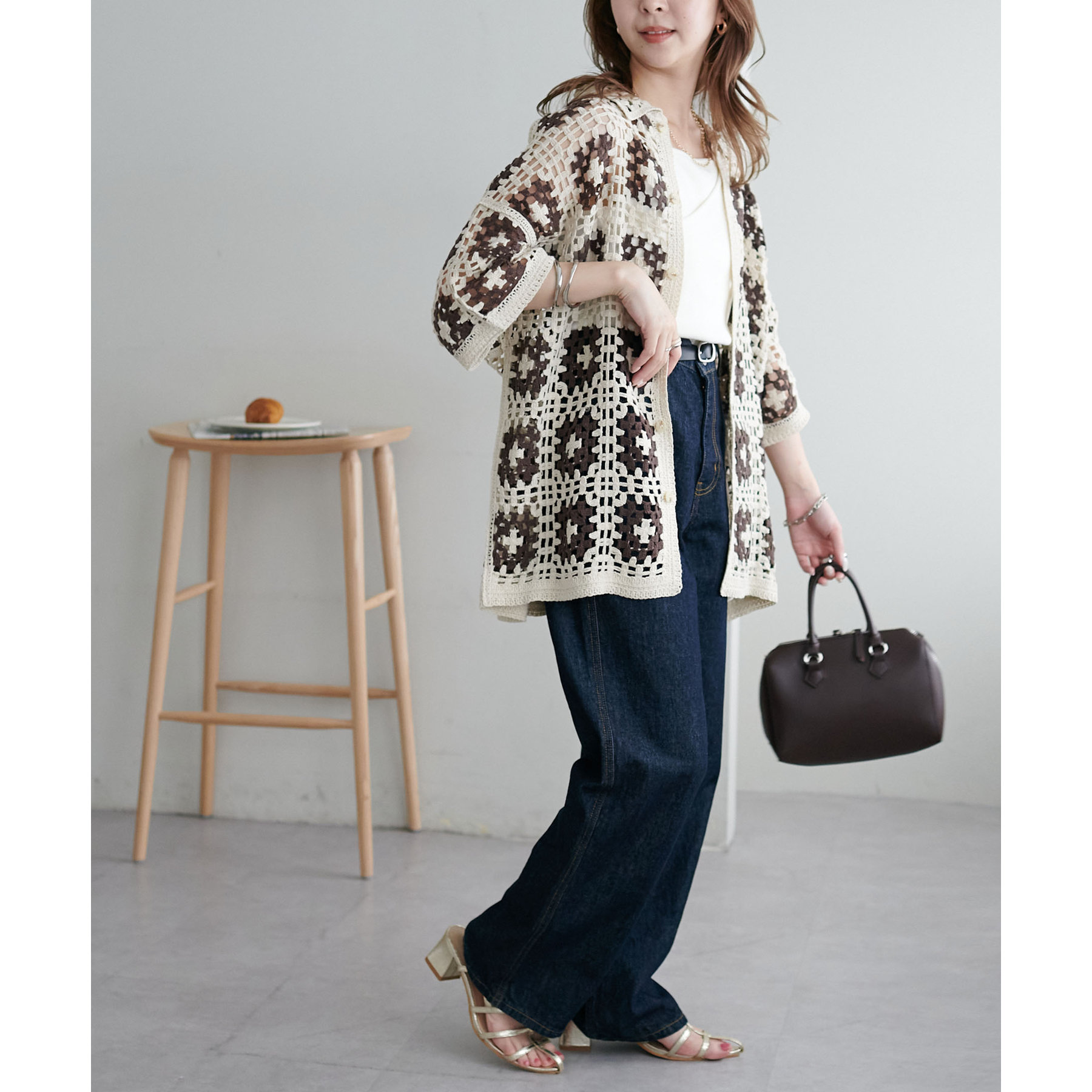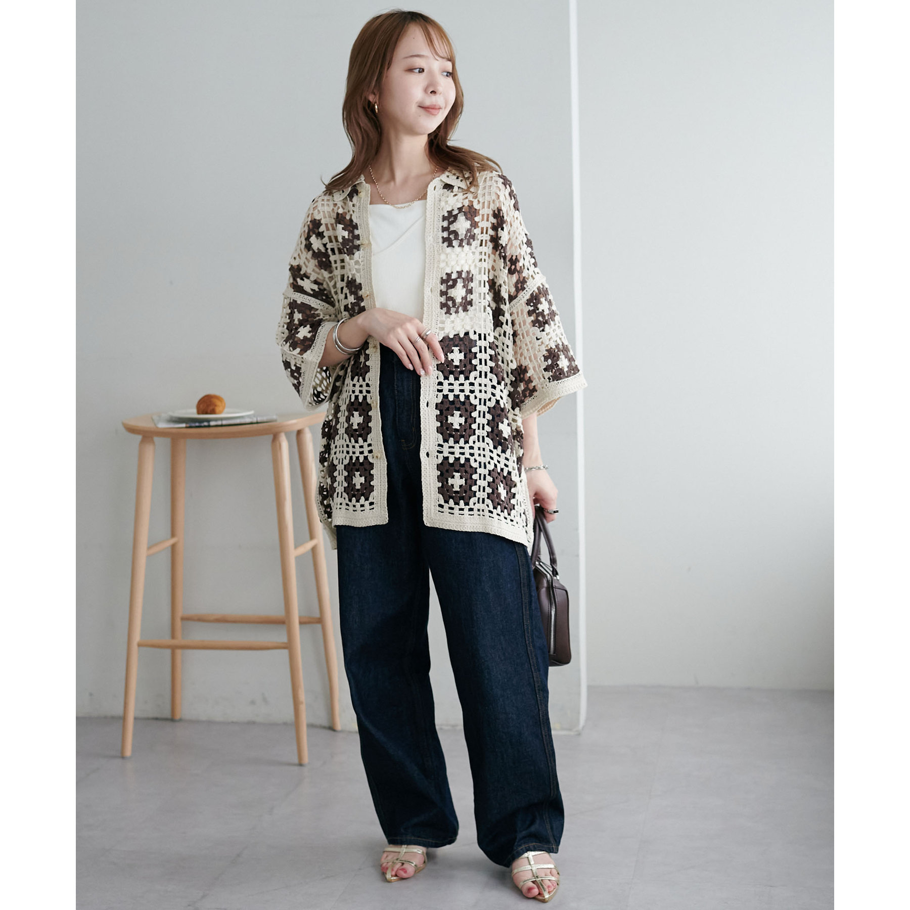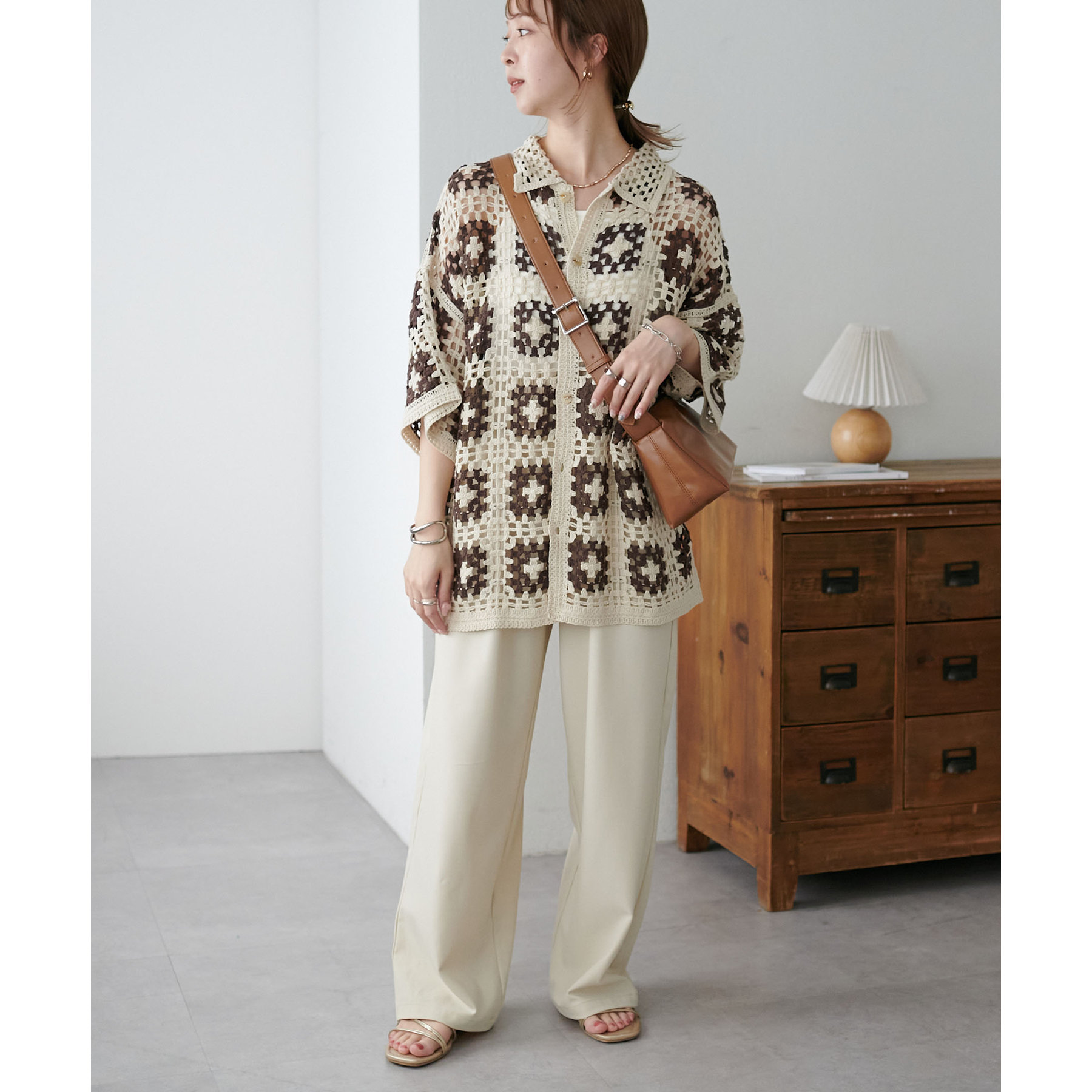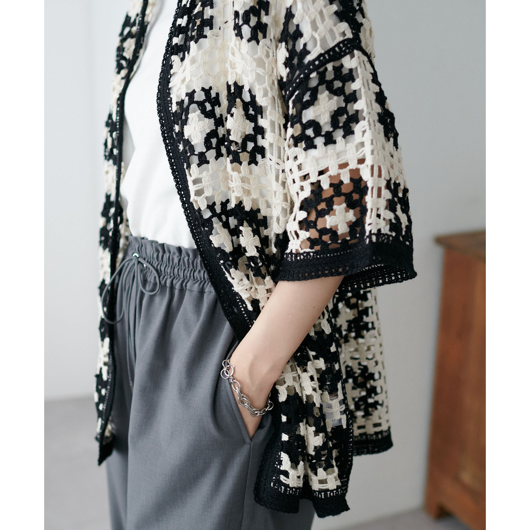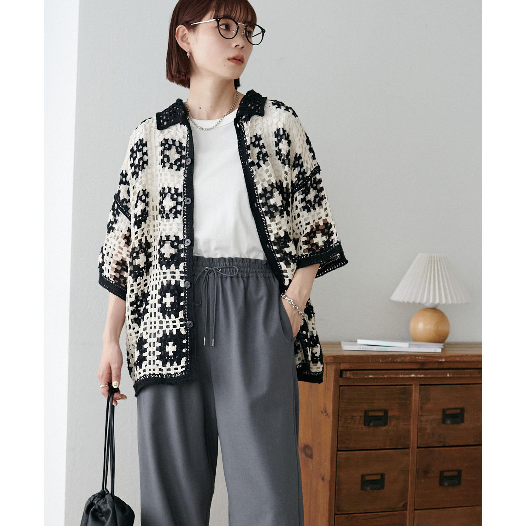 大きめの柄がコーデのポイントに!クロシェ網なので、通気性もあり涼しく着て頂けます〇