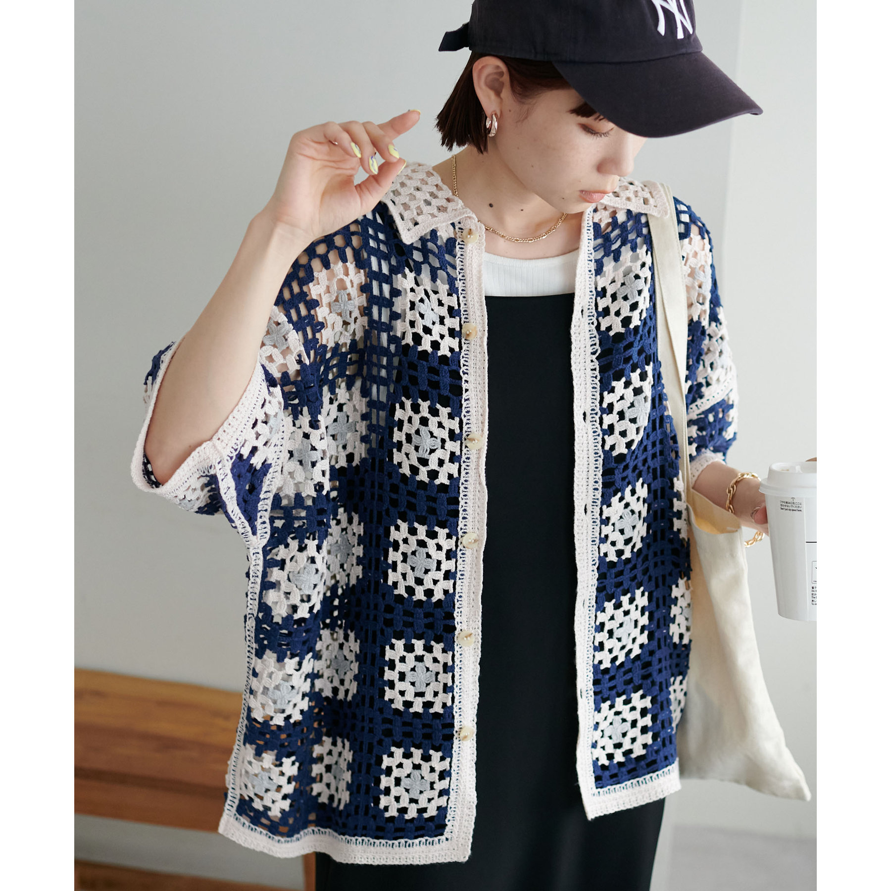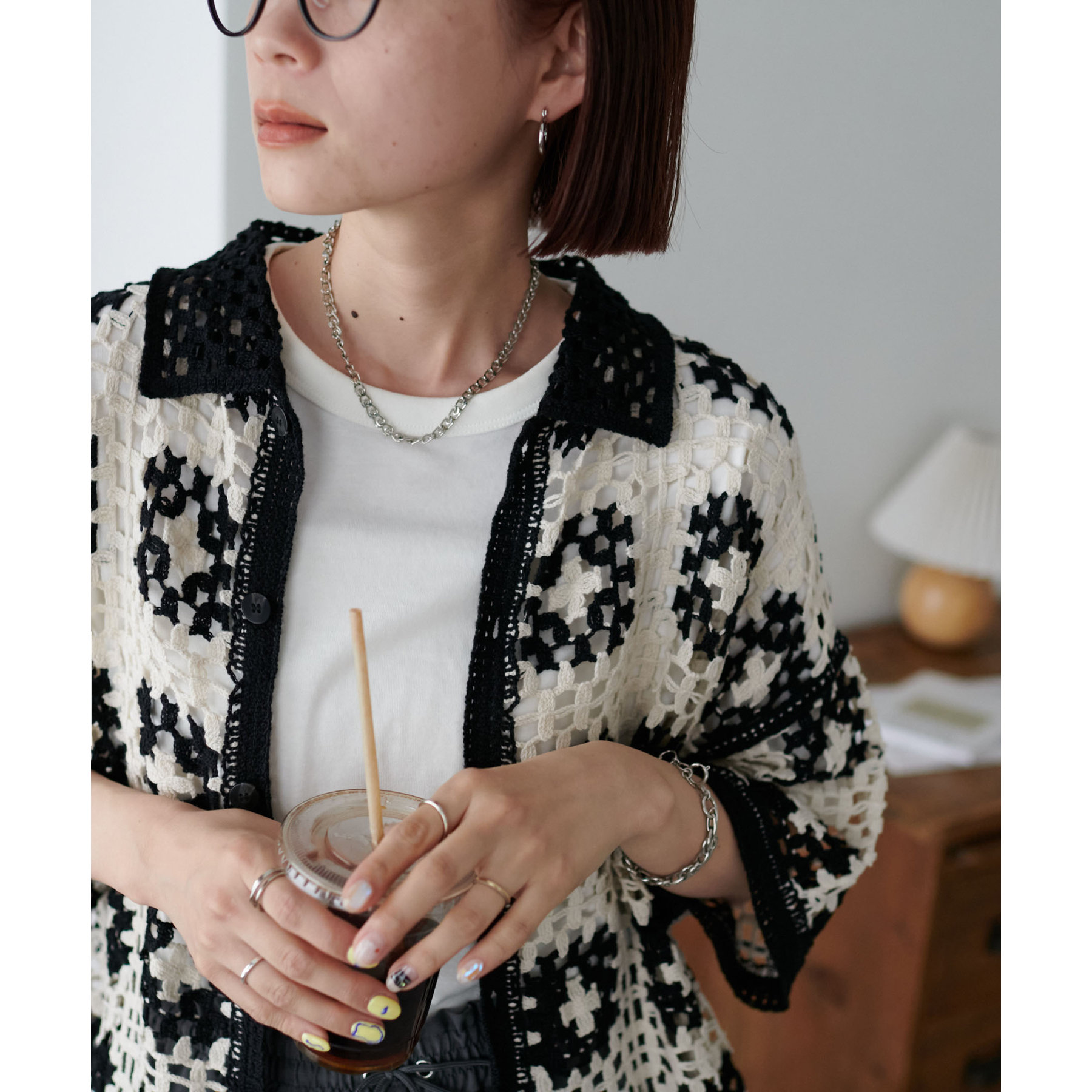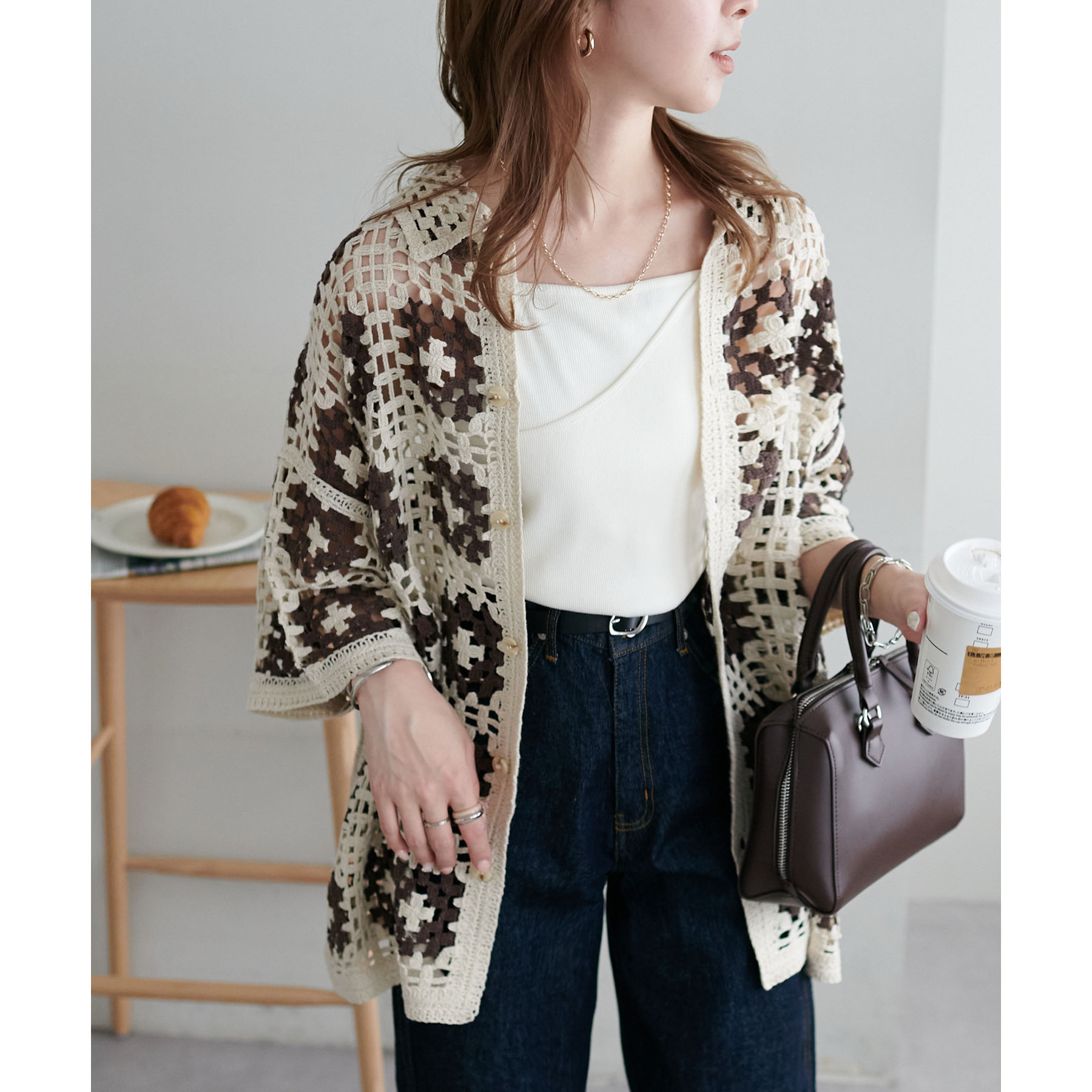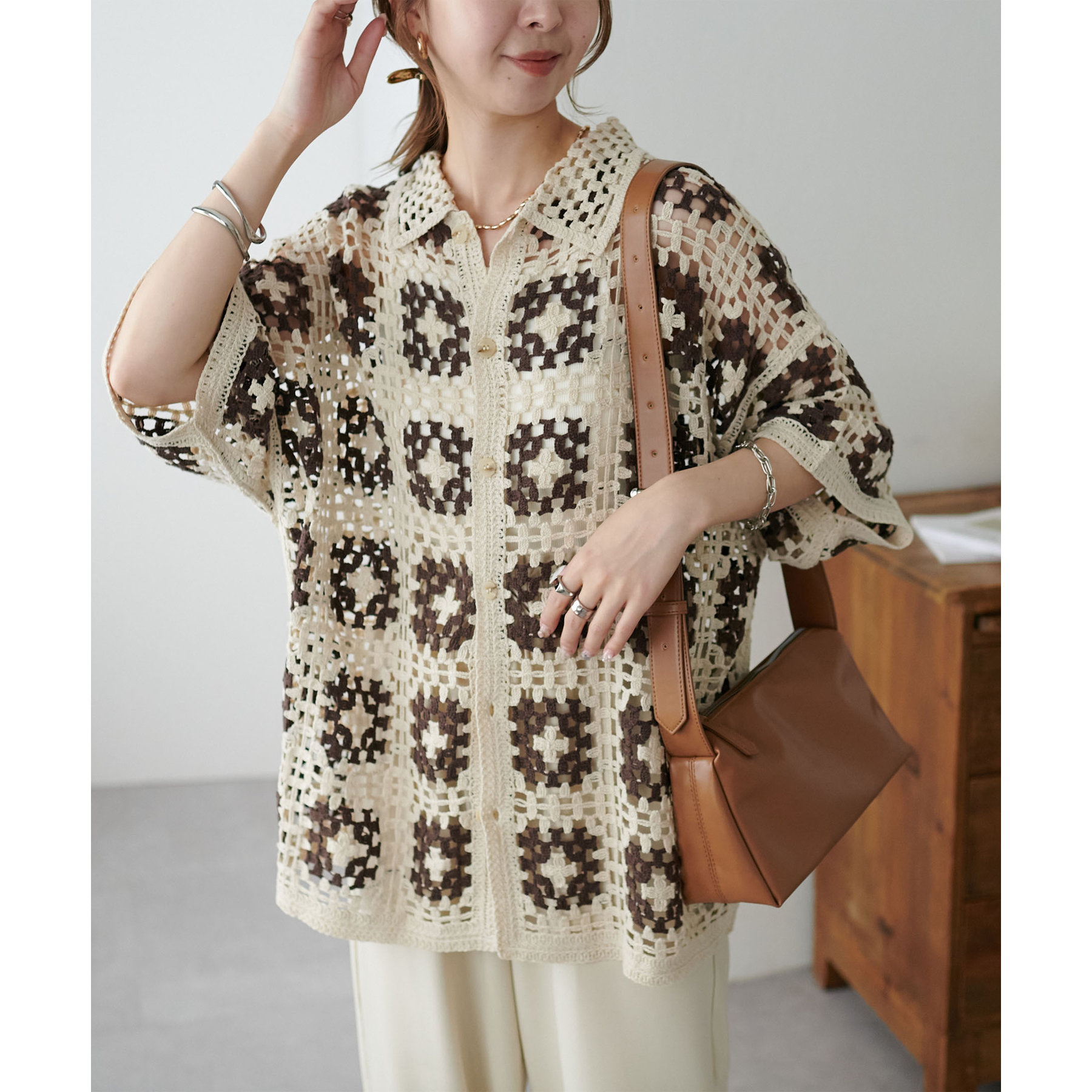 大きめの柄がコーデのポイントに!クロシェ網なので、通気性もあり涼しく着て頂けます〇