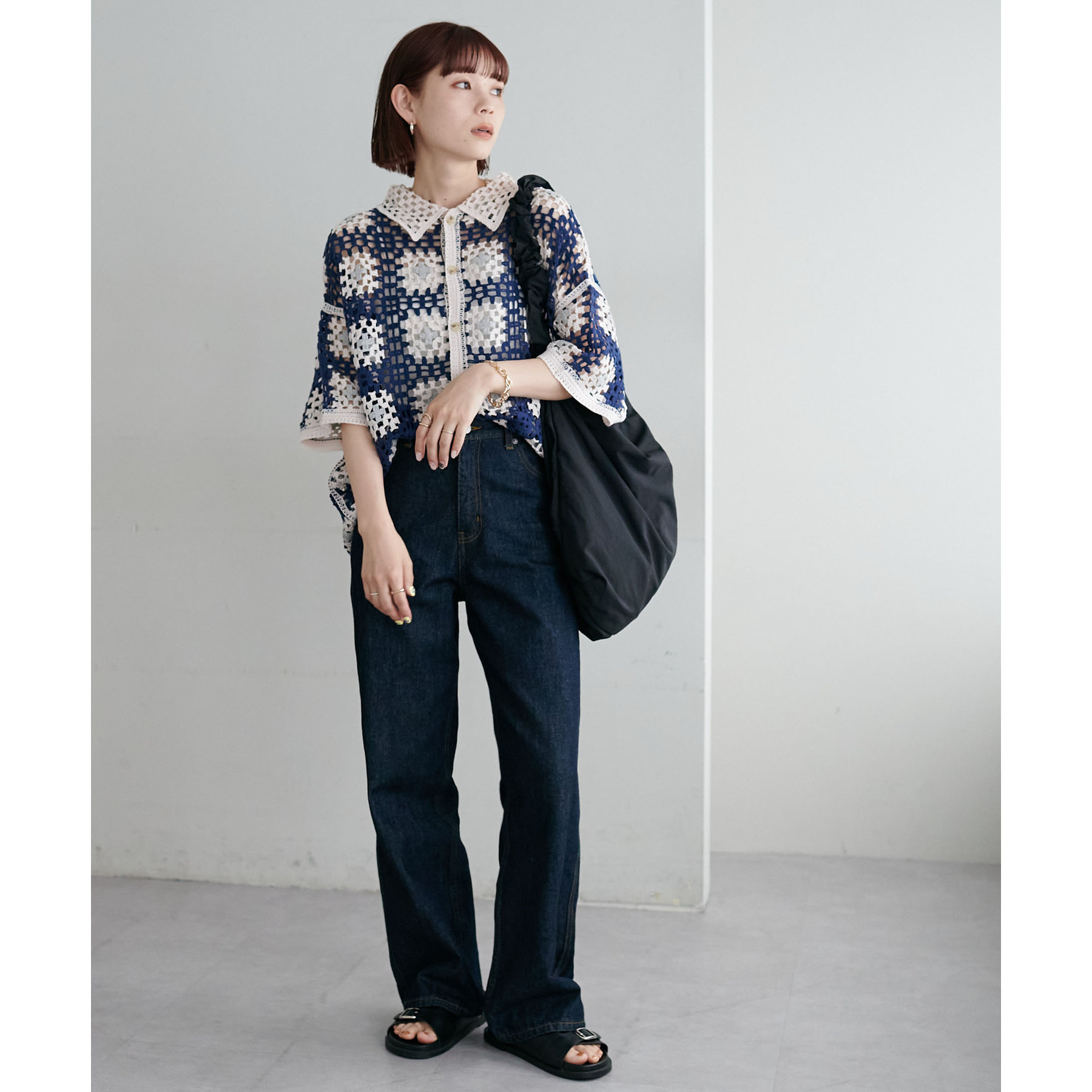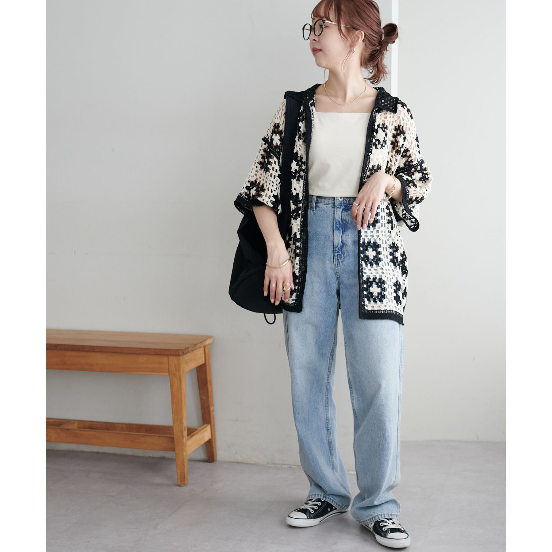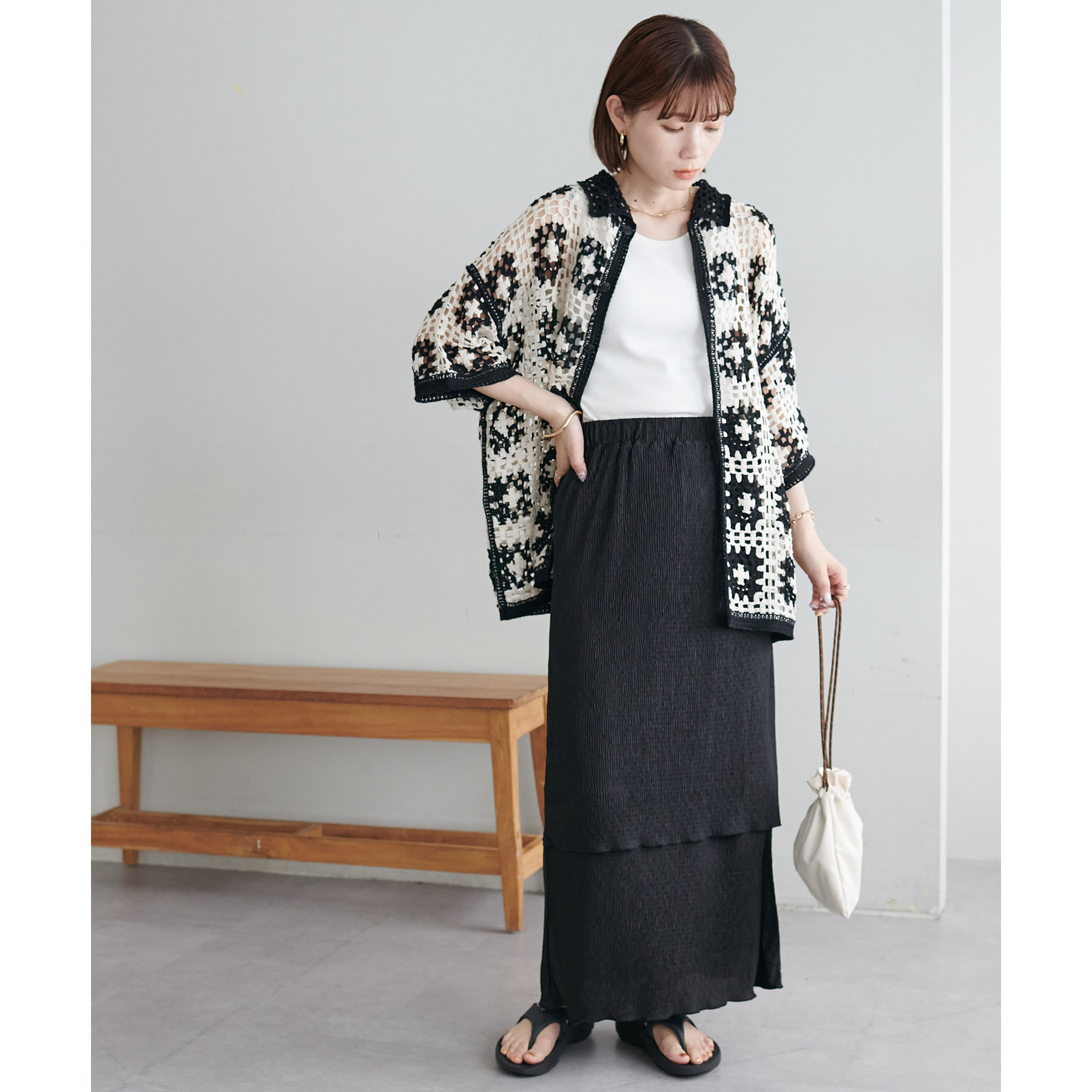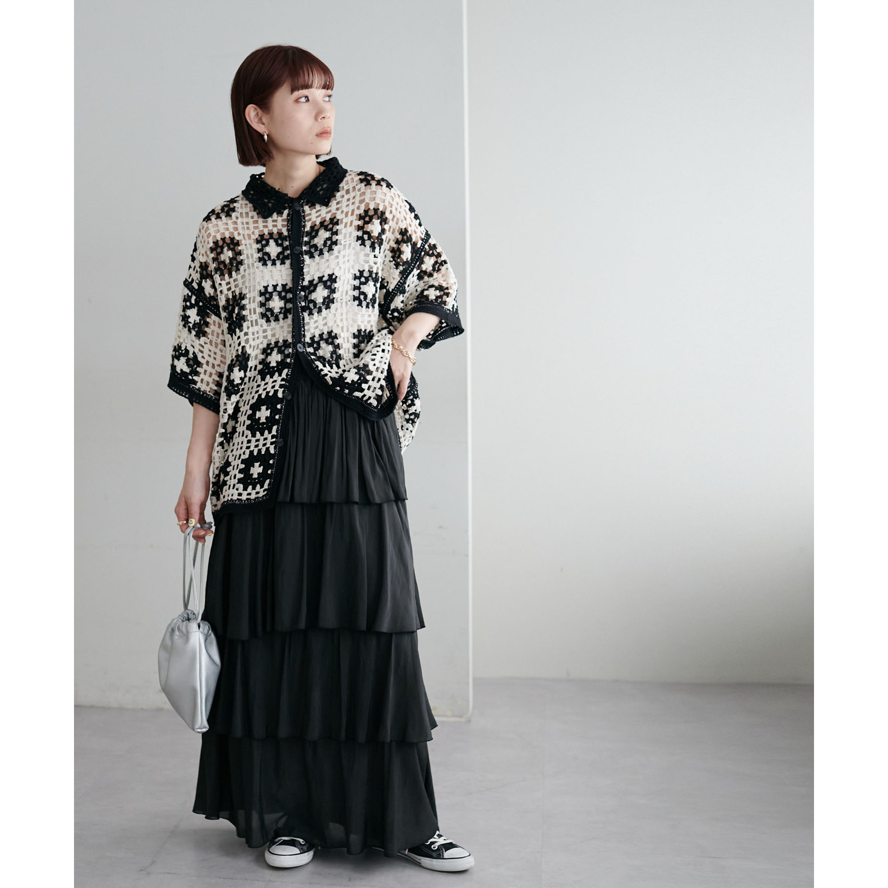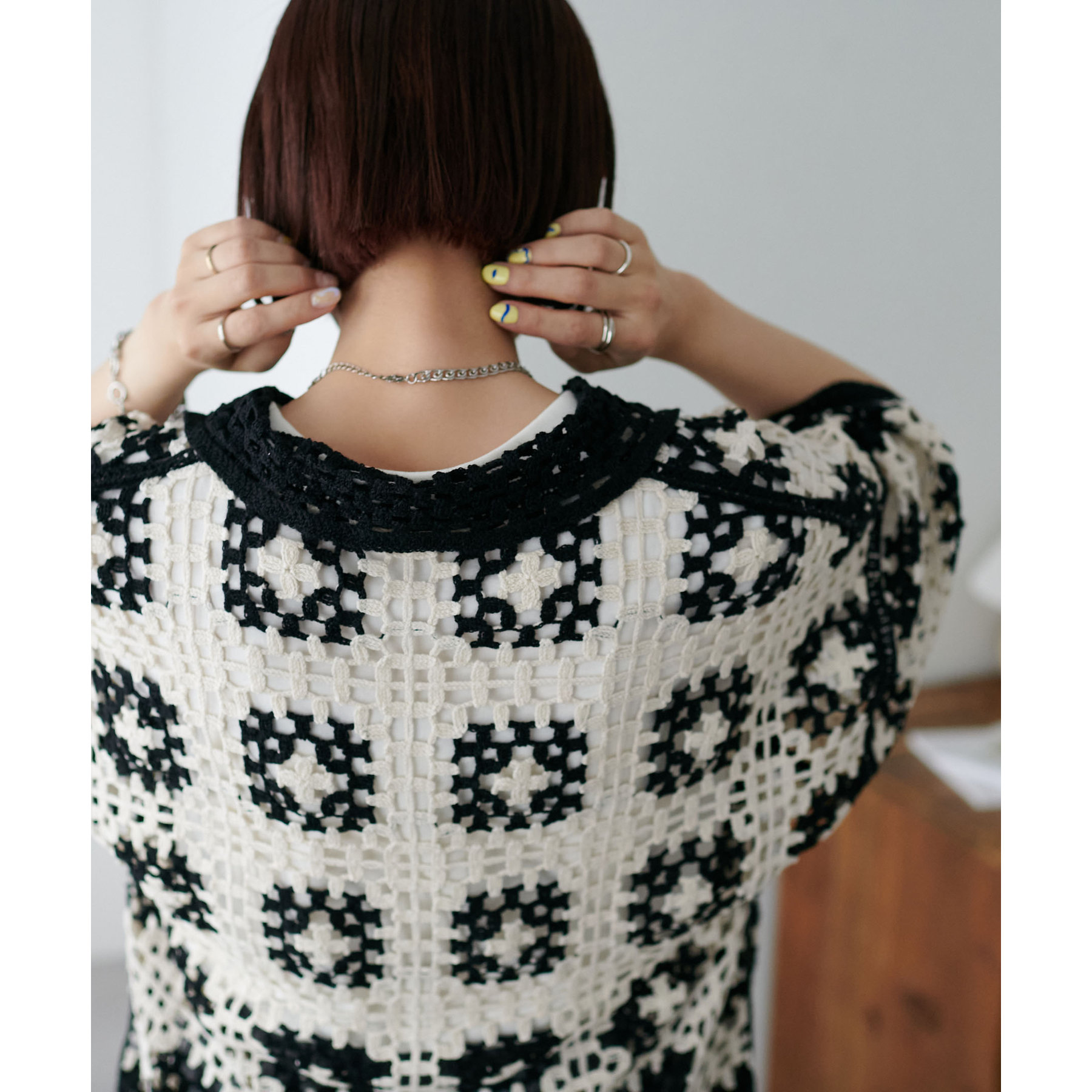 大きめの柄がコーデのポイントに!クロシェ網なので、通気性もあり涼しく着て頂けます〇