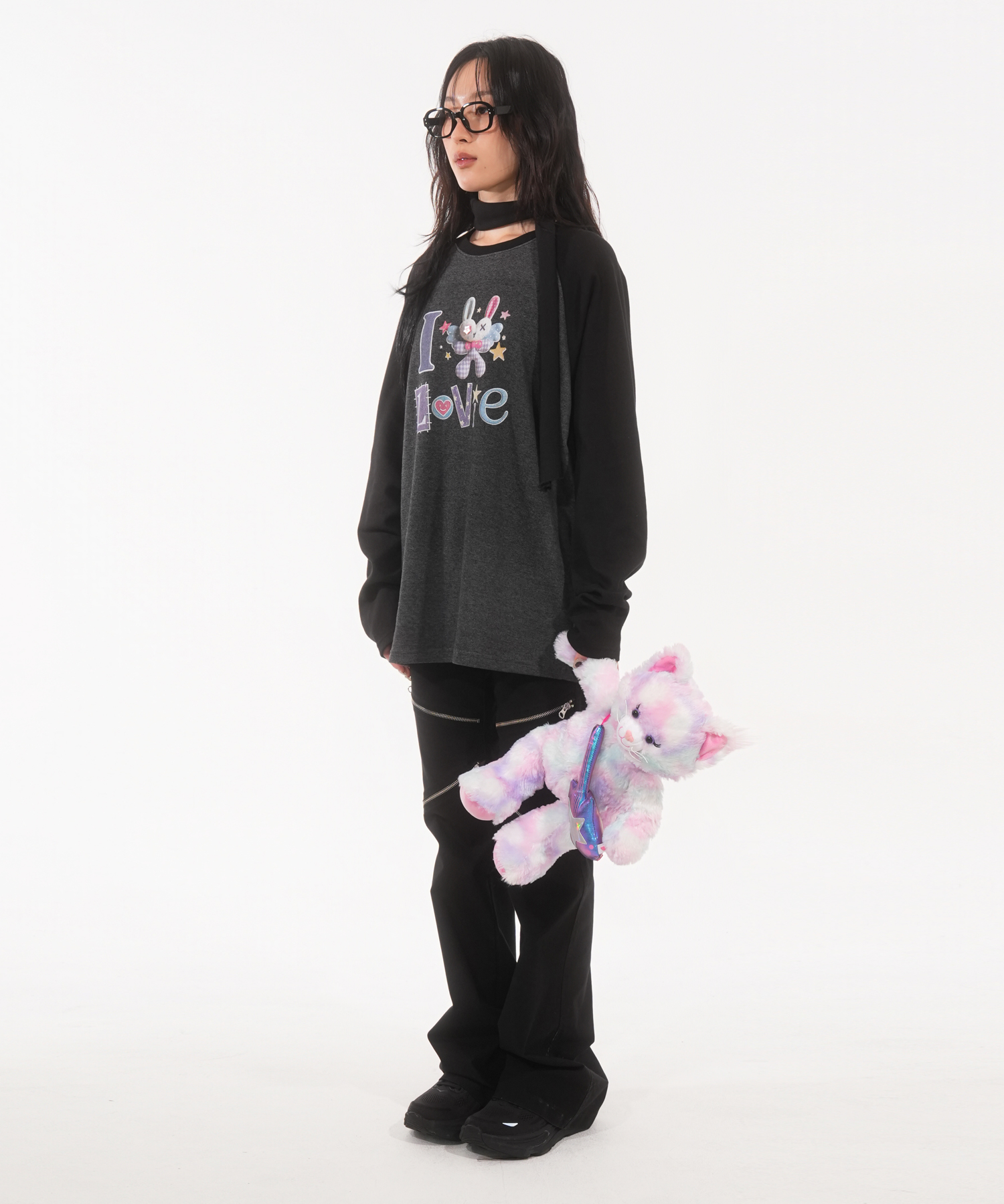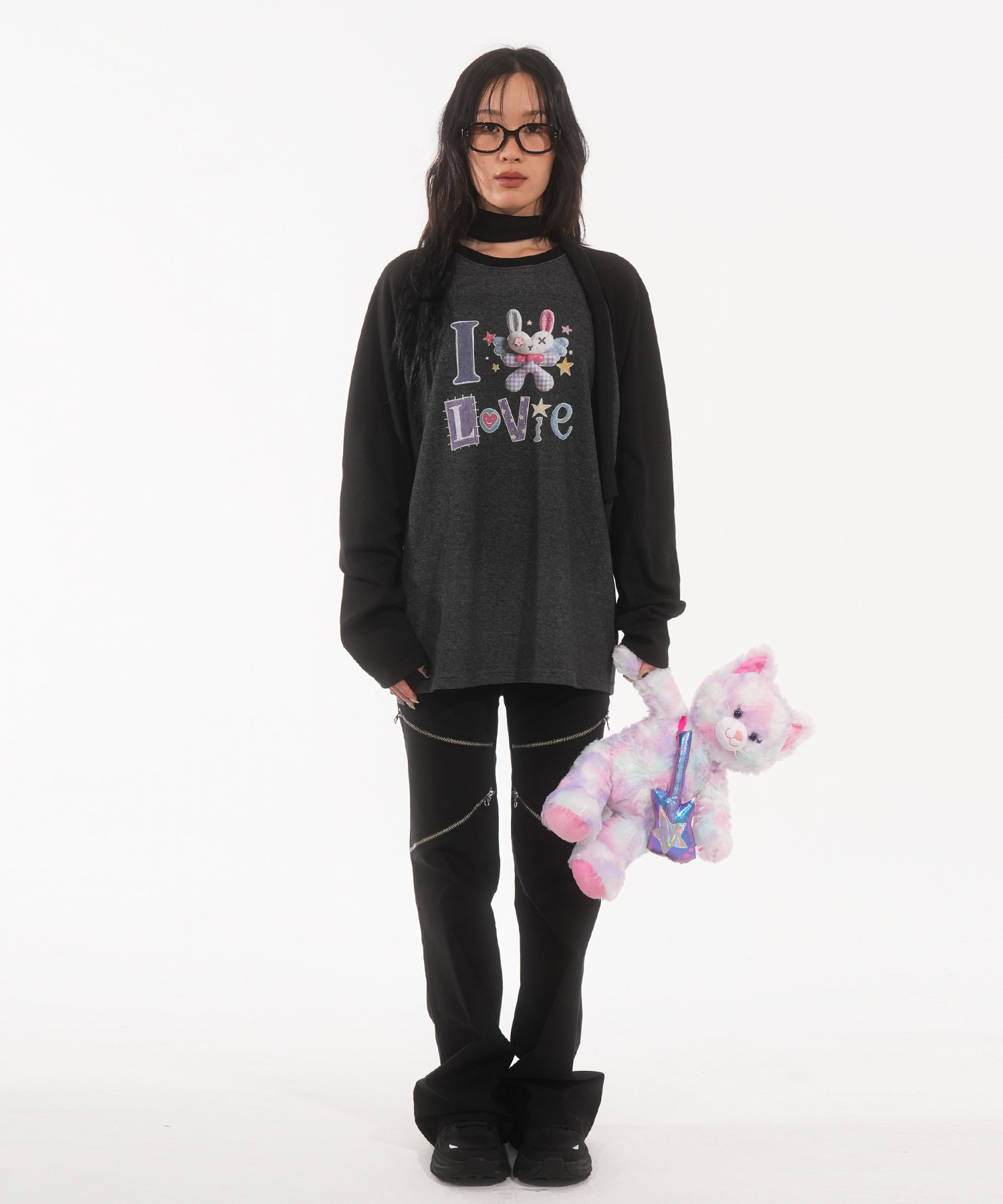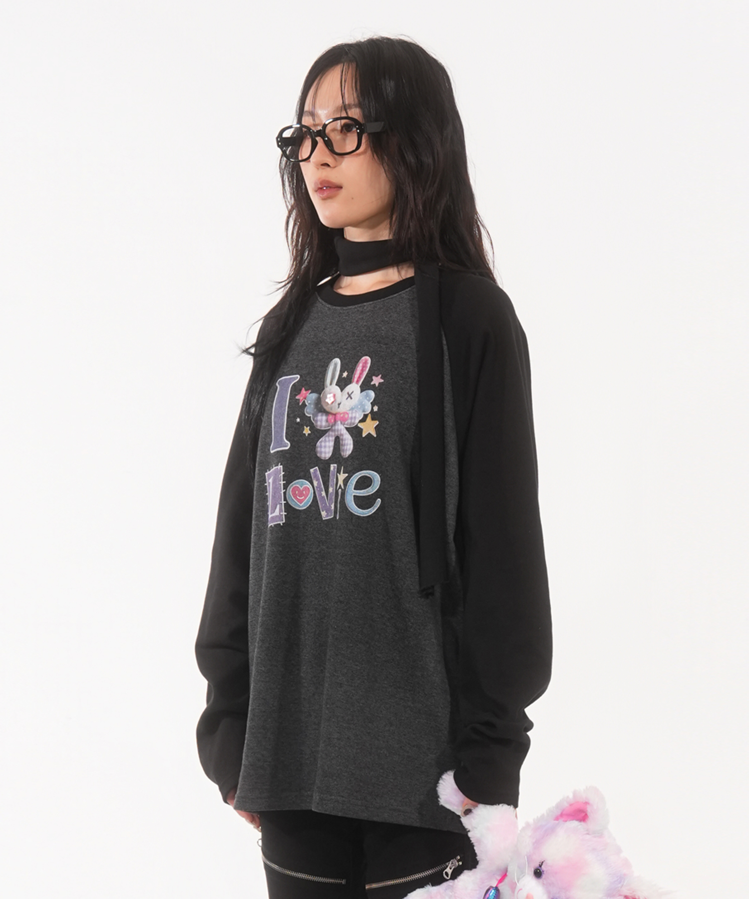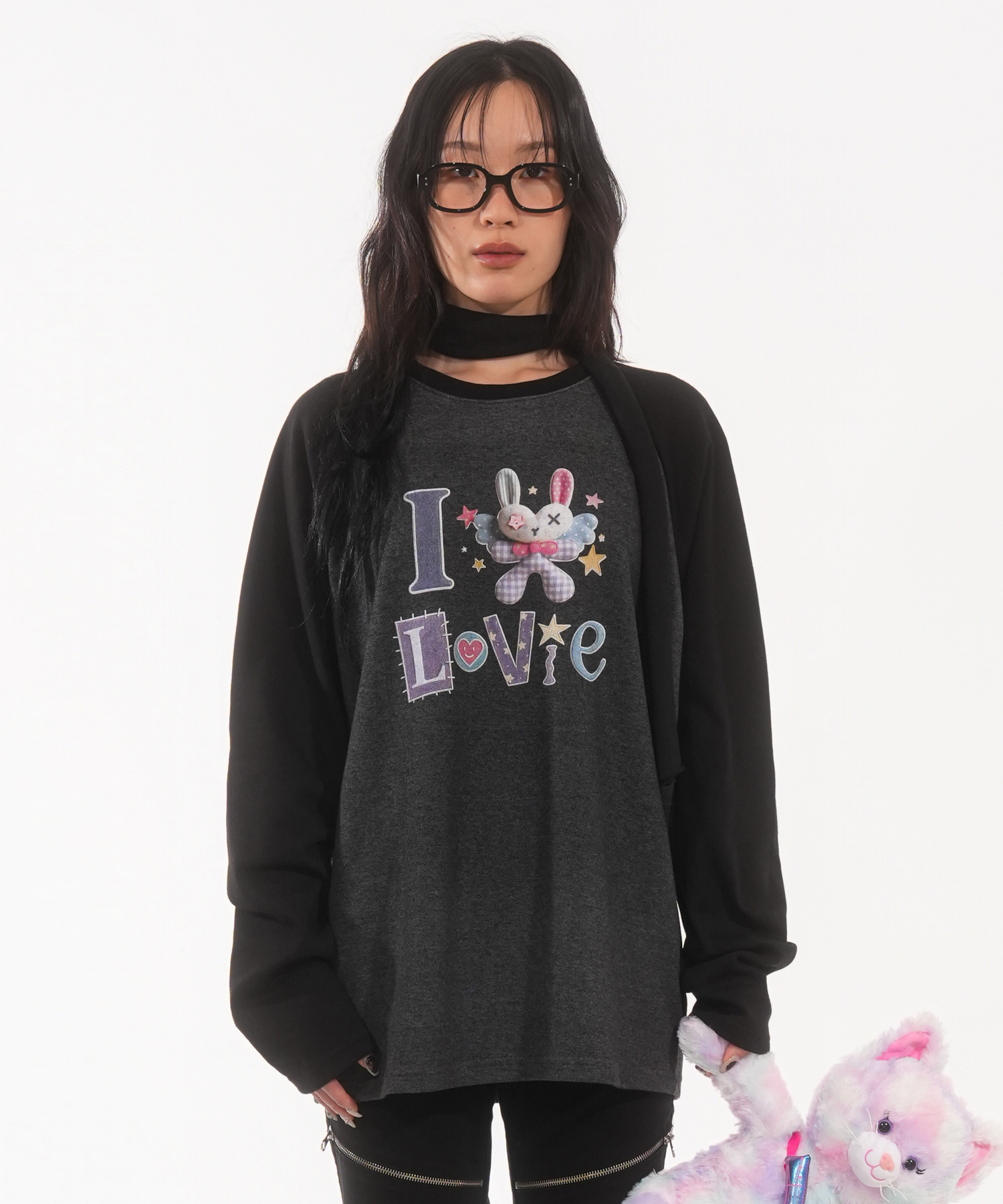 I LOVE LOVIE RAGRAN T (Charcoal/Black)