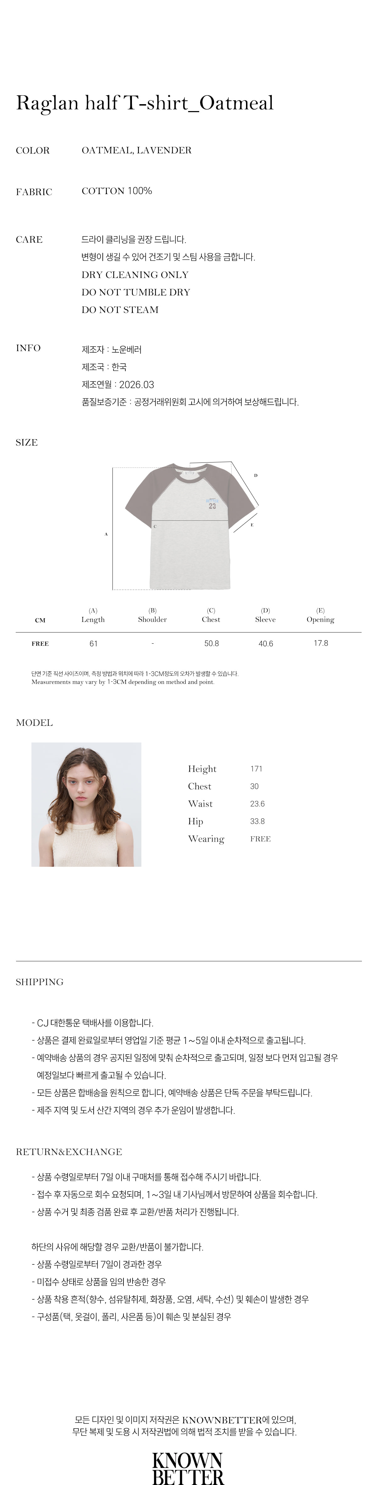 Raglan half T-shirt [KNSS07TS15]_Oatmeal