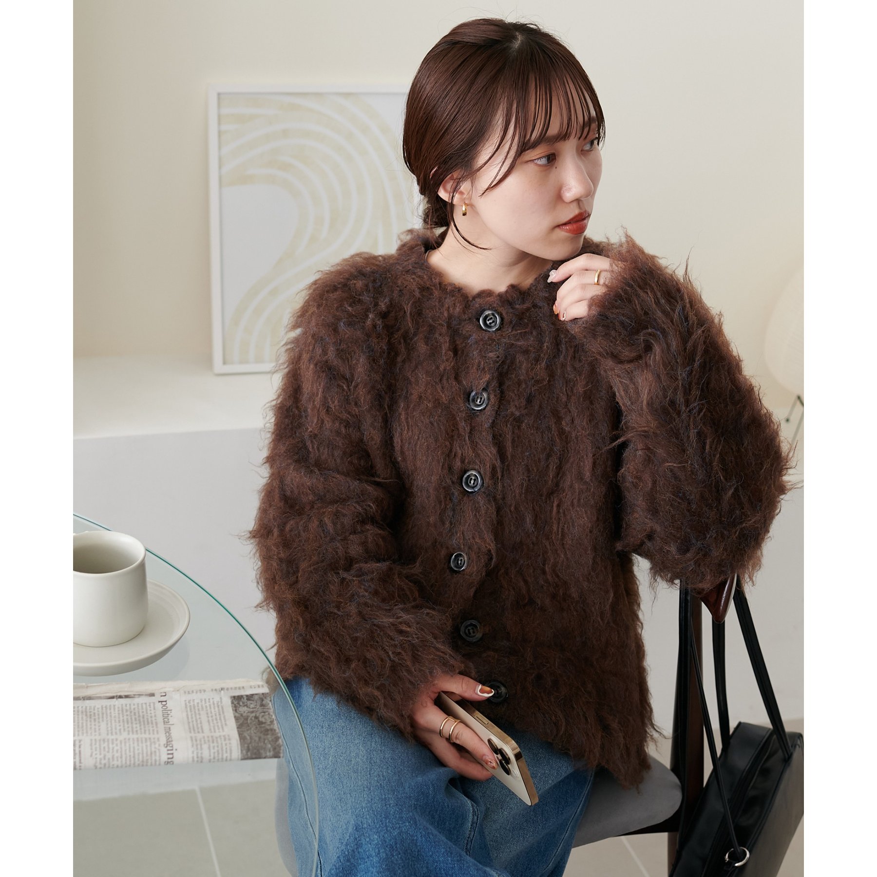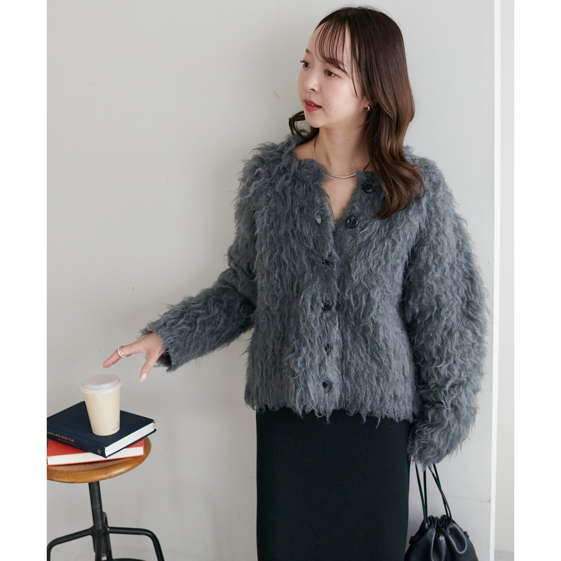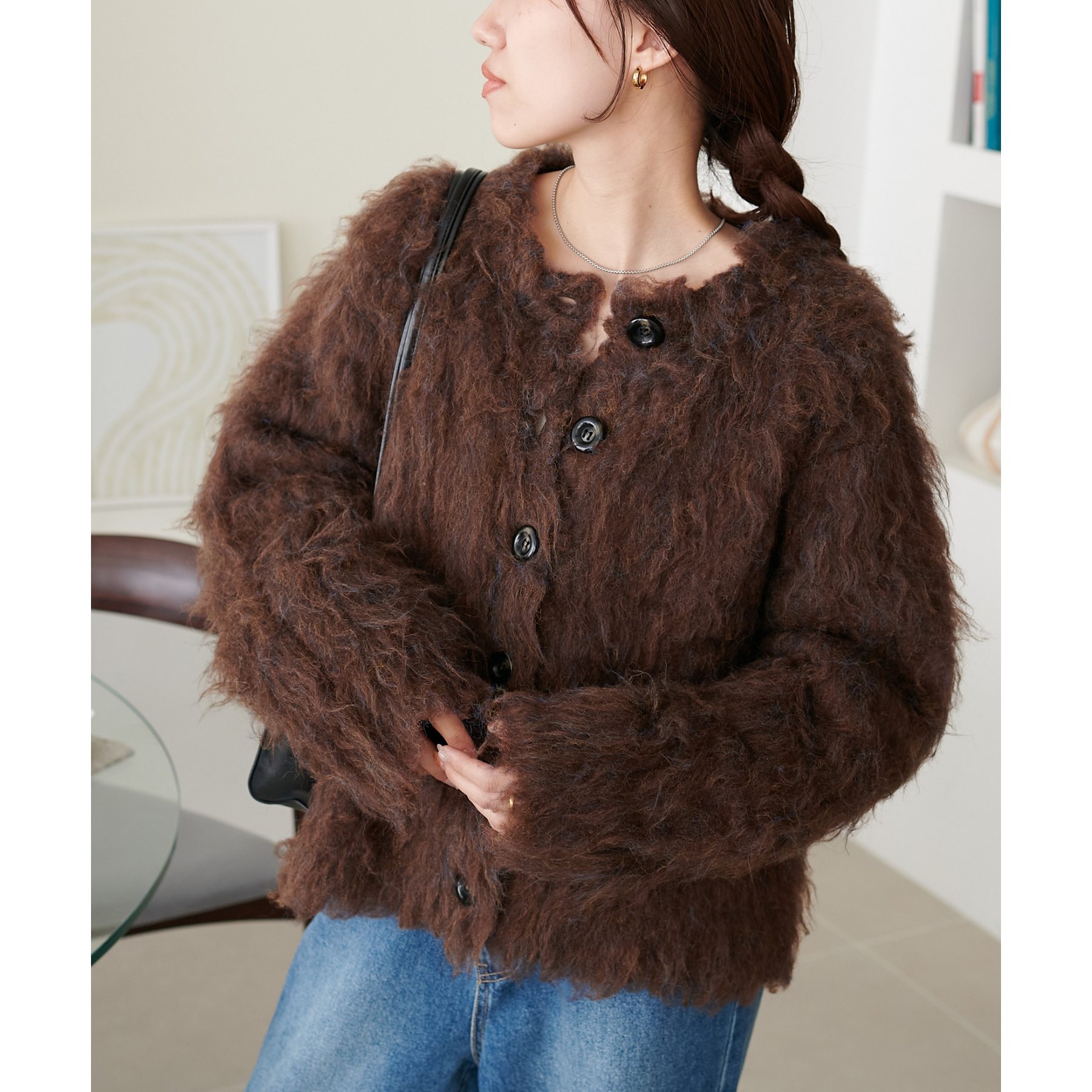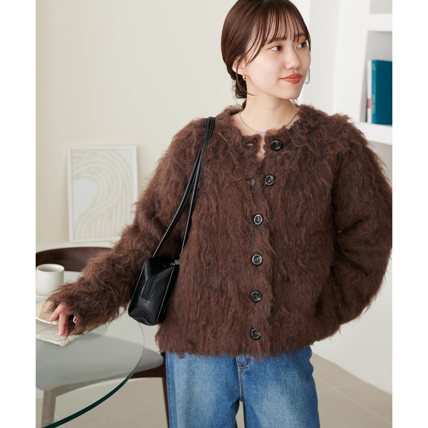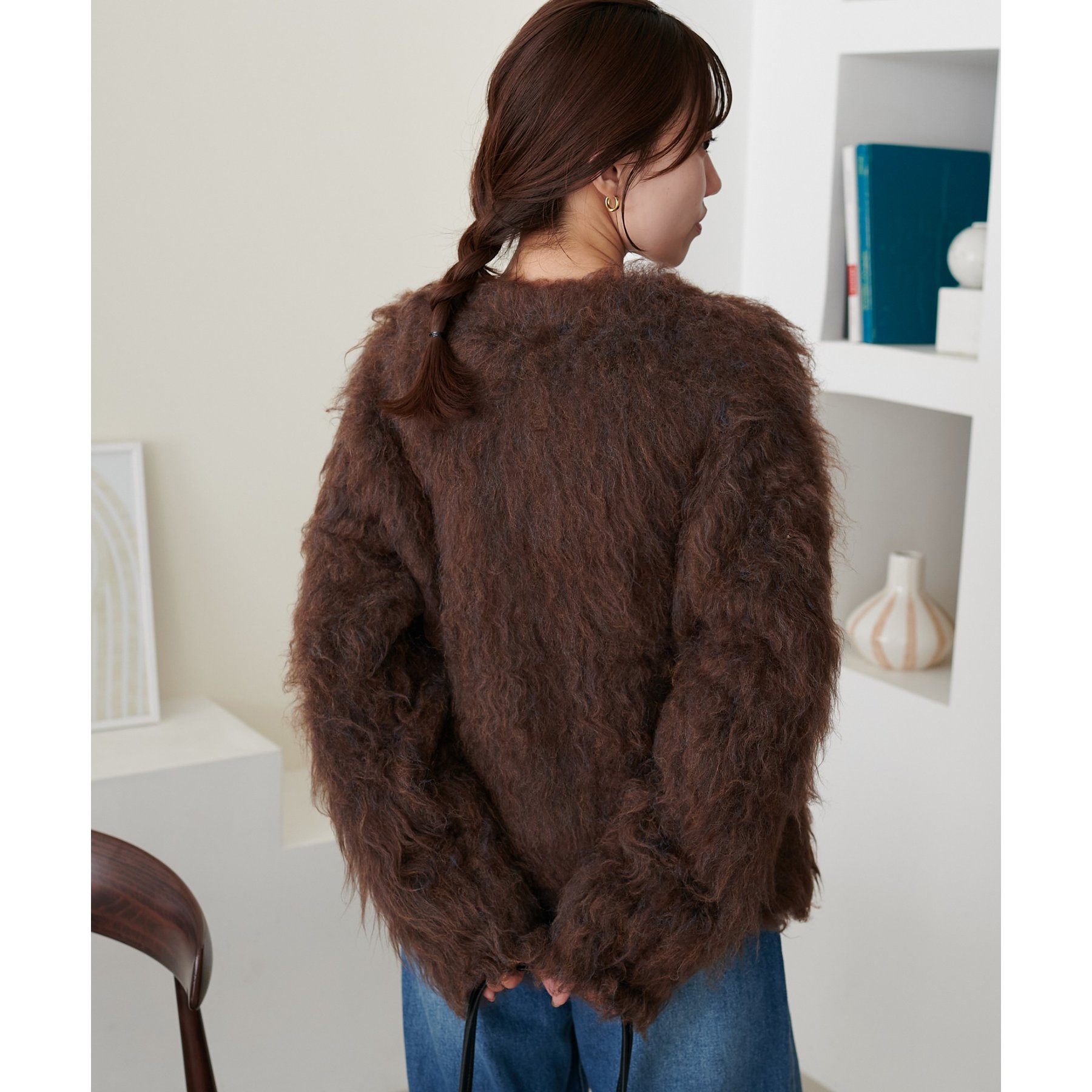 ふわっとした毛足が魅力のシャギー素材を贅沢に使用した存在感抜群のカーディガン