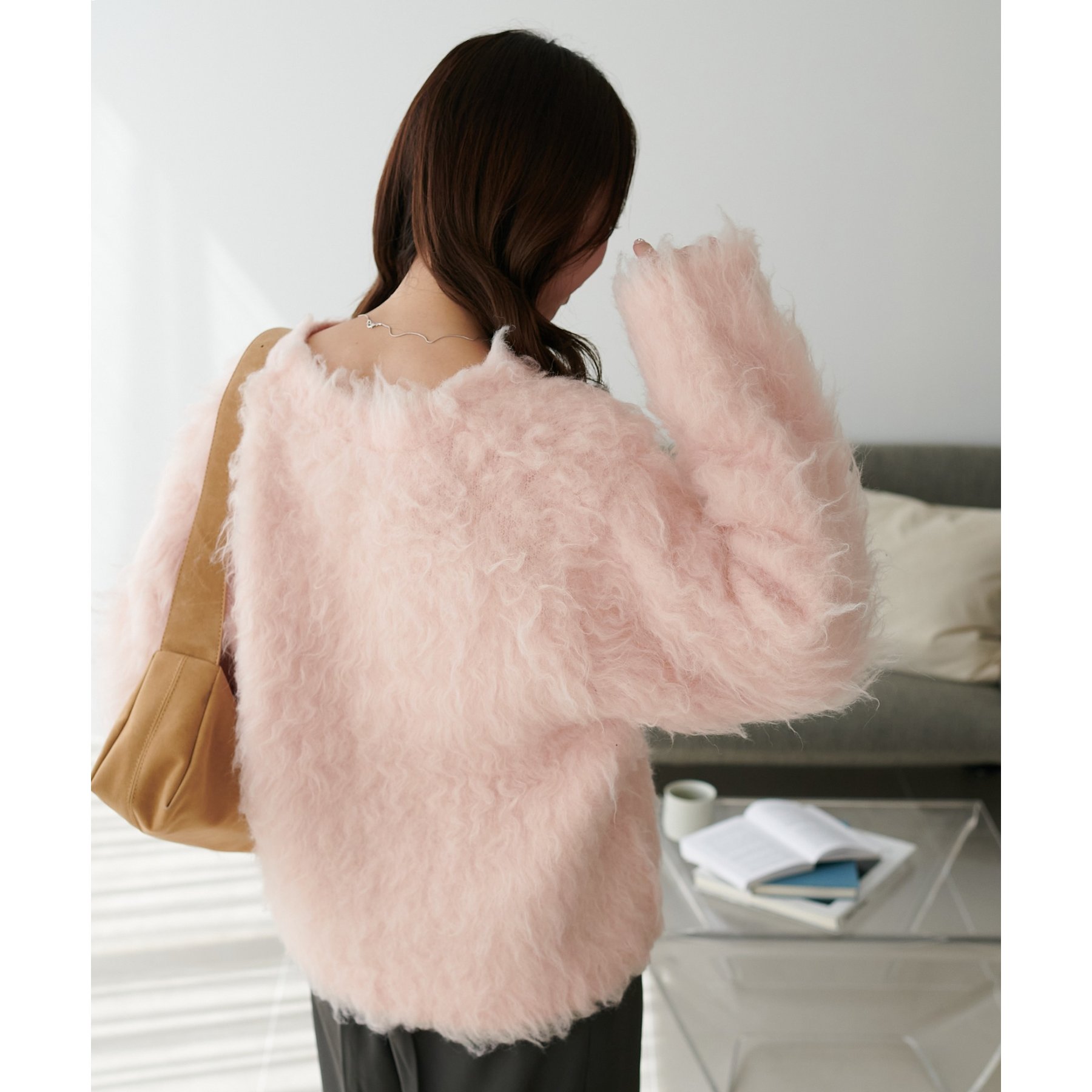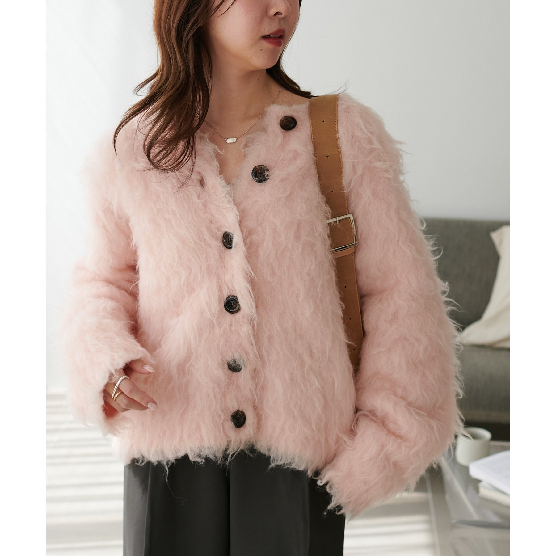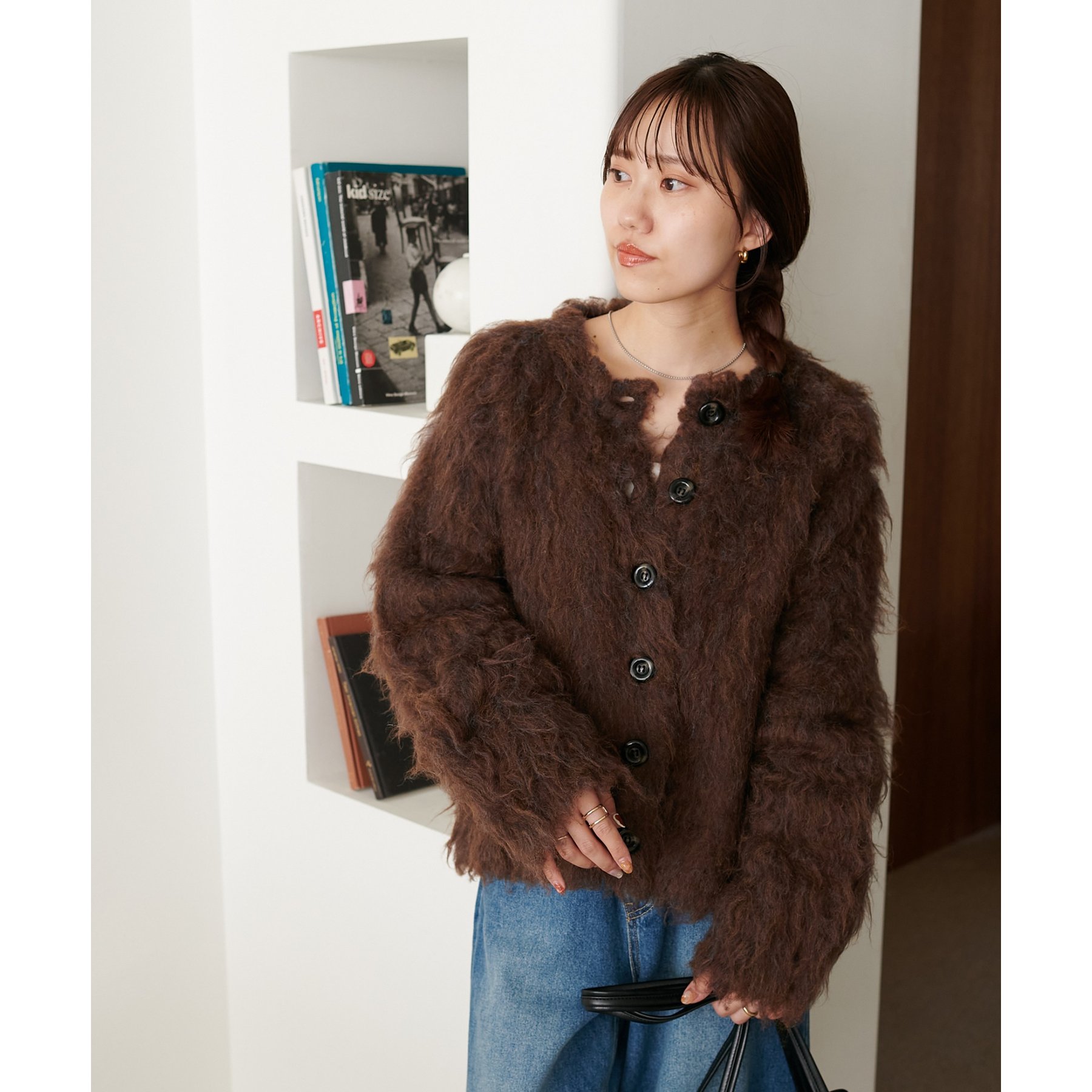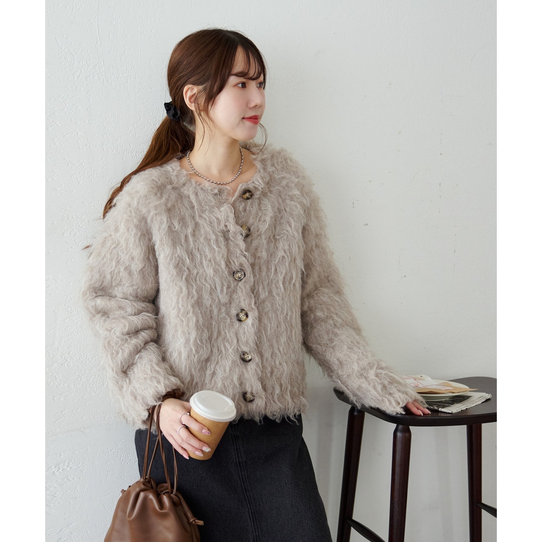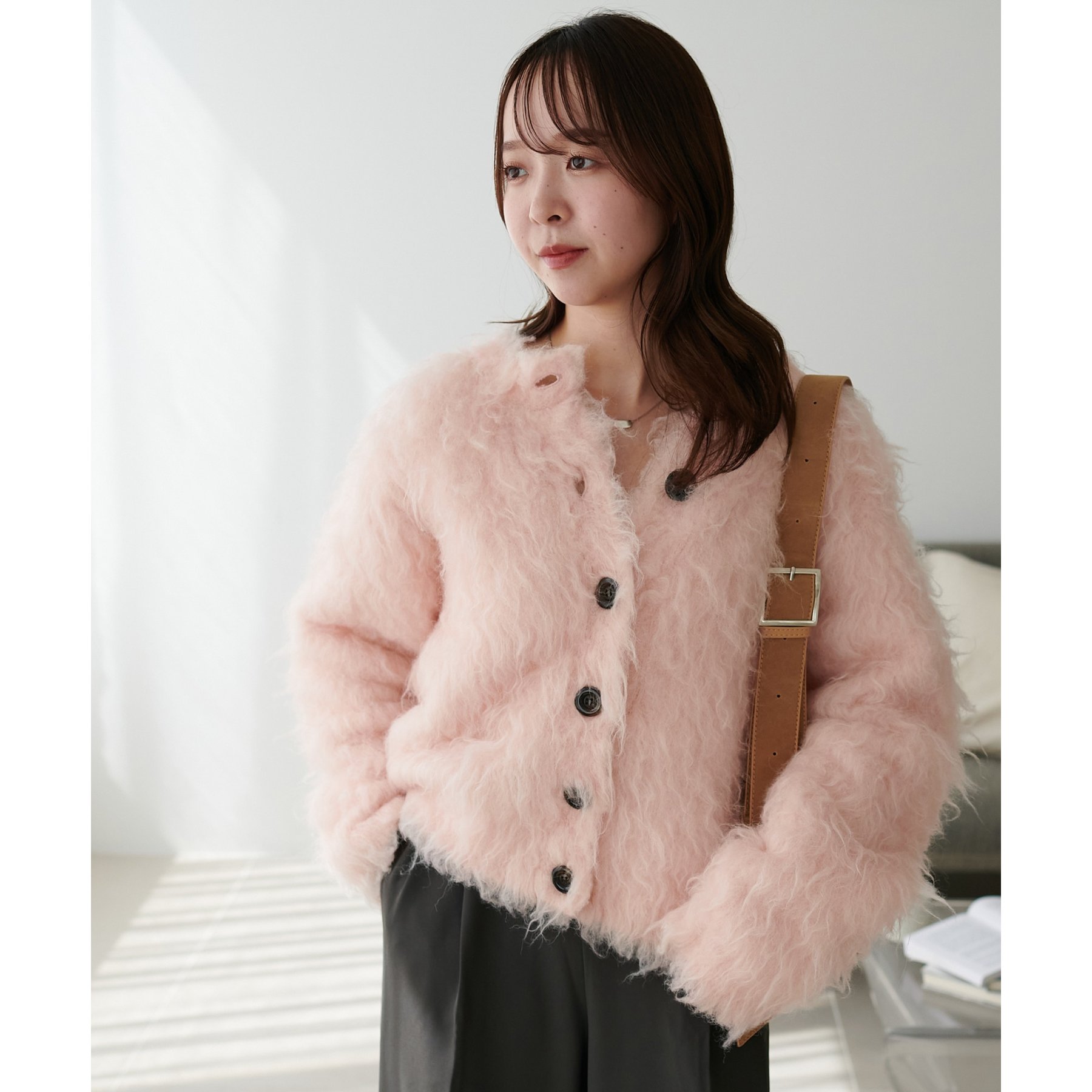 ふわっとした毛足が魅力のシャギー素材を贅沢に使用した存在感抜群のカーディガン
