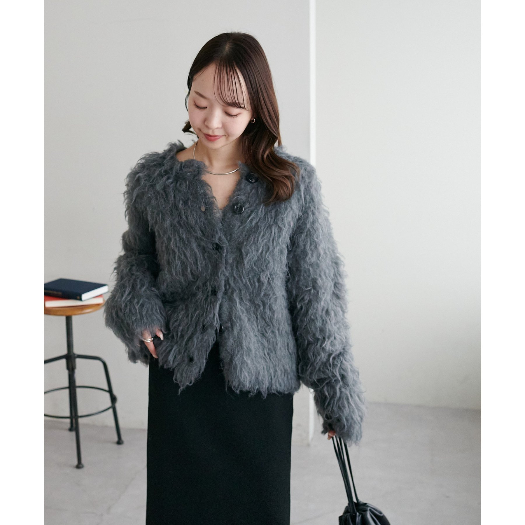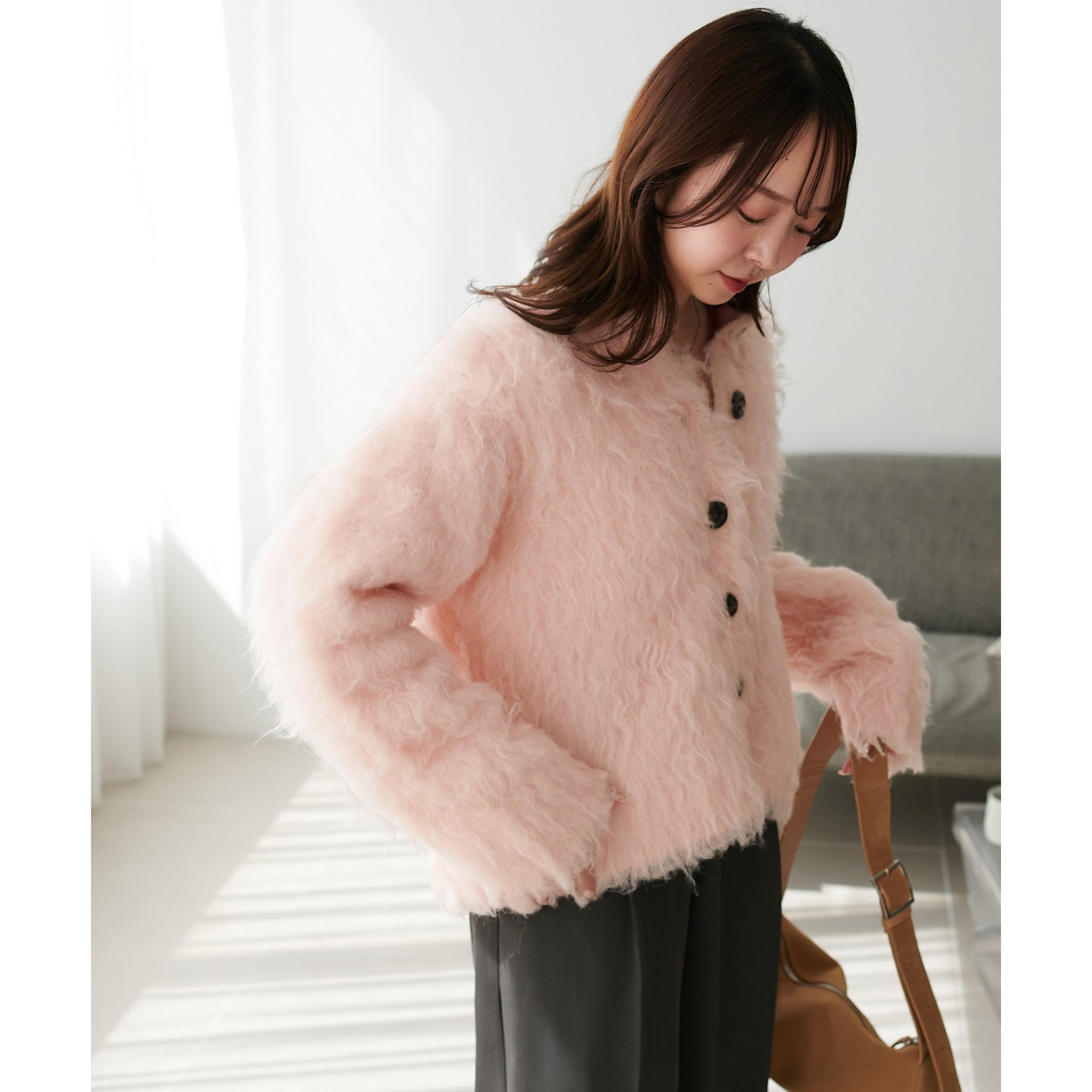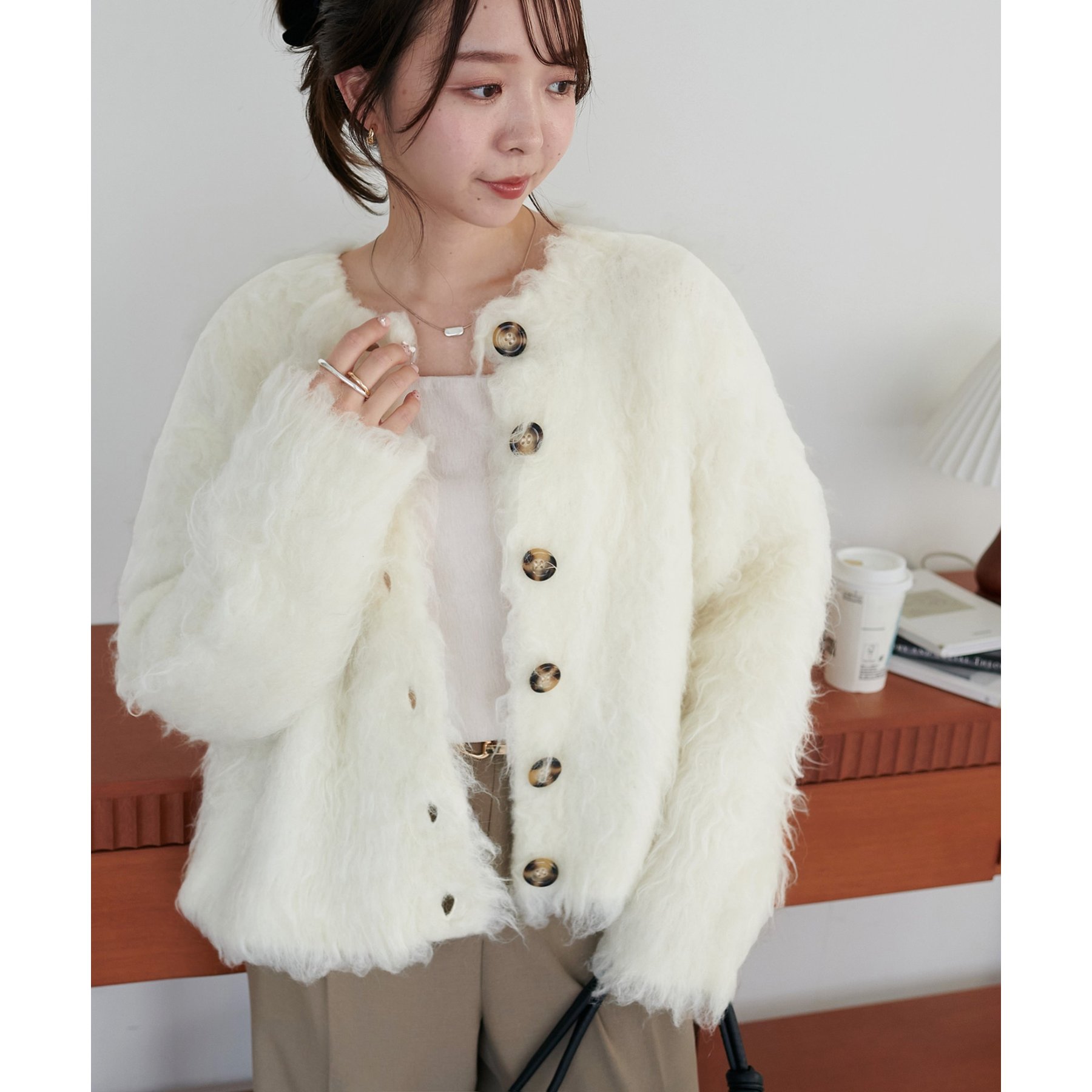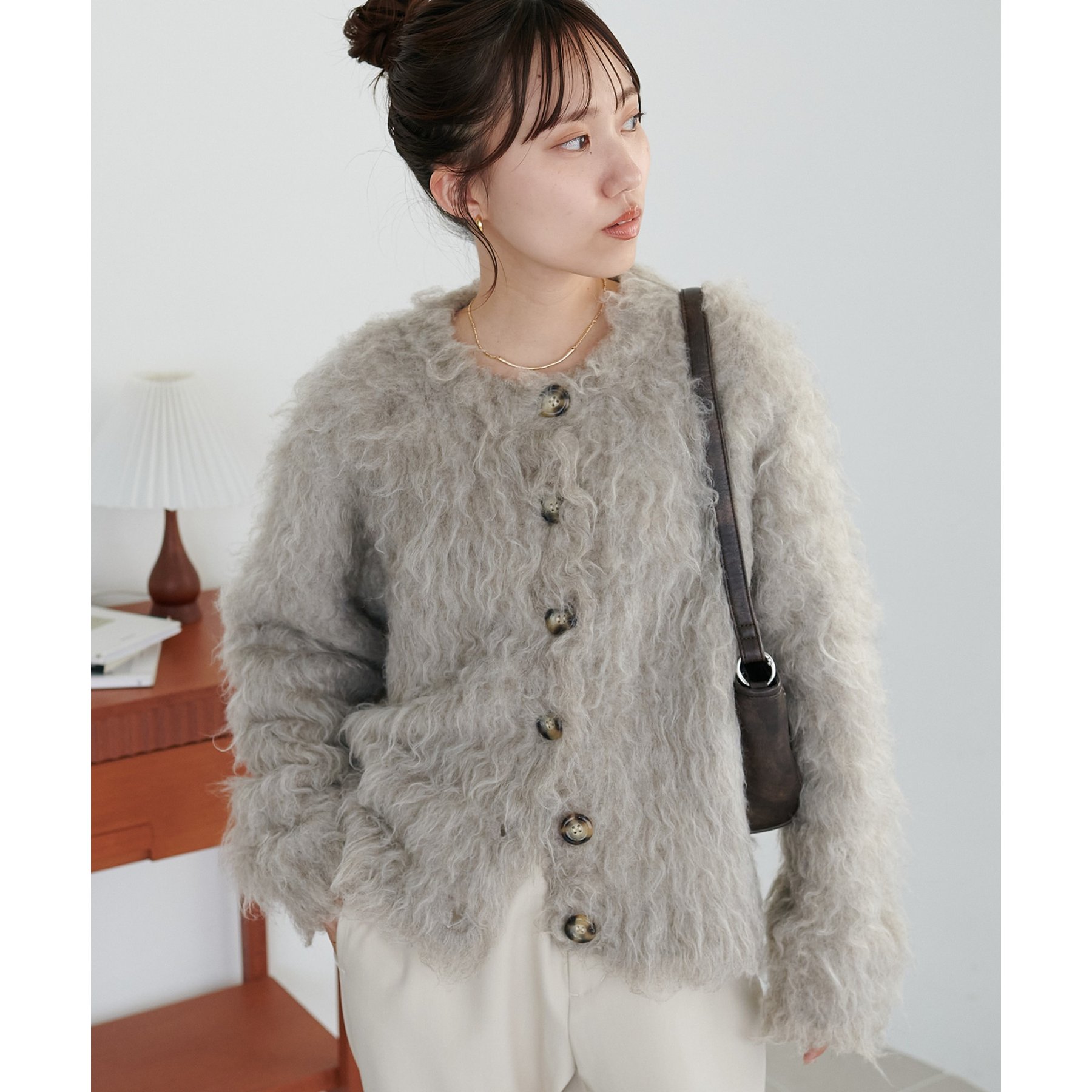 ふわっとした毛足が魅力のシャギー素材を贅沢に使用した存在感抜群のカーディガン