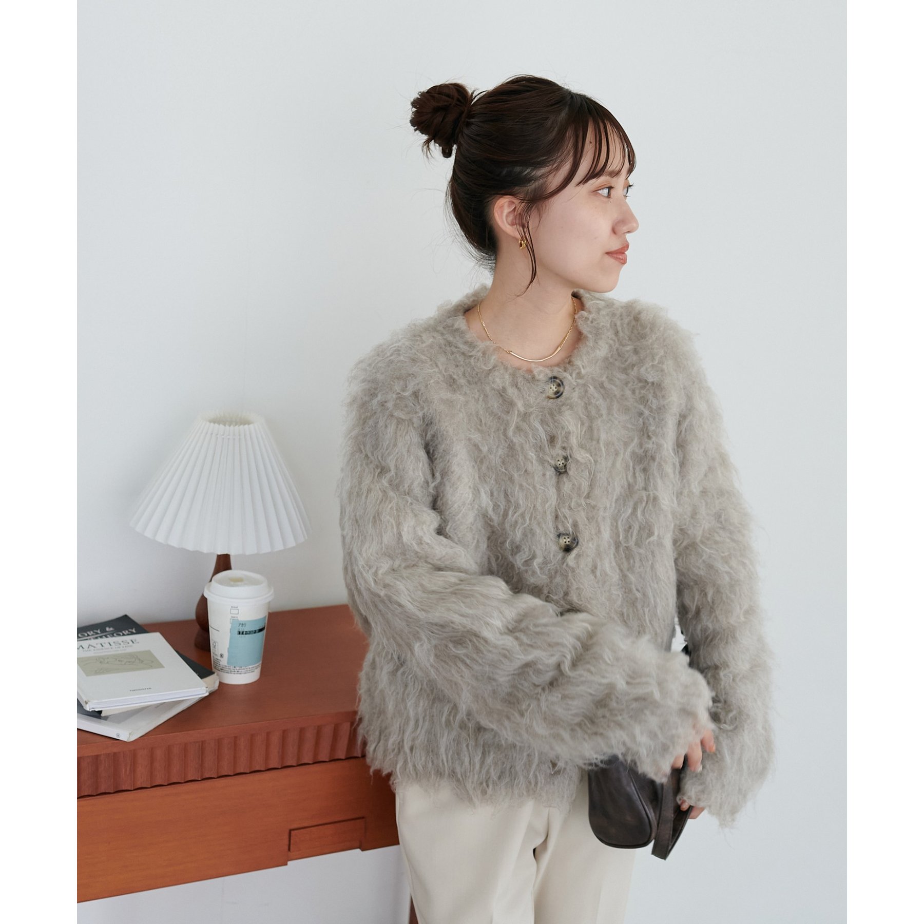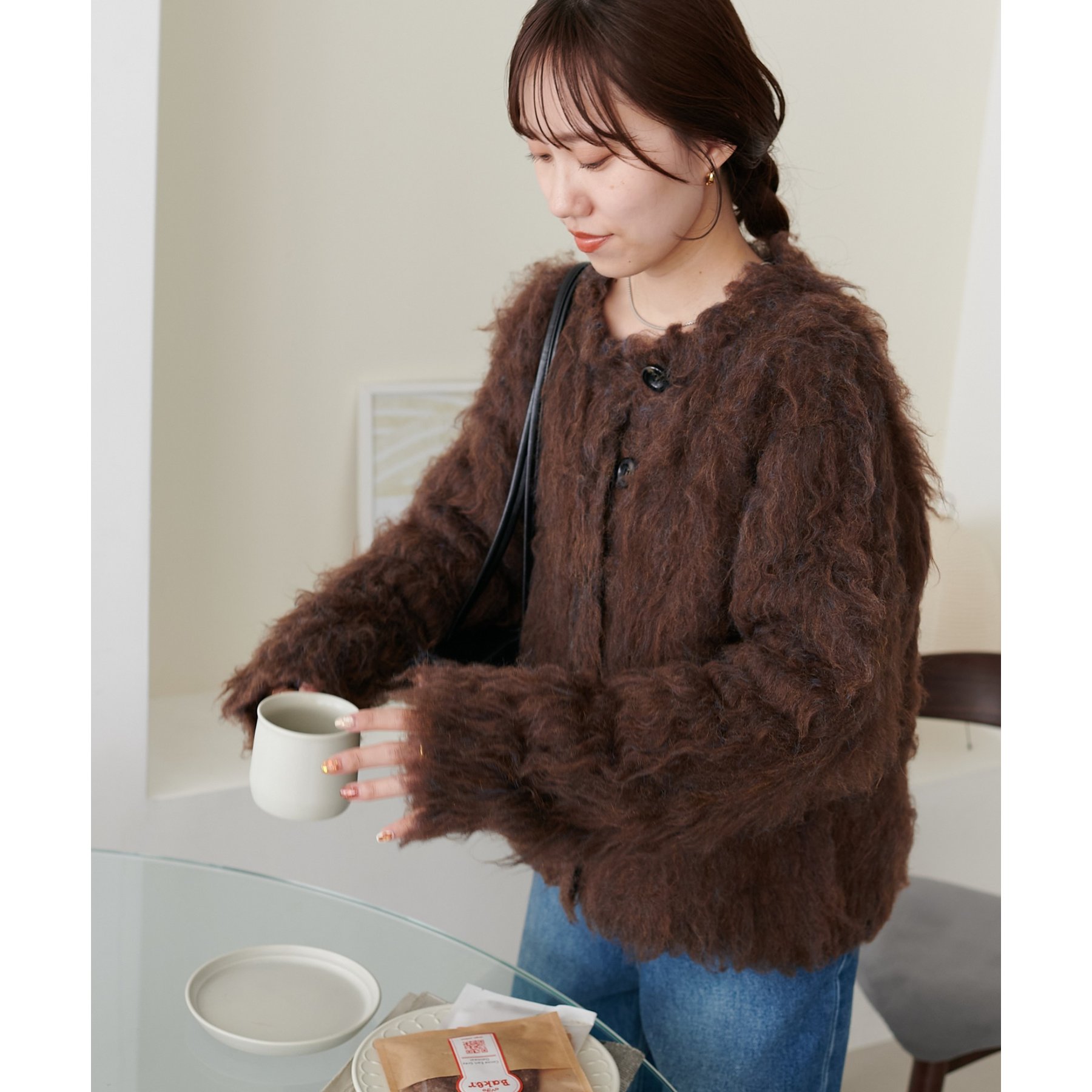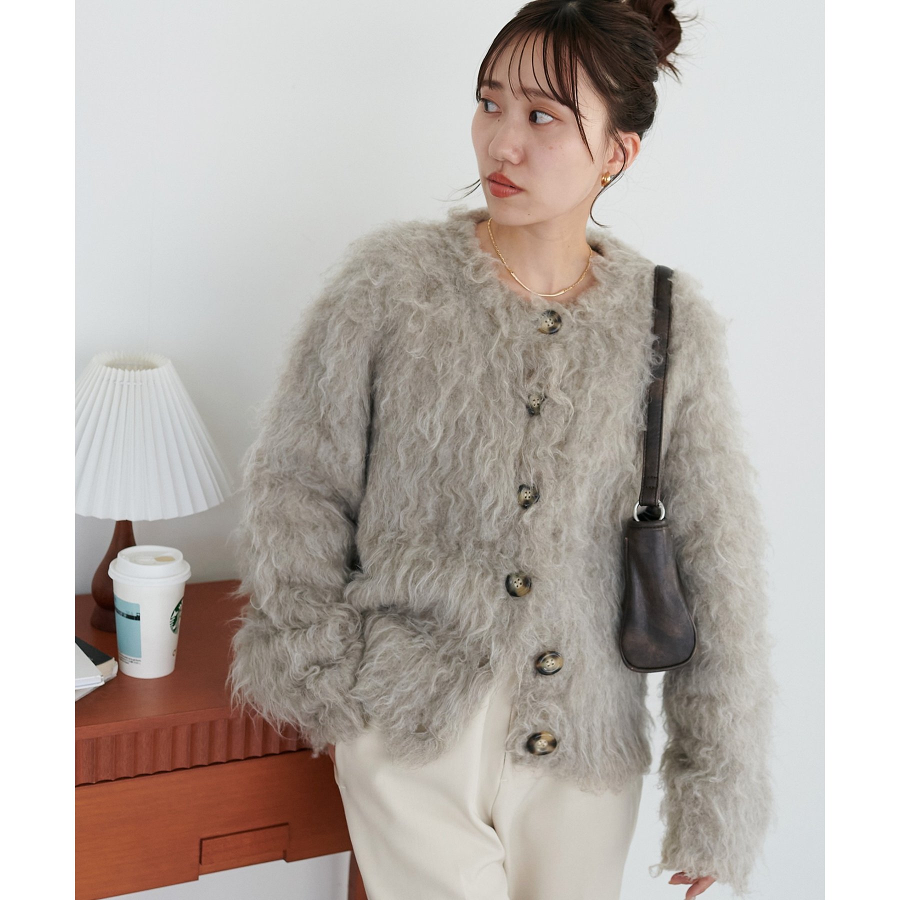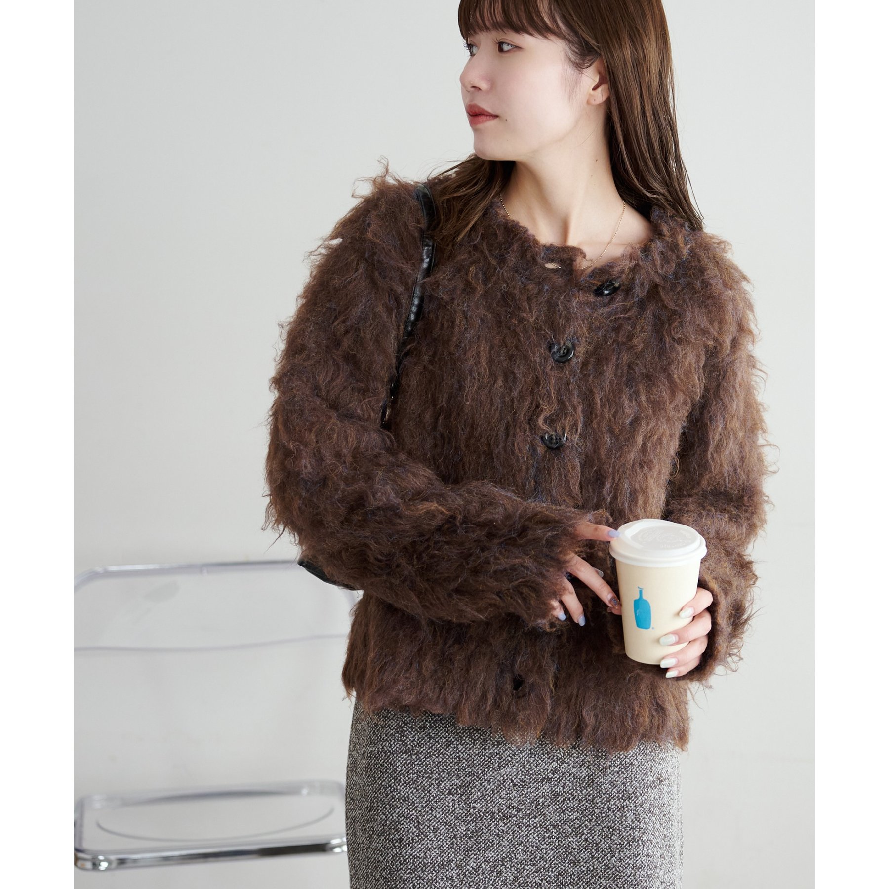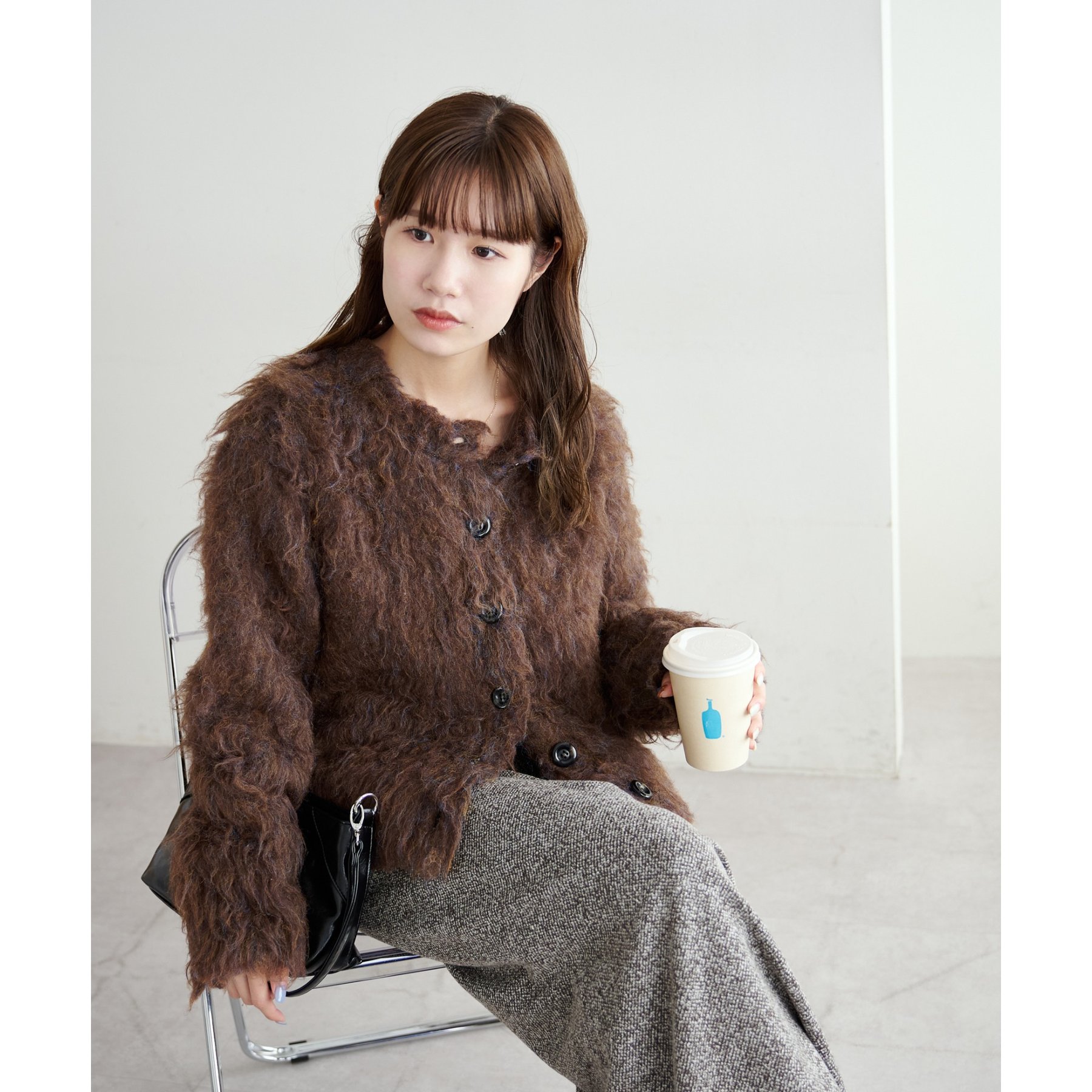 ふわっとした毛足が魅力のシャギー素材を贅沢に使用した存在感抜群のカーディガン