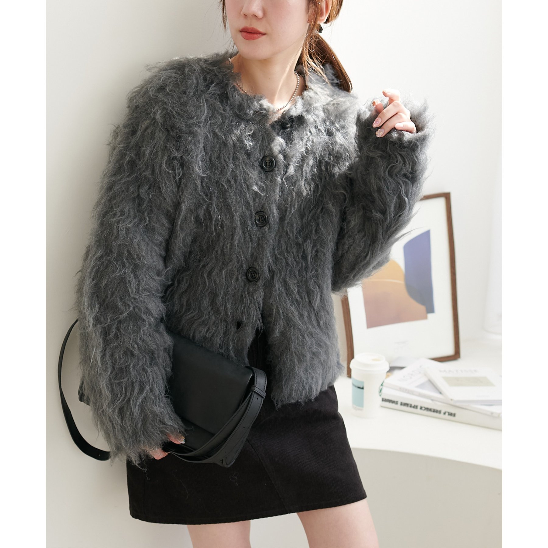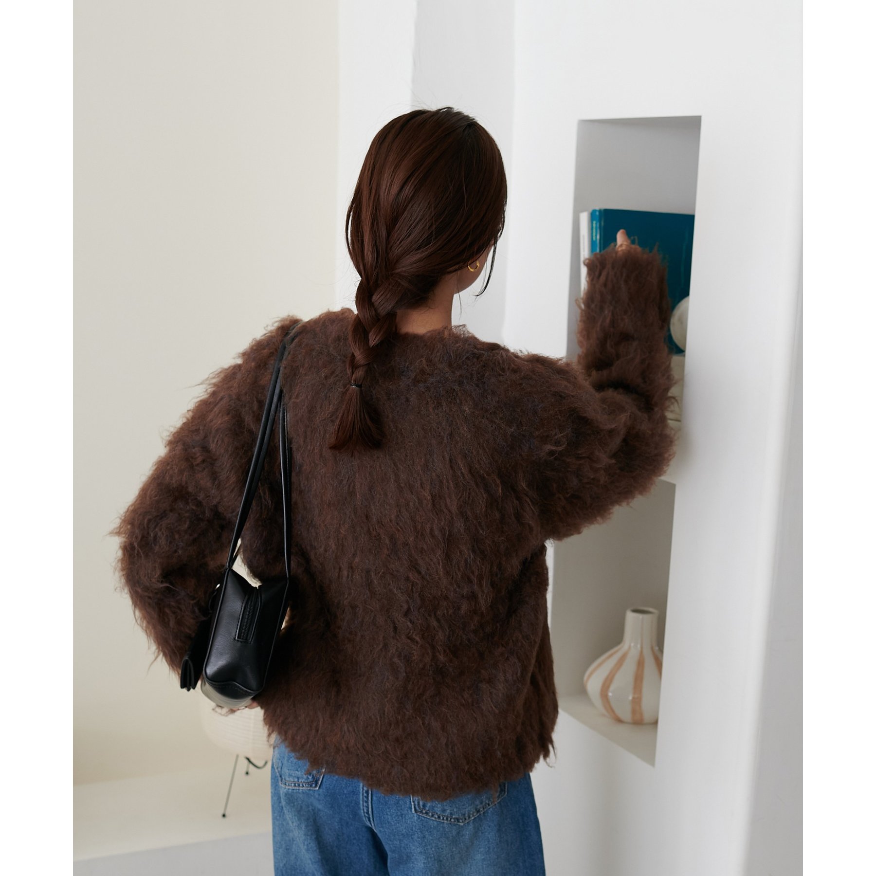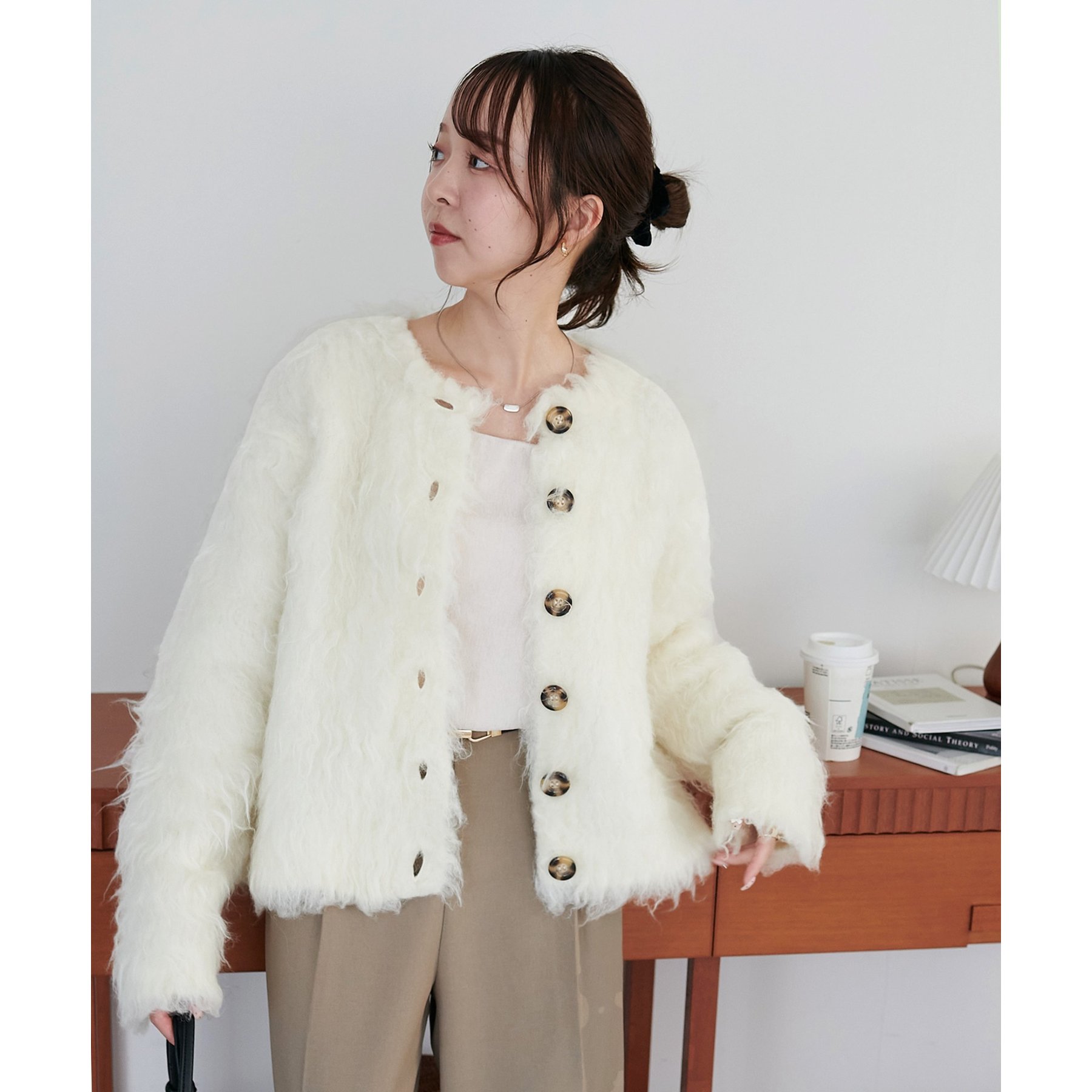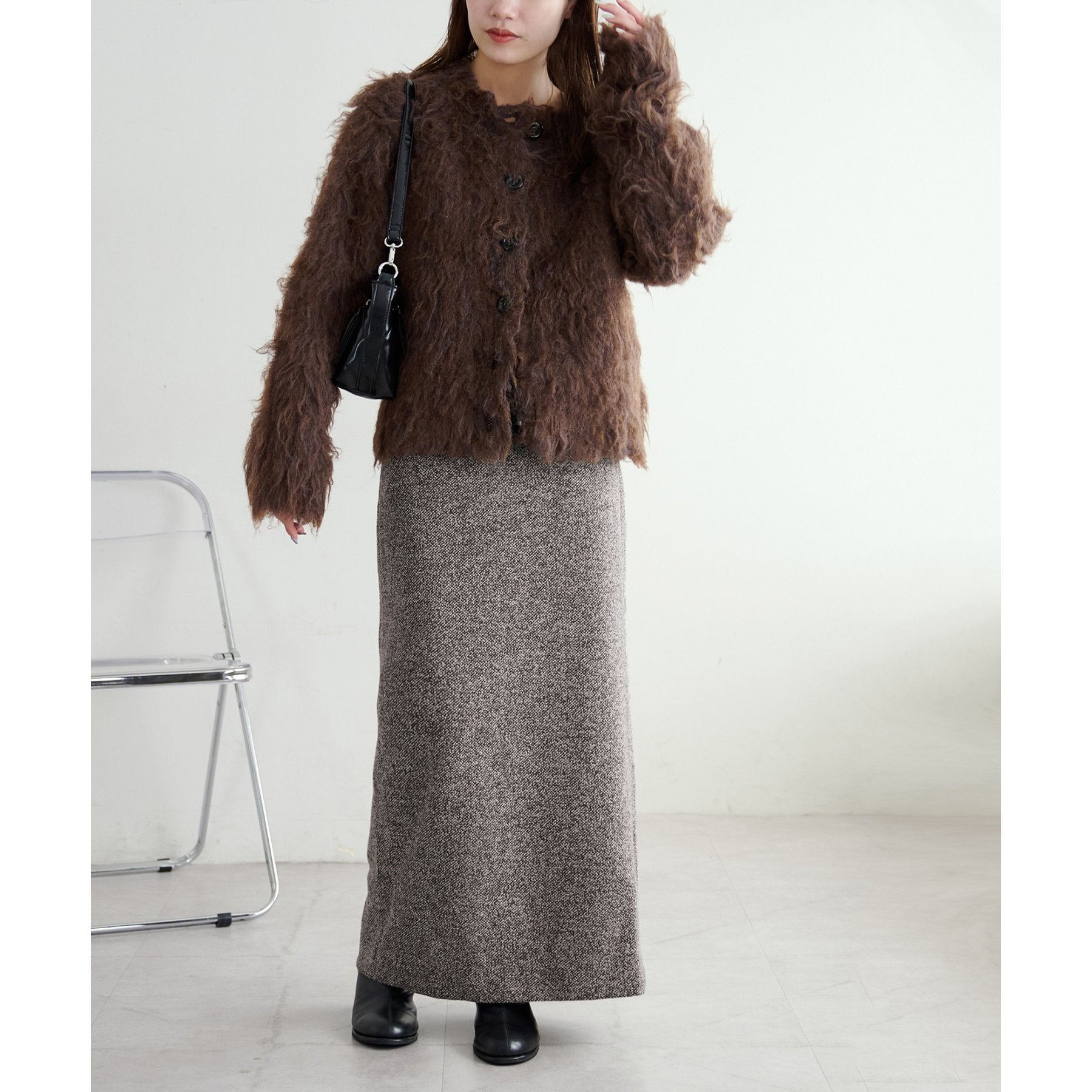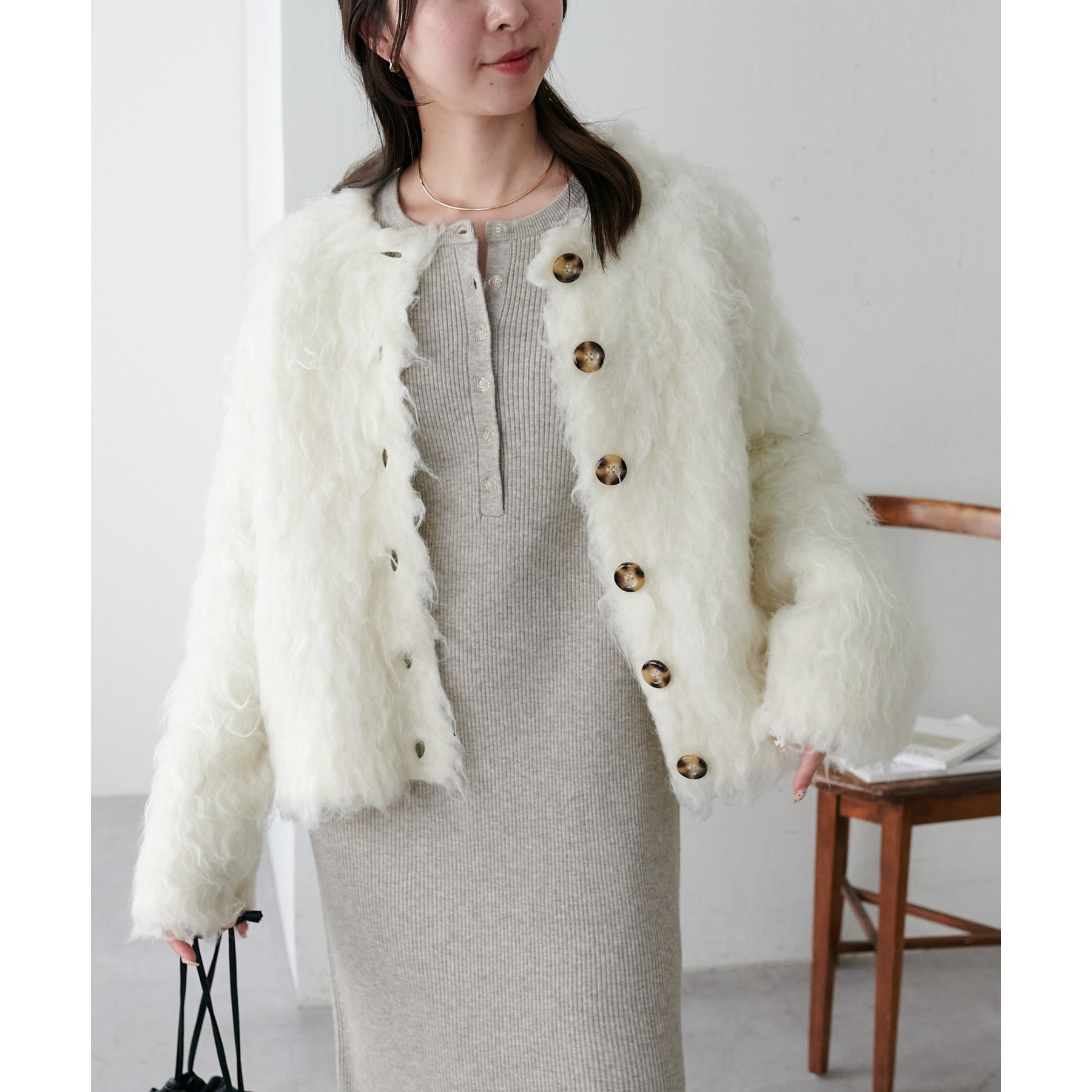 ふわっとした毛足が魅力のシャギー素材を贅沢に使用した存在感抜群のカーディガン