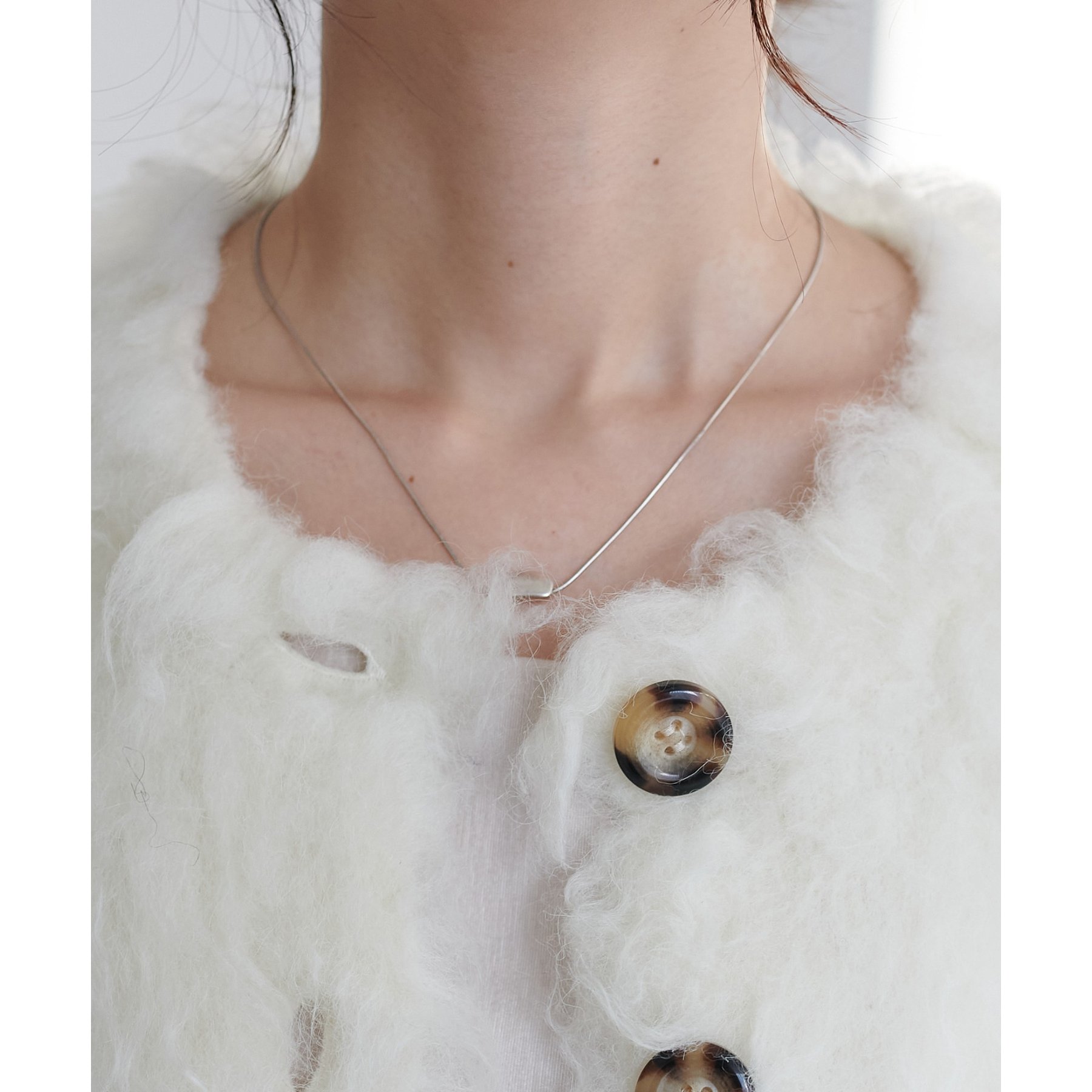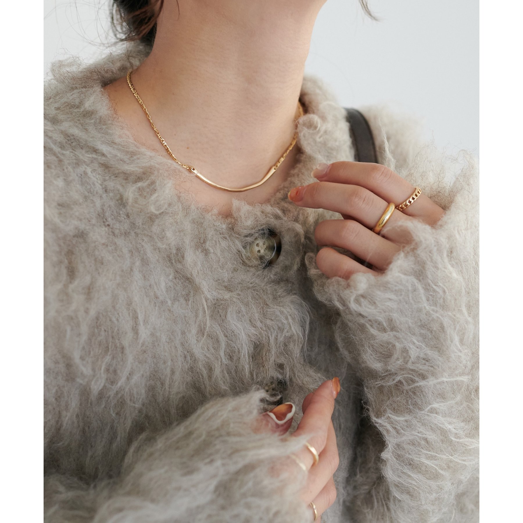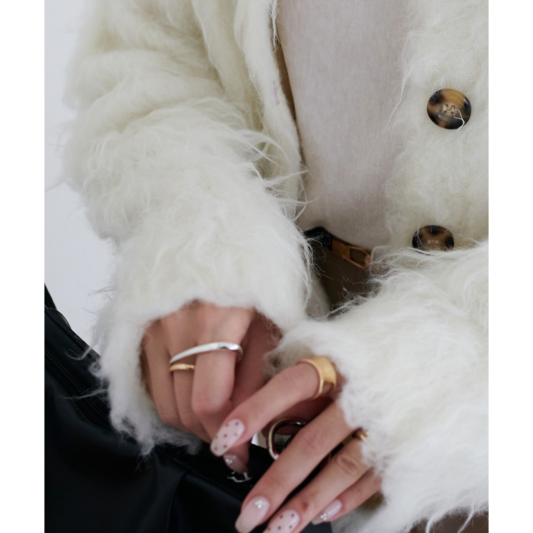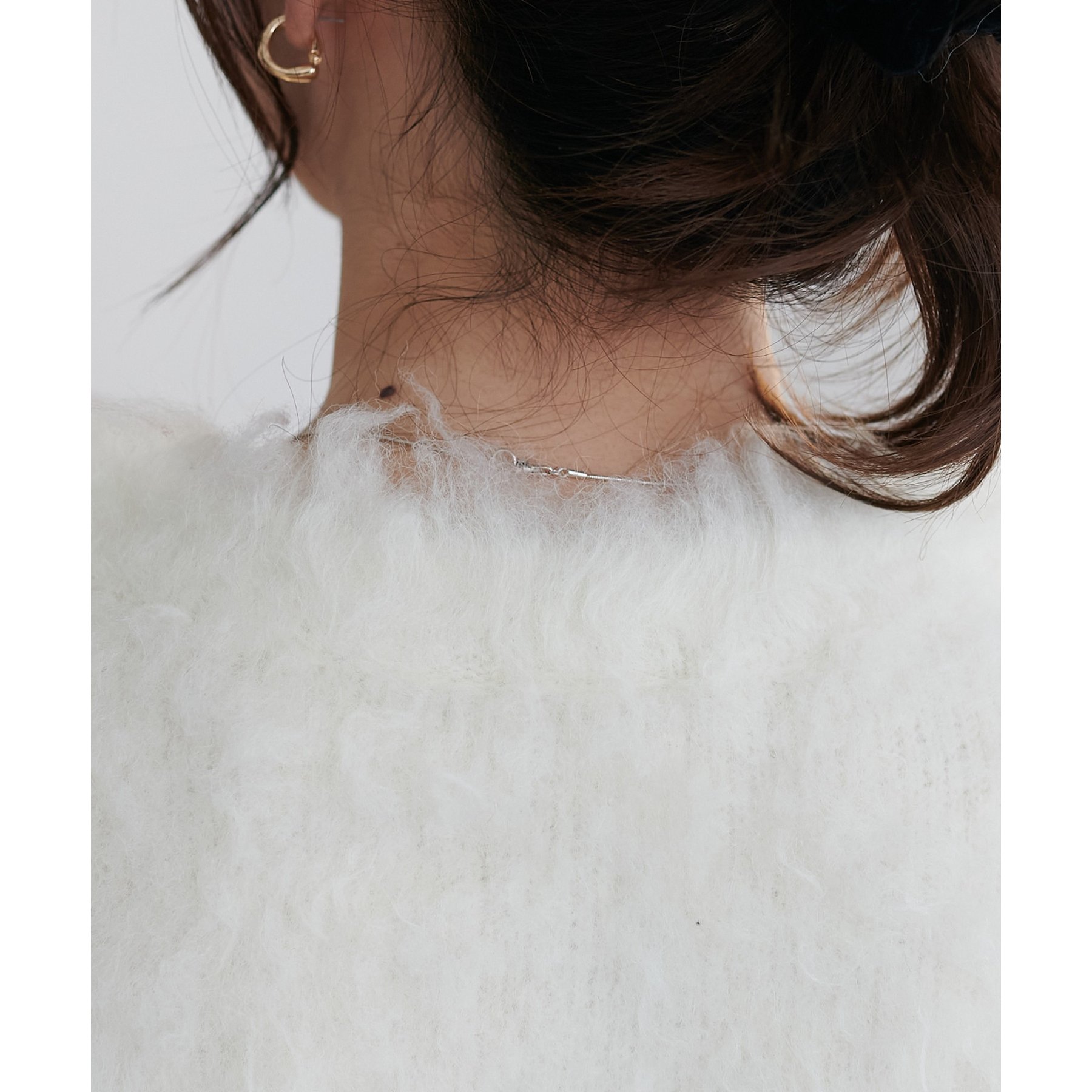 柔らかく長い毛足が特徴のシャギーニットを使用